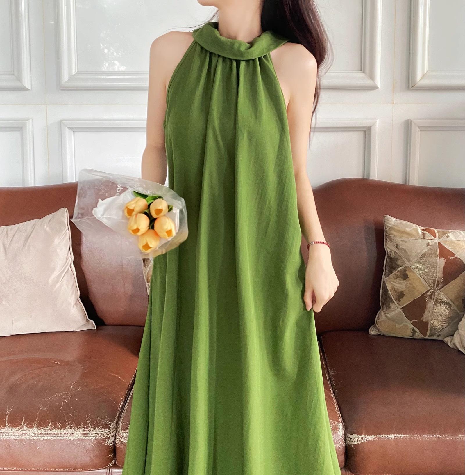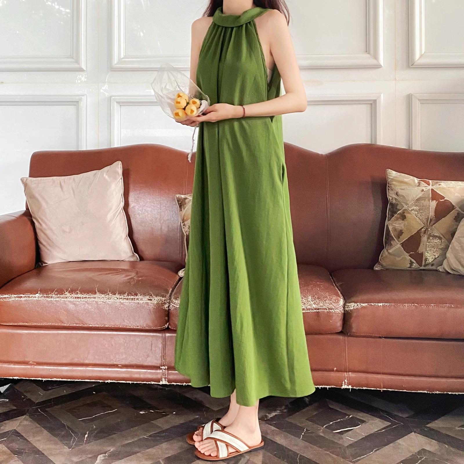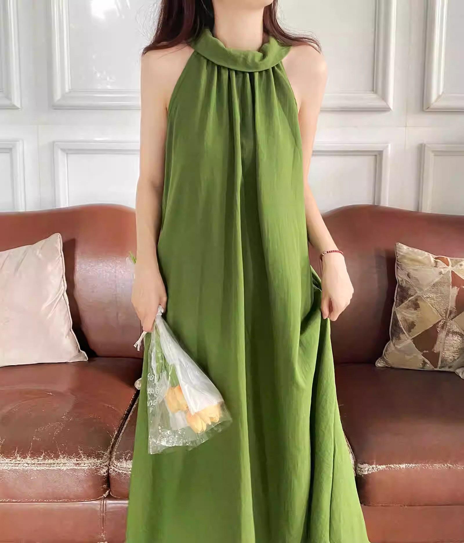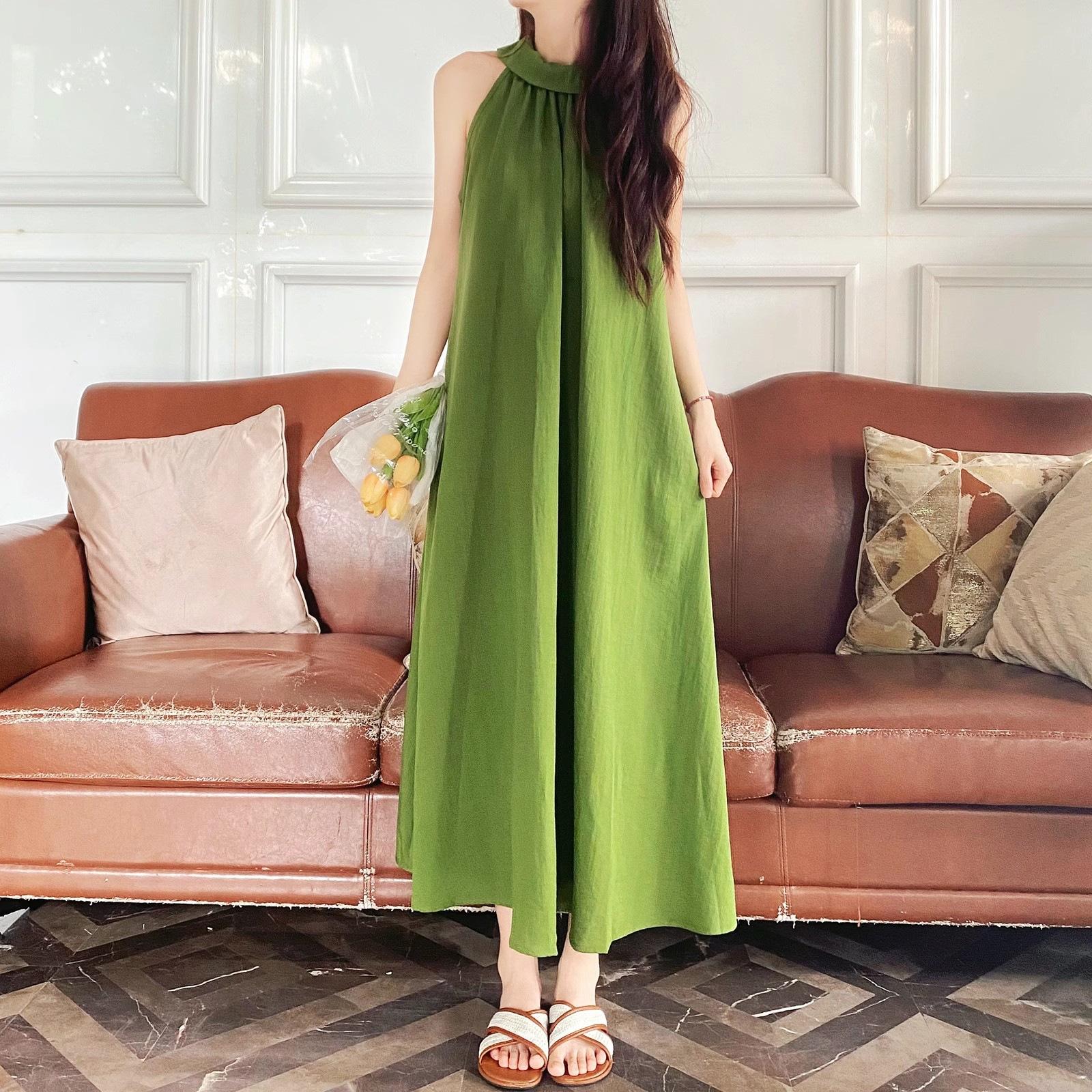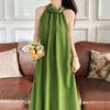 Vestido Elegante Verde sin Mangas con Cuello Estilo Francés para Mujer Verano 2024 Nueva Moda Elegante Suelto Falda Trendy