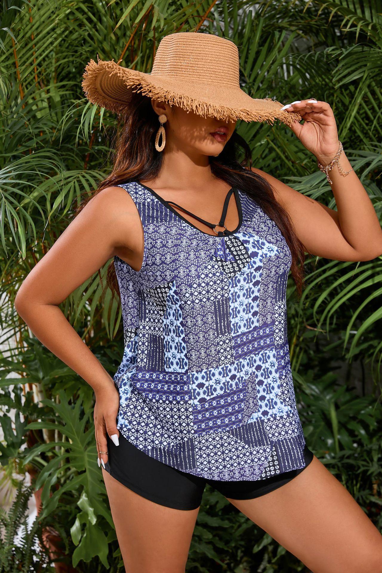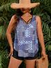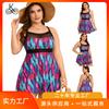 Traje de Baño Europeo y Americano Transfronterizo Nuevo Dividido Talla Grande Estampado Suelto Protección Solar Traje de Baño para Mujer