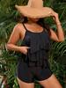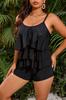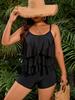 Traje de Baño Nuevo 2025 Amazon Talla Grande para Mujer Volantes Doble Hombro Cubre Vientre Look Adelgazante Traje de Baño Bóxer Dividido Europeo y Americano
