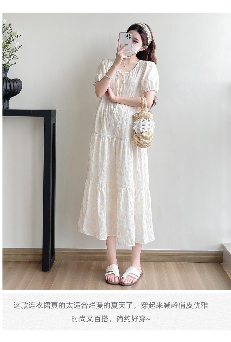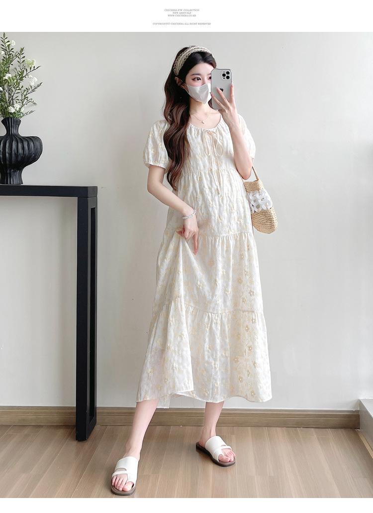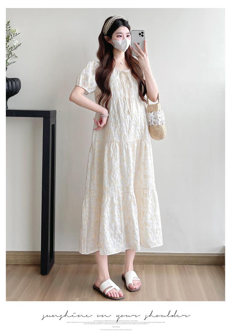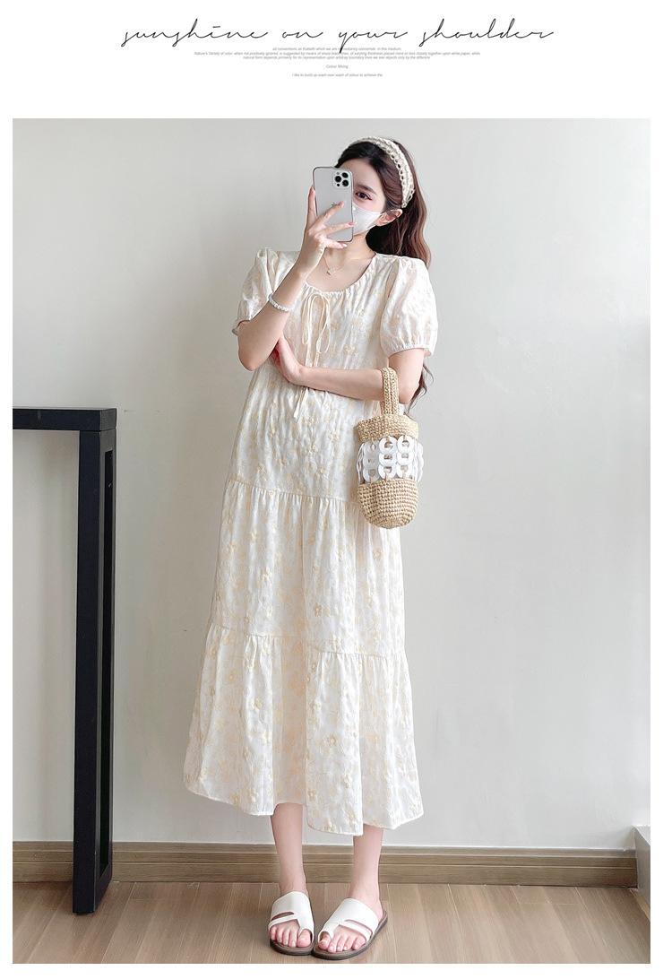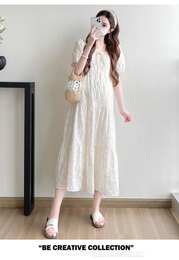 Ropa de Maternidad 2025 Verano Nuevo Estilo Coreano Dulce Encaje Bordado Largo Medio Suelto Talla Grande Vestido de Maternidad
