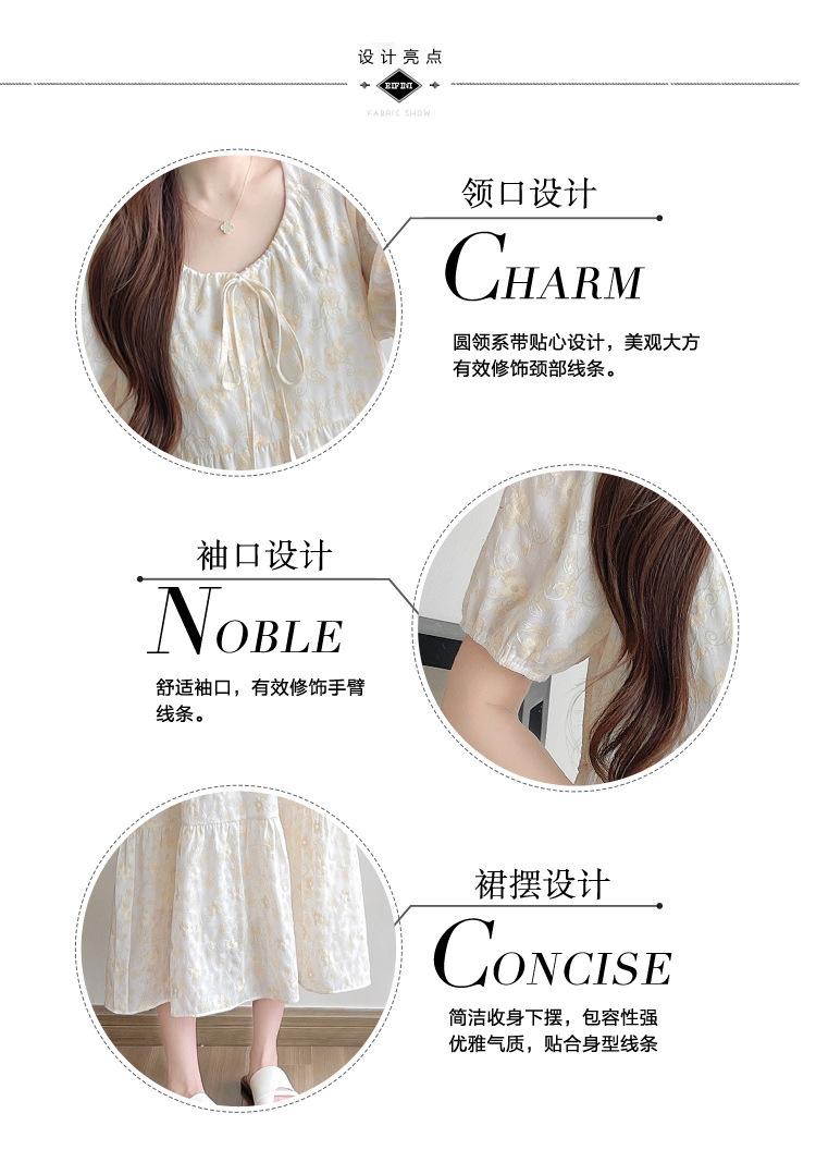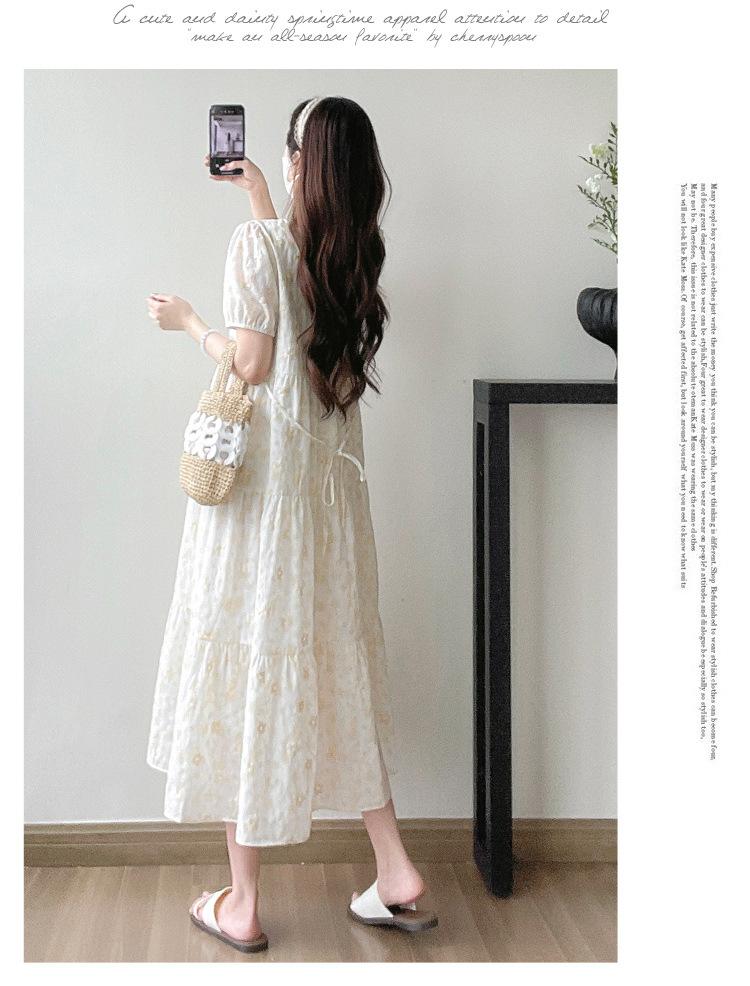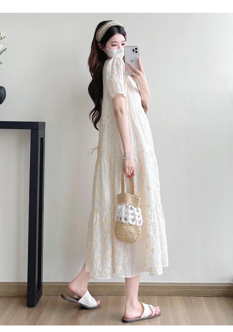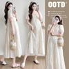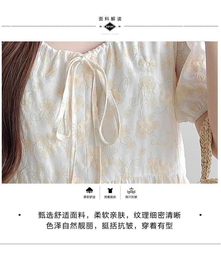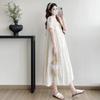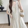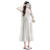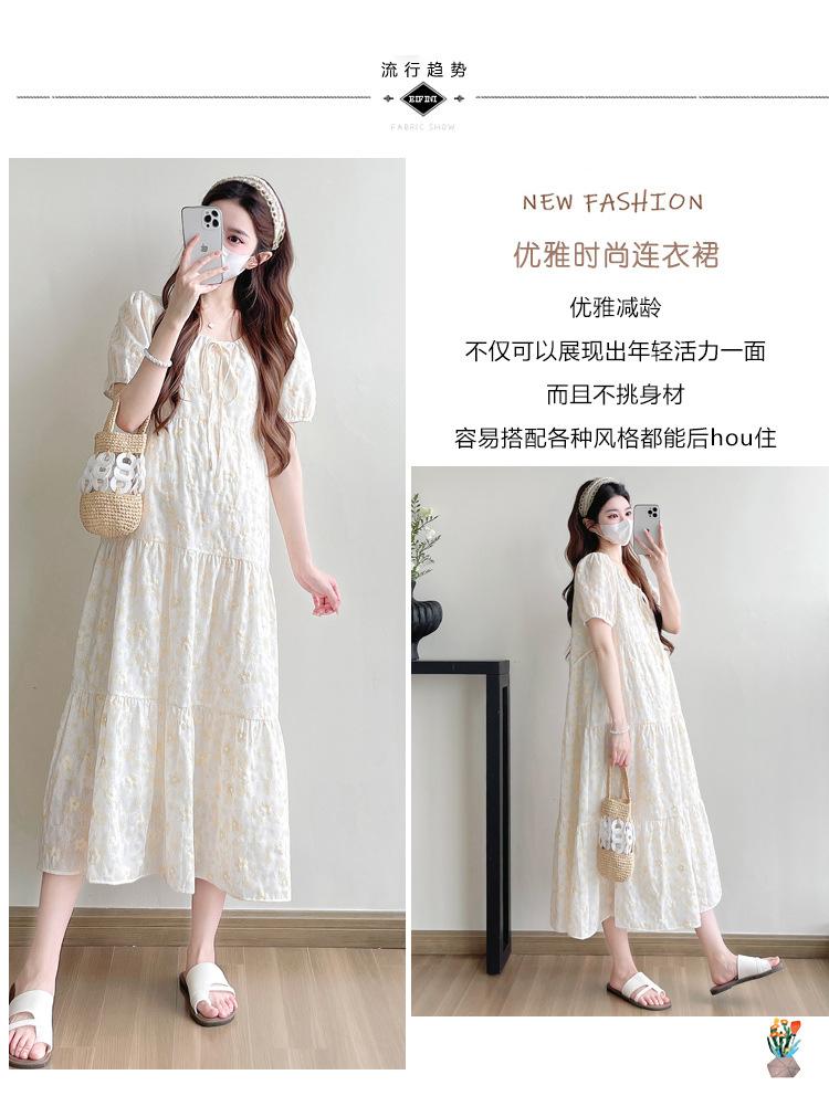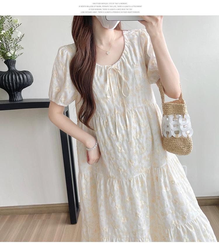Ropa de Maternidad 2025 Verano Nuevo Estilo Coreano Dulce Encaje Bordado Largo Medio Suelto Talla Grande Vestido de Maternidad