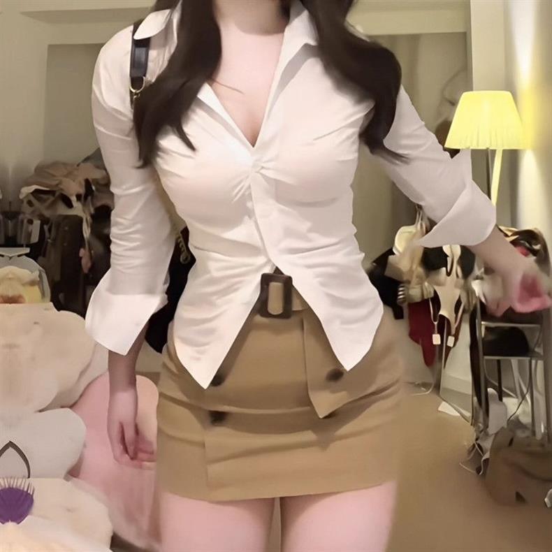 Uniforme JK Deseo Puro Chica Picante Camisa Cintura Ajustada para Mujer Primavera y Otoño Estilo Universitario Camisa Blanca Corte Ajustado Top Básico Ajustado