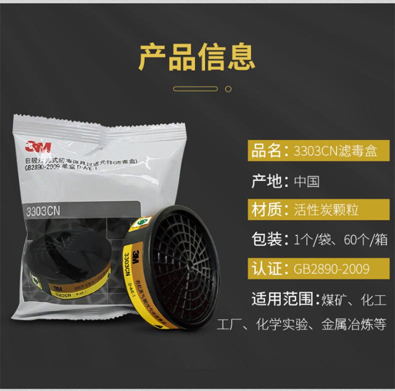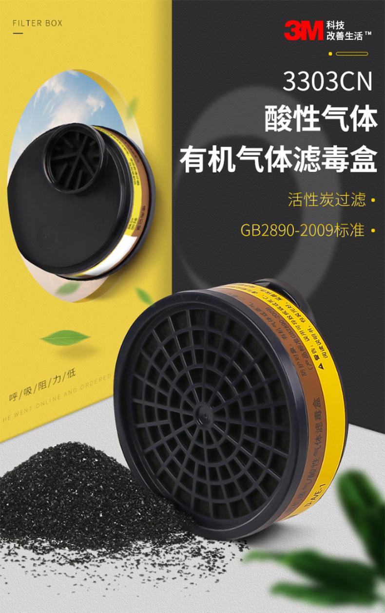 Caja de Filtro para Veneno 3M3303Cn Genuina con Carbón Activado de Alta Adsorción Anti Gas Ácido para Usar con Máscara de Gas