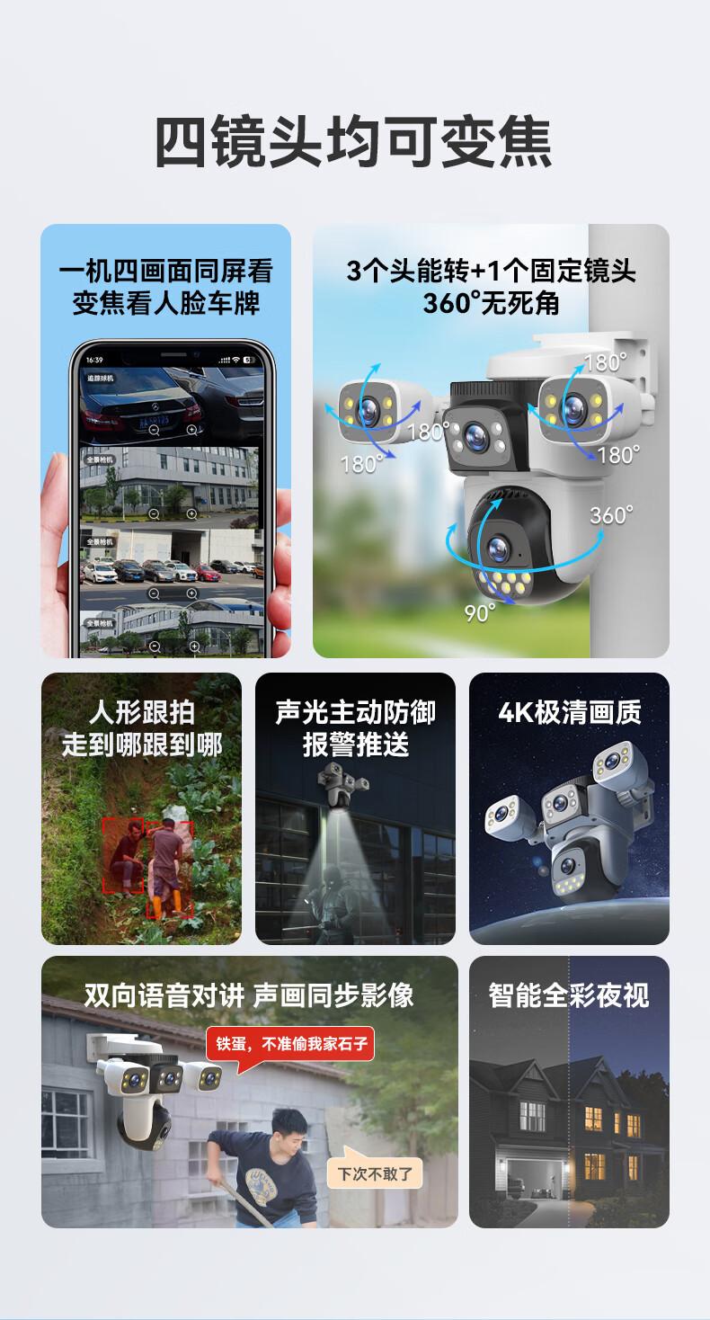 , supports 5 preset slot settings, movable detection, humanoid detection alarm, humanoid framing, humanoid tra...