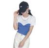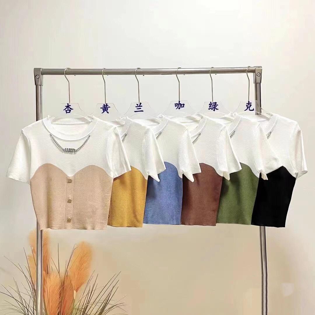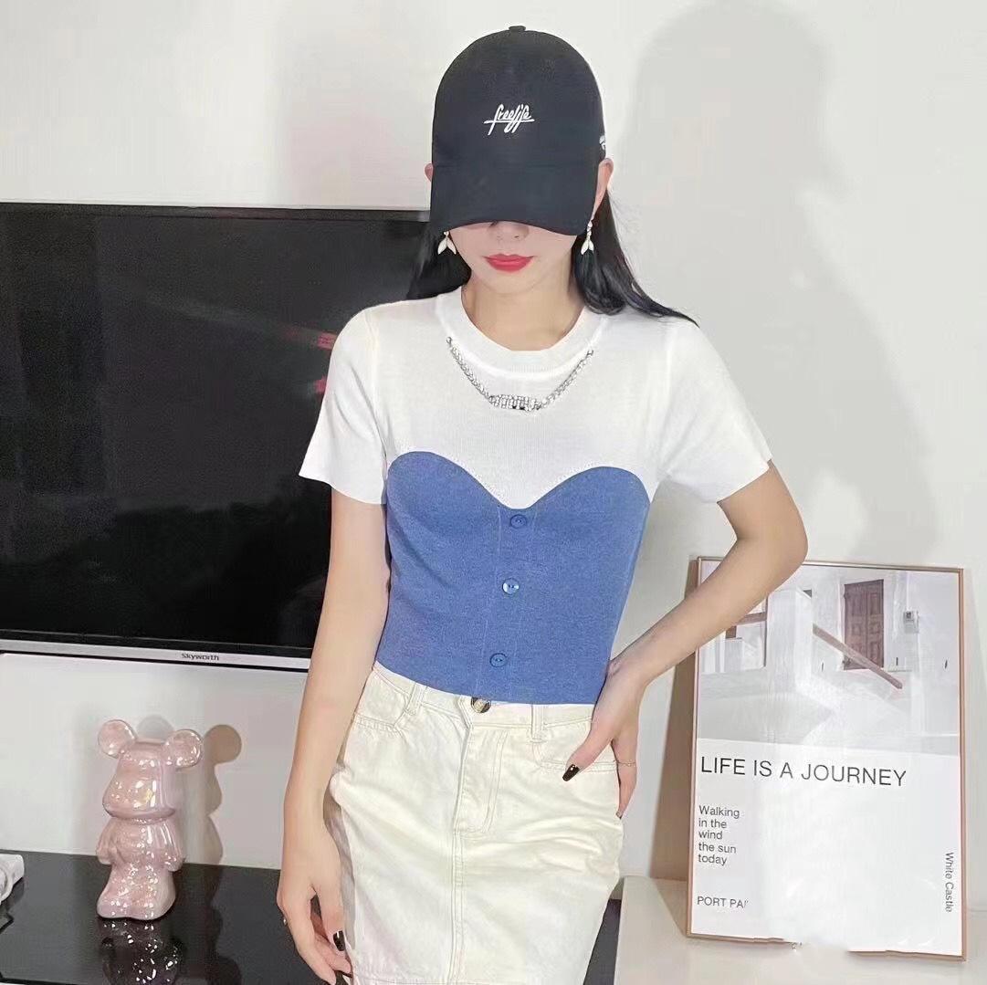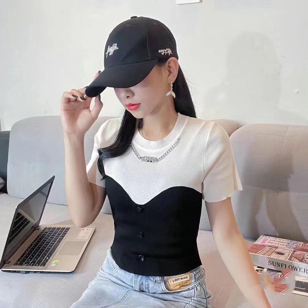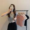 Puro dulce chica caliente color de contraste ombligo top corto sentido del diseño nicho único estilo Hong Kong retro manga corta tejido de punto verano de mujer