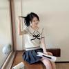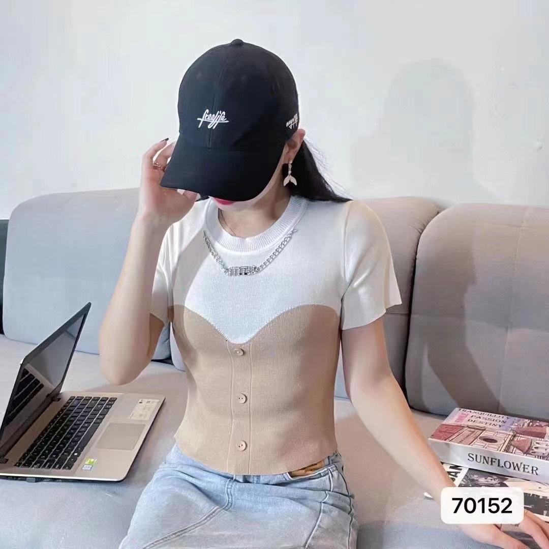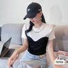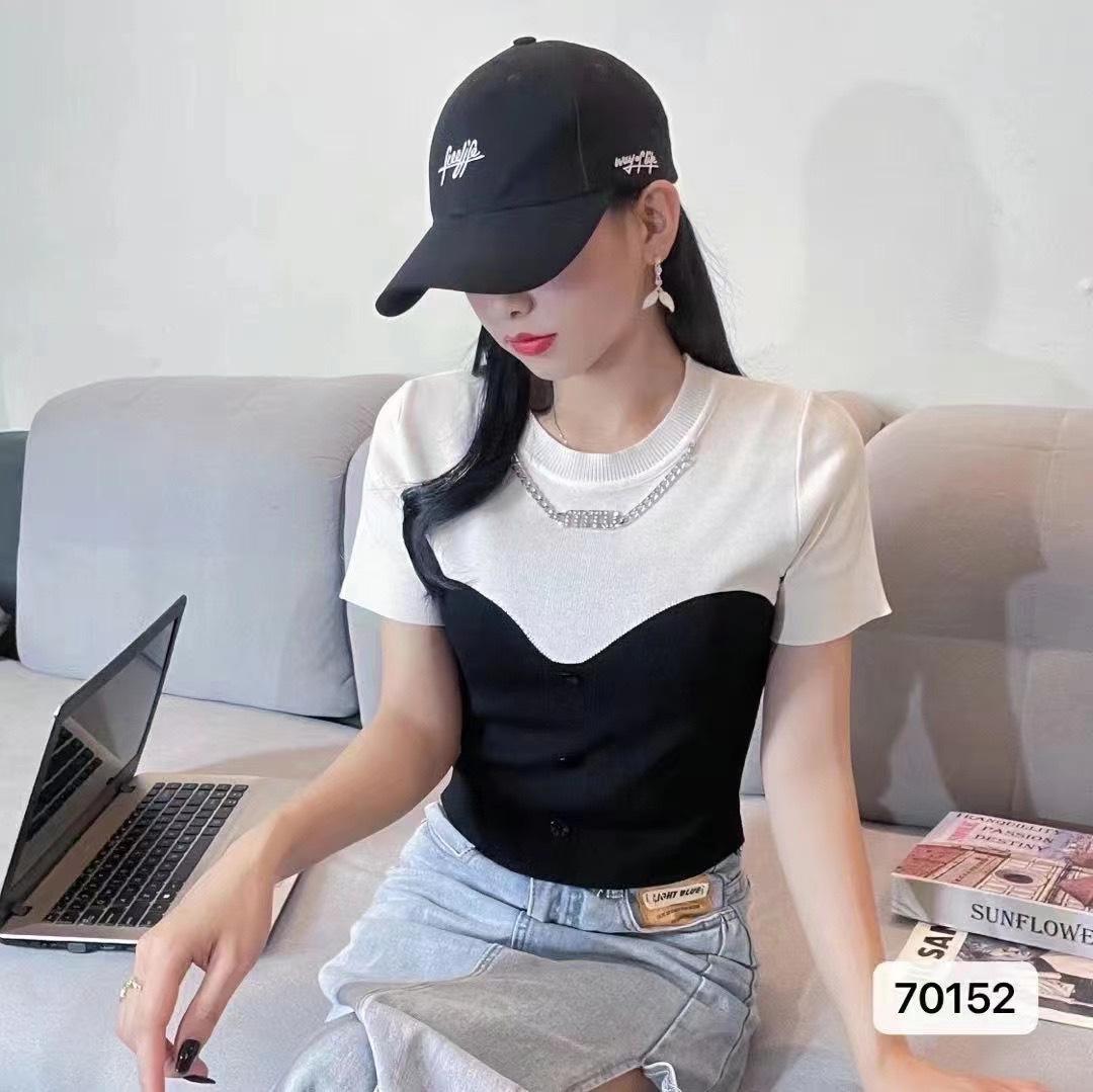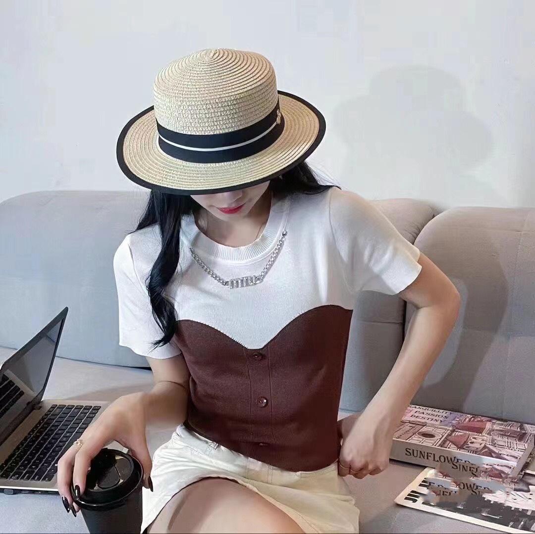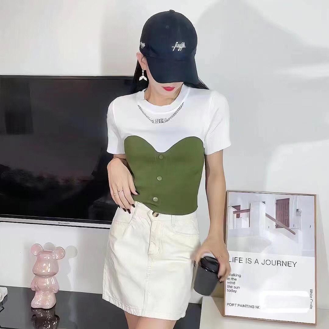 Puro dulce chica caliente color de contraste ombligo top corto sentido del diseño nicho único estilo Hong Kong retro manga corta tejido de punto verano de mujer