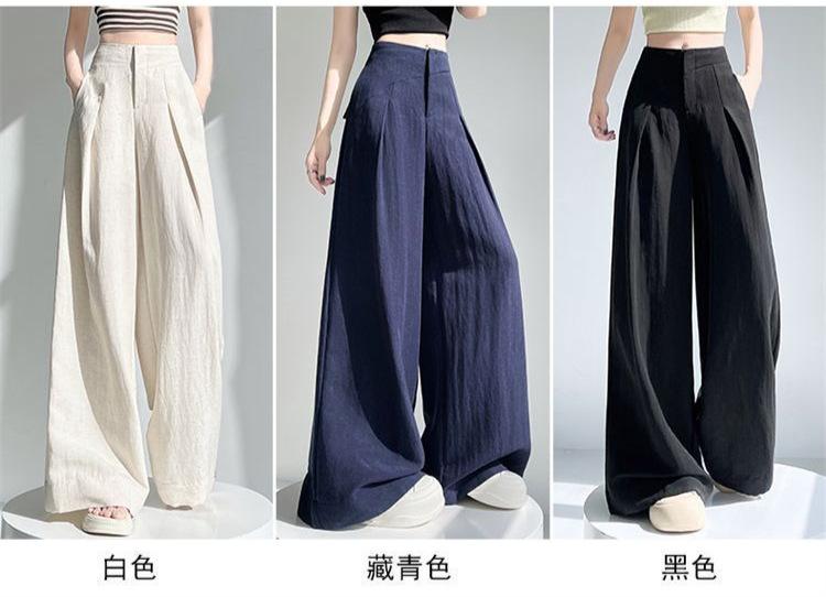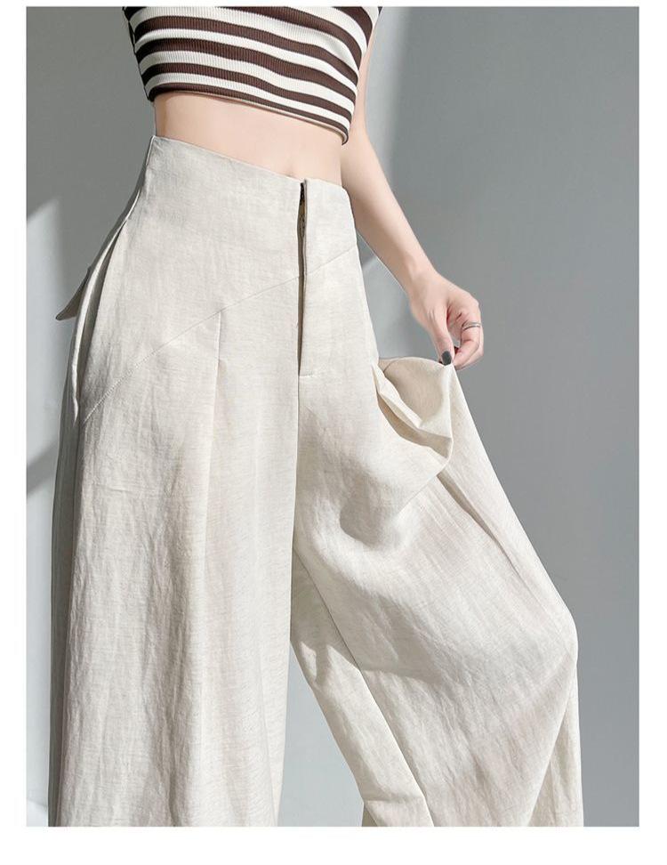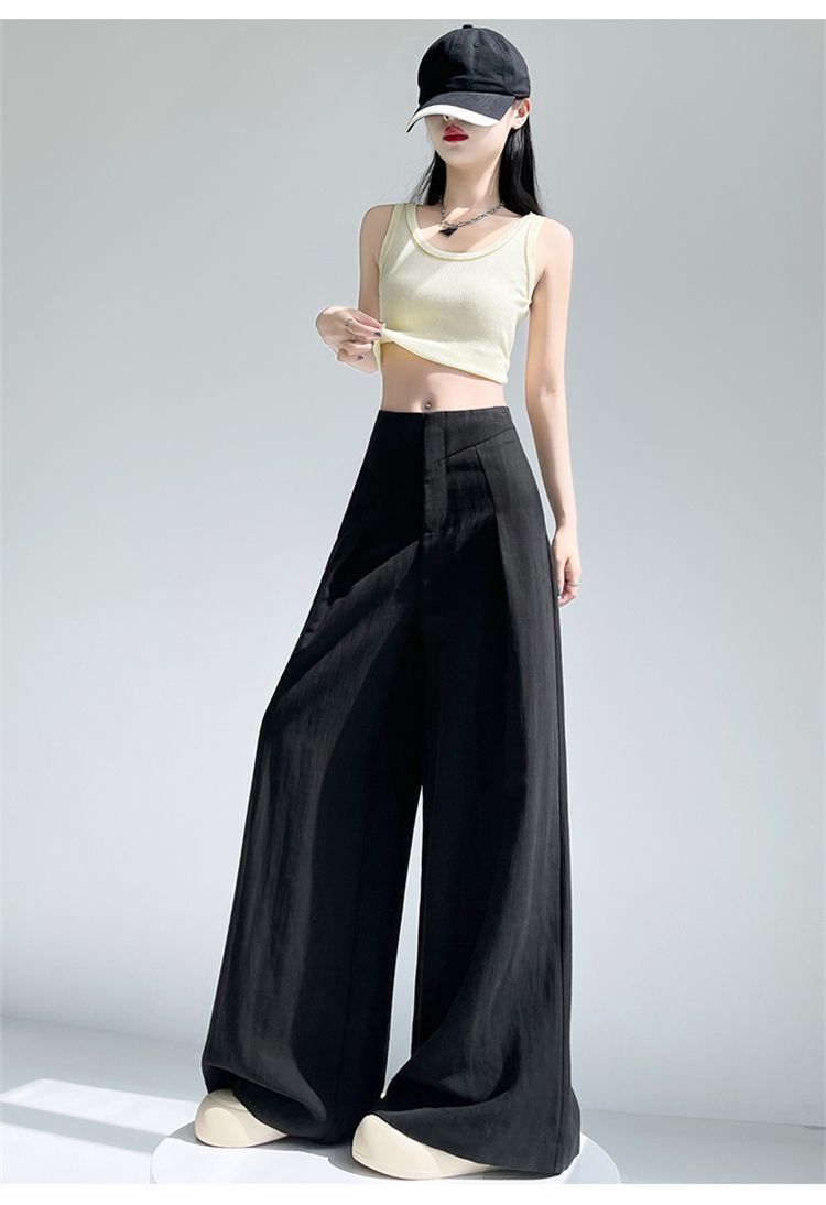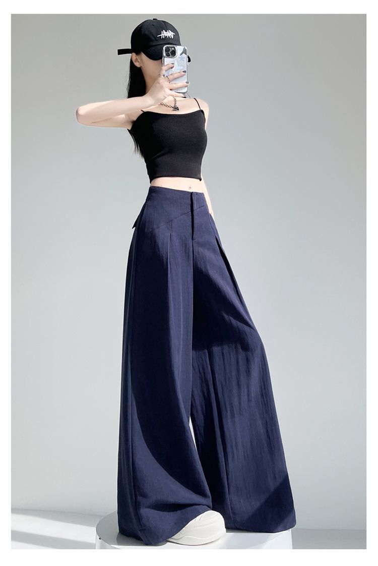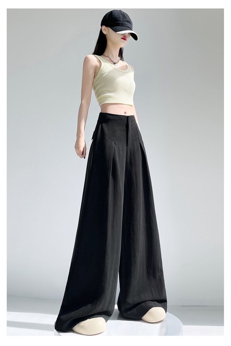 Pantalones de Pierna Ancha de Seda Helada para Mujer 2025 Verano Nuevo Delgados de Cintura Alta Sueltos Adelgazantes con Caída Casual Hasta el Piso Pantalones Yamamoto