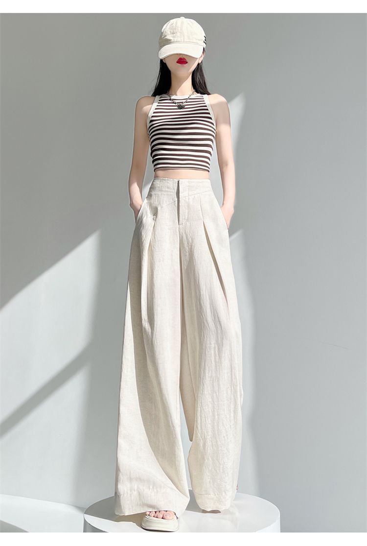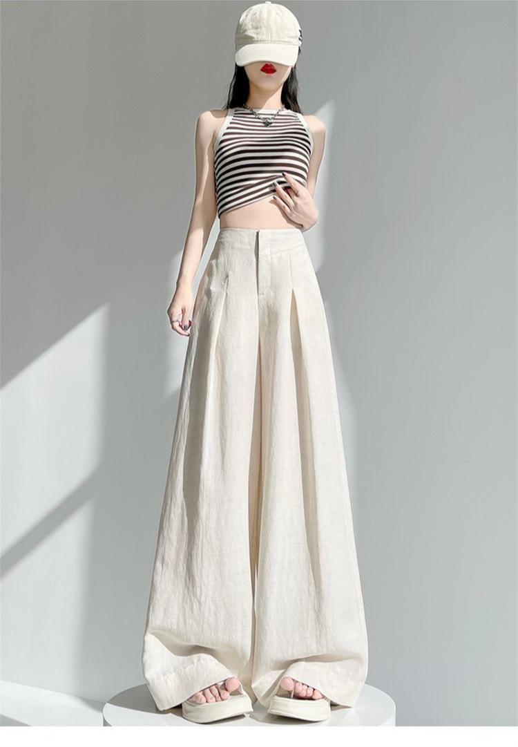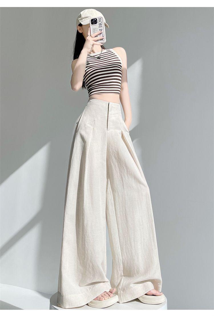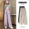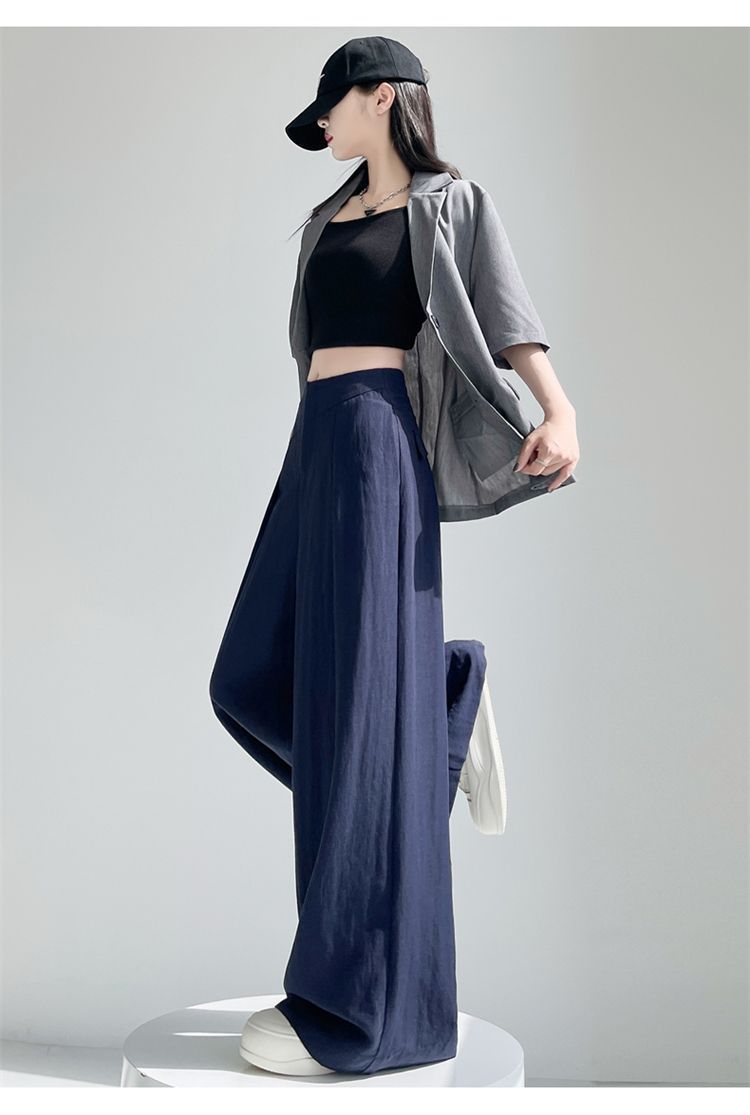 Pantalones de Pierna Ancha de Seda Helada para Mujer 2025 Verano Nuevo Delgados de Cintura Alta Sueltos Adelgazantes con Caída Casual Hasta el Piso Pantalones Yamamoto