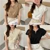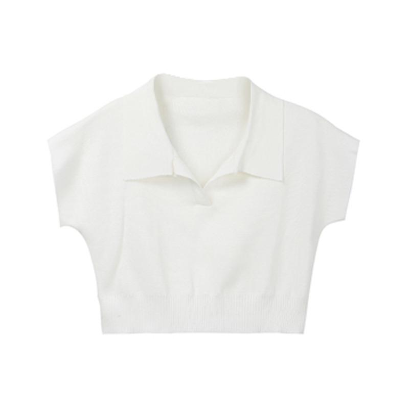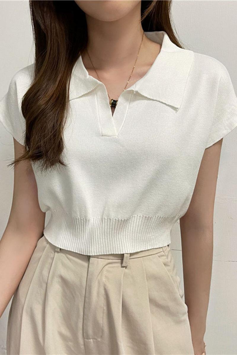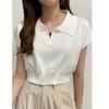 Polo de manga corta ajustado y sencillo, camiseta de punto corto con solapa para mujer, estilo coreano de verano 2023