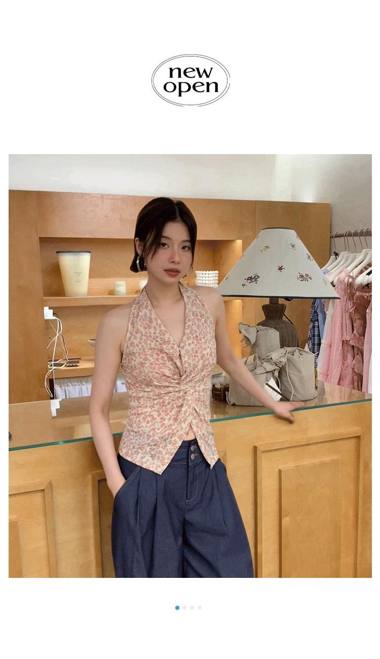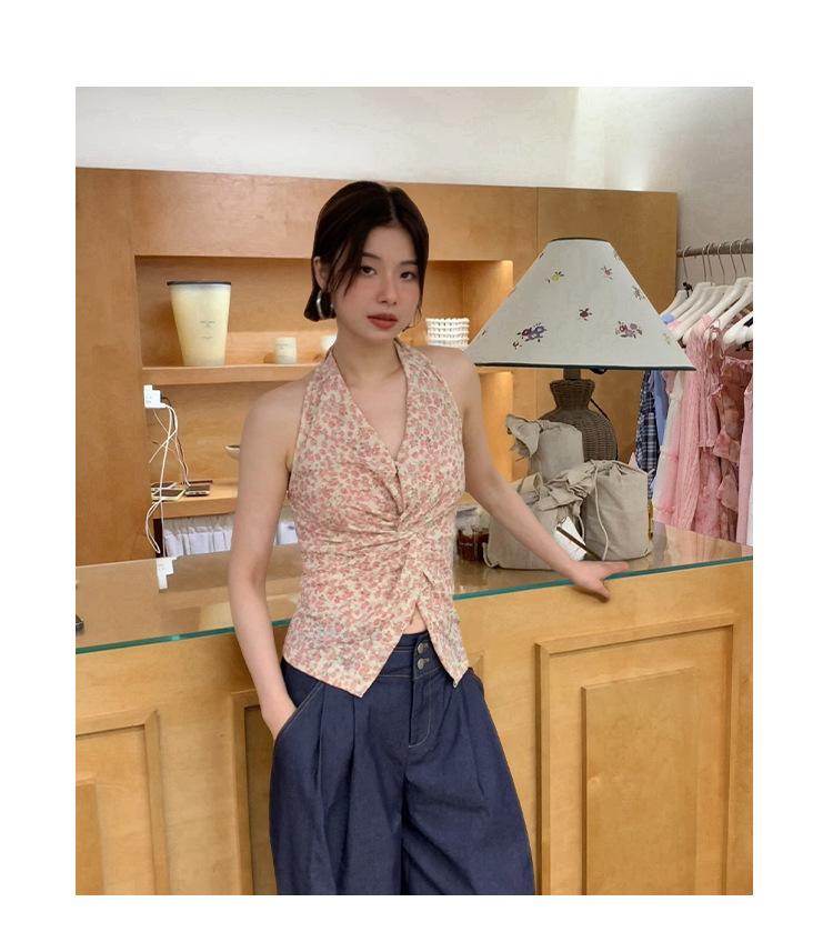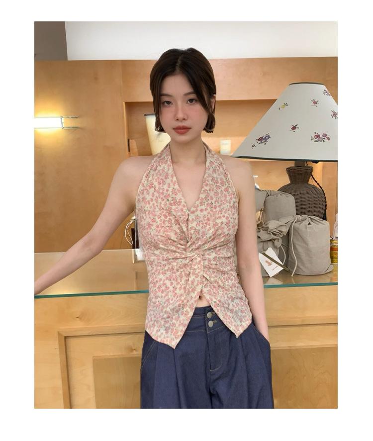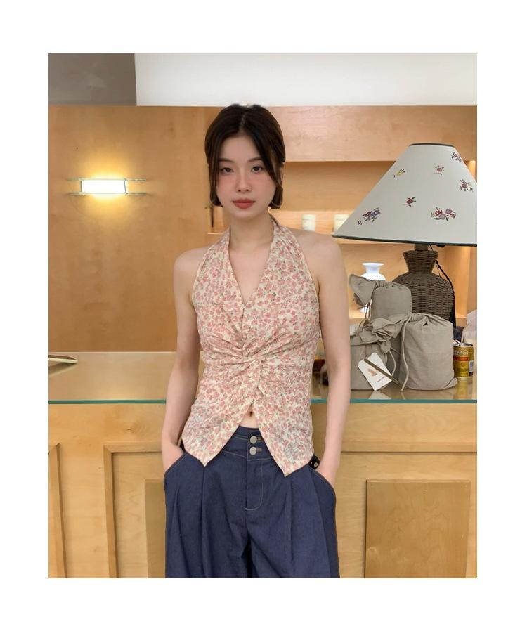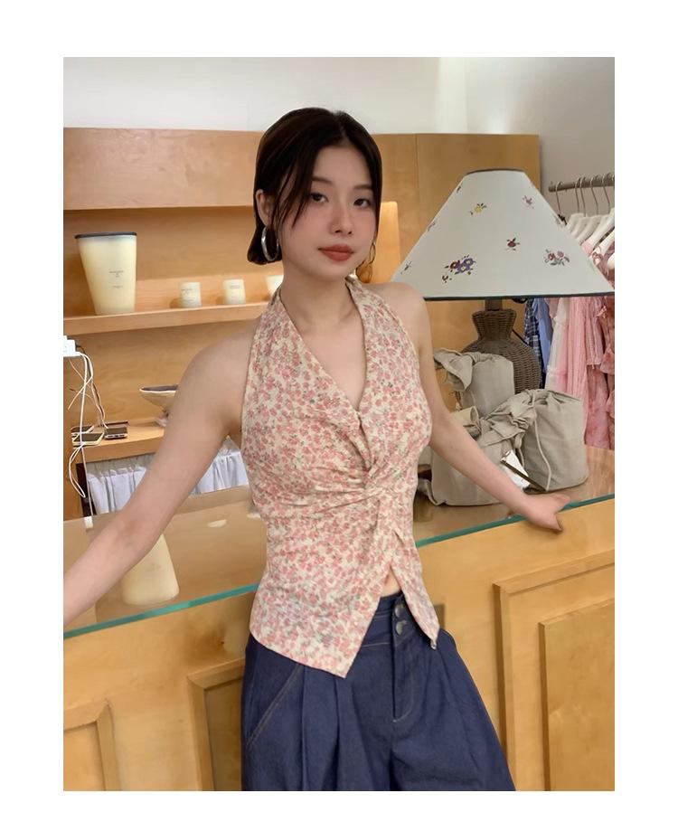 Interpretación de la Belleza Newopen 25 Verano Dulce y Picante Sexy Cuello en V Slim Halter Floral Camisola Pequeña para Mujer S5659