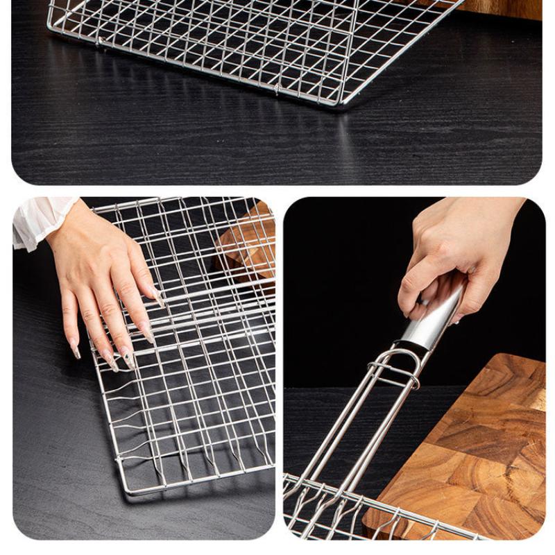 Set de Parrilla de Acero Inoxidable para BBQ - Bandeja Plegable para Pescado y Verduras