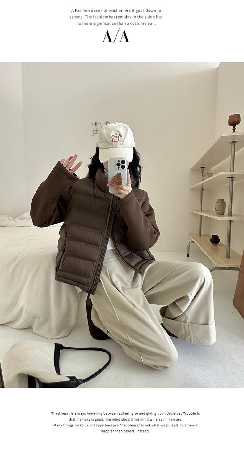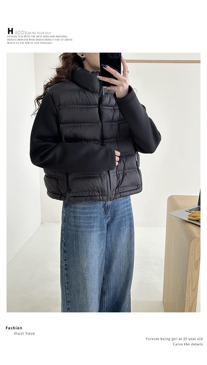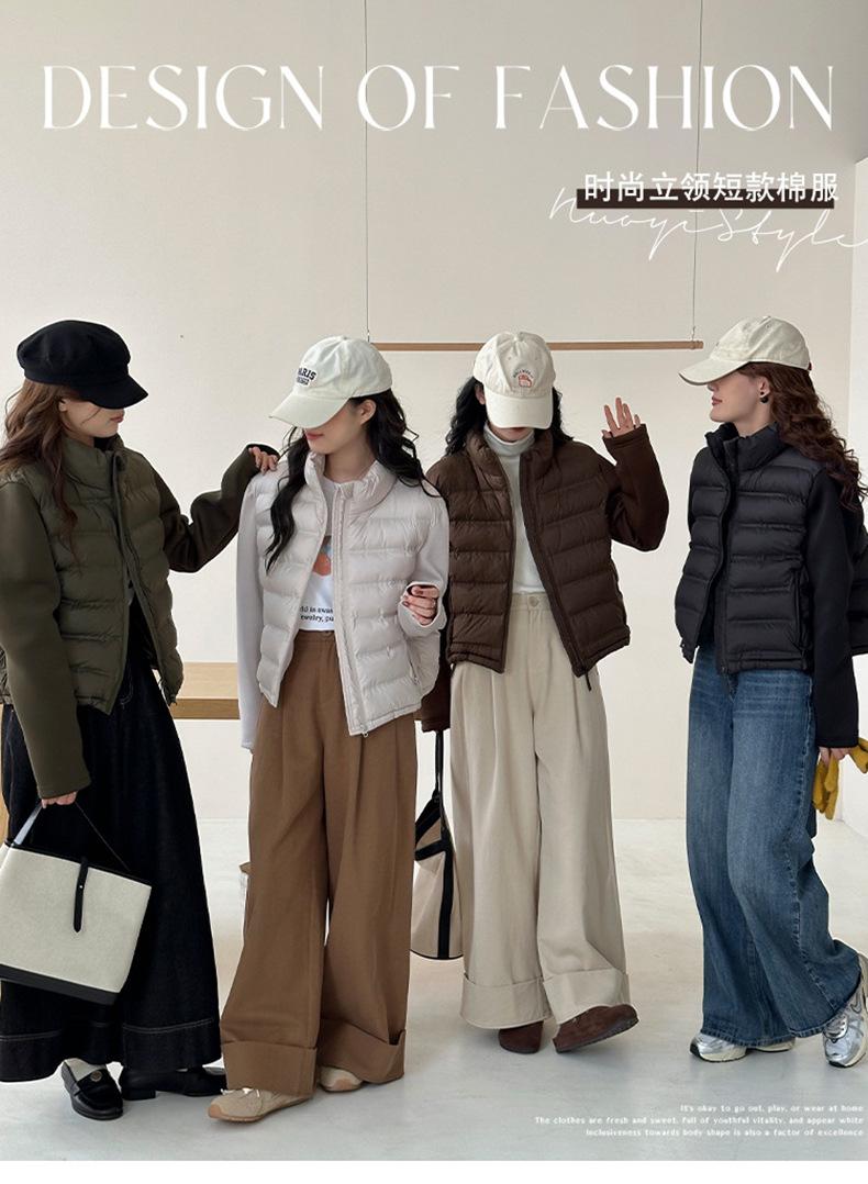 Chaqueta Nueva Ligera Acolchada de Algodón Europea y Americana para Mujer, Otoño e Invierno Empalmada Cuello Alto Cálida Abrigo Interior de Algodón, Chaqueta Corta Versátil para Mujeres Petite