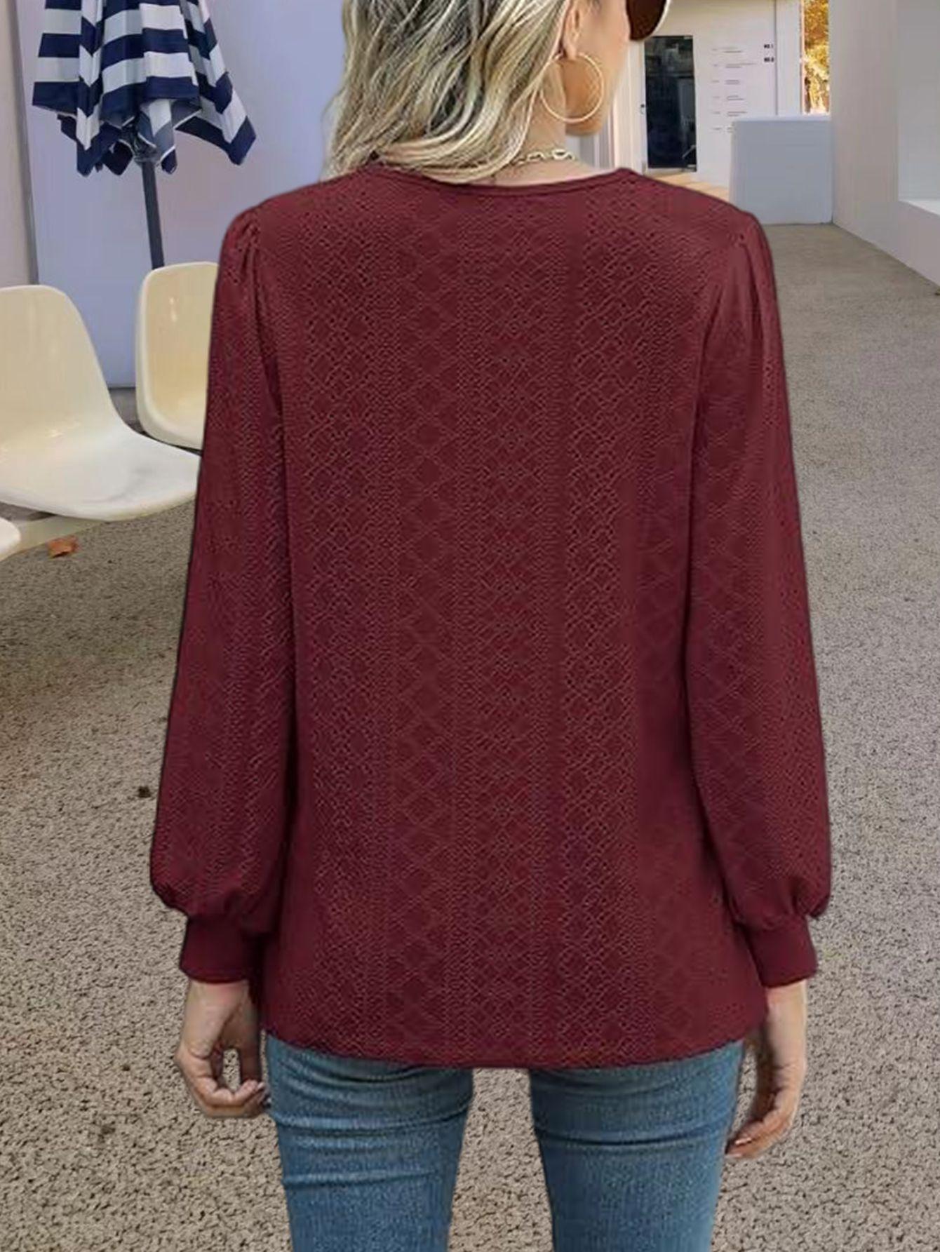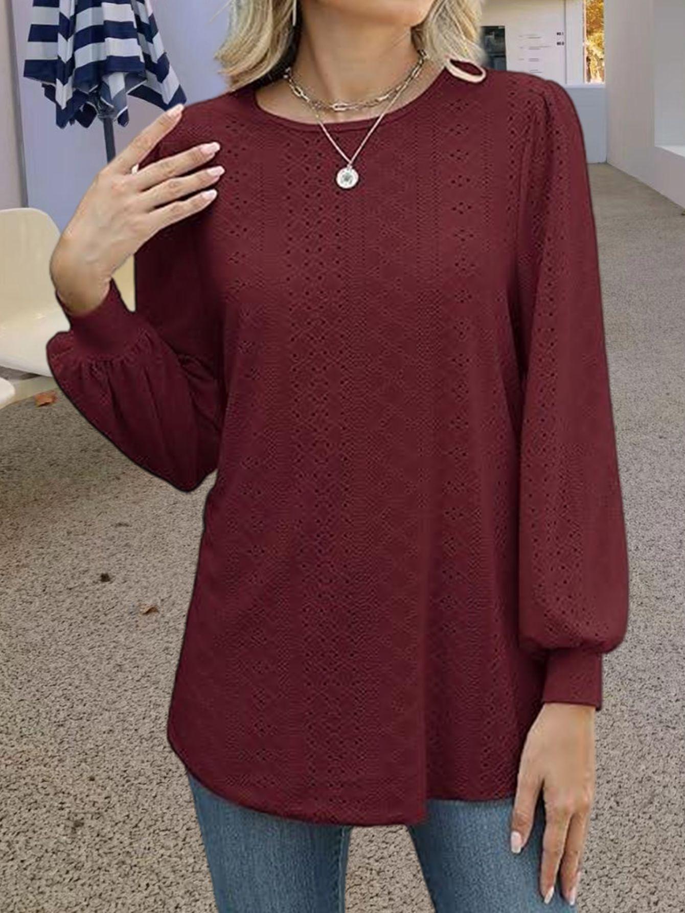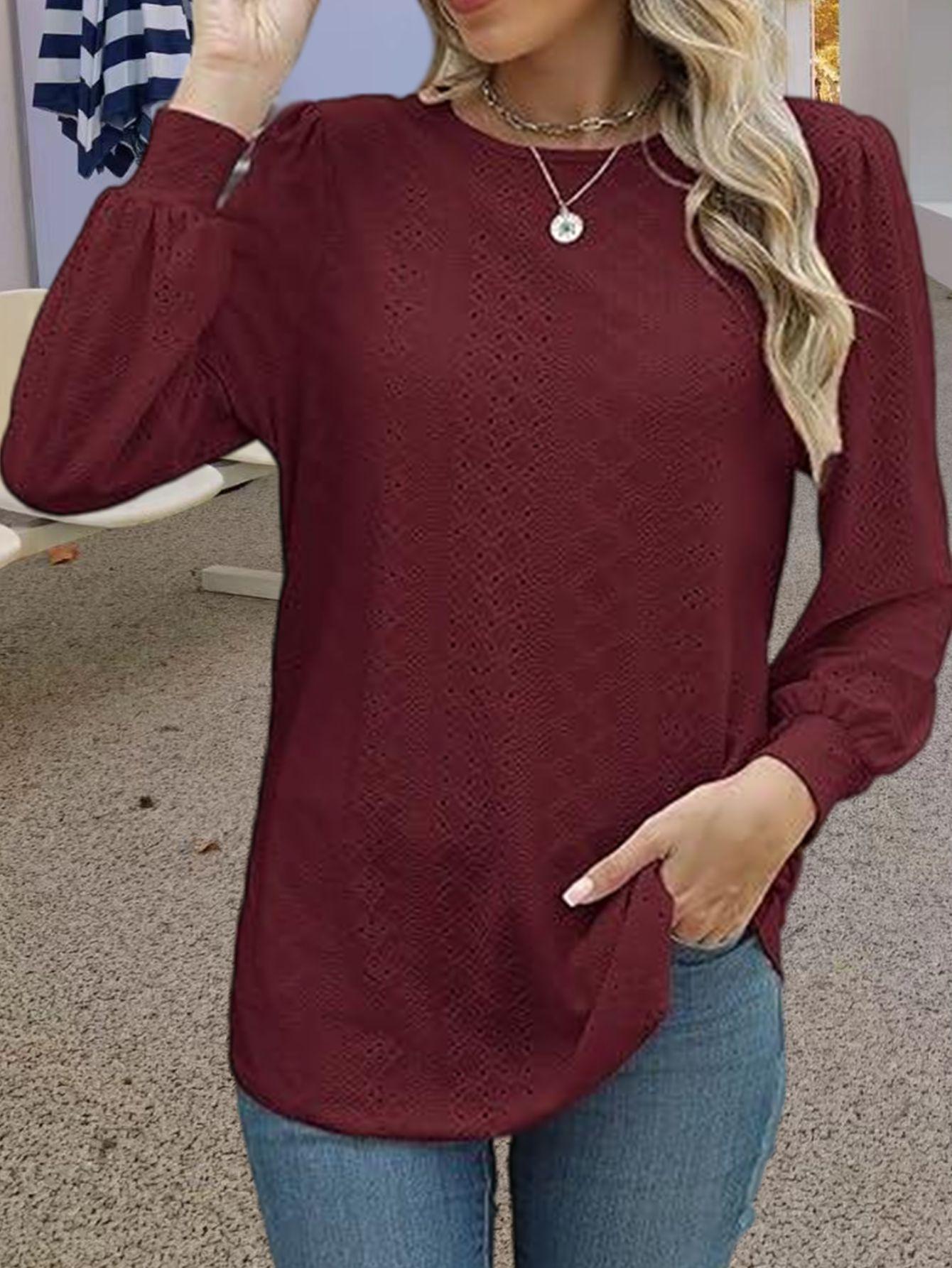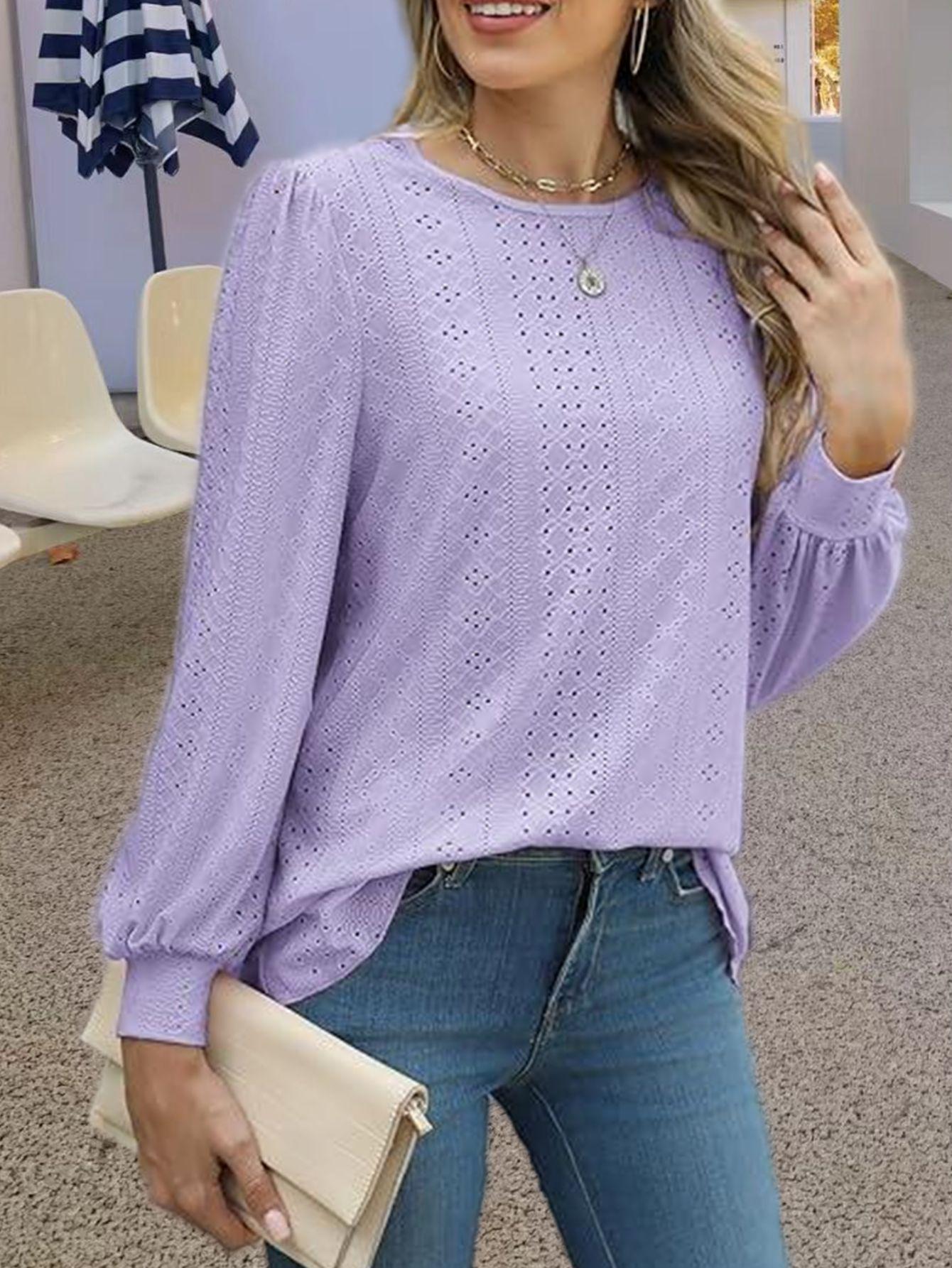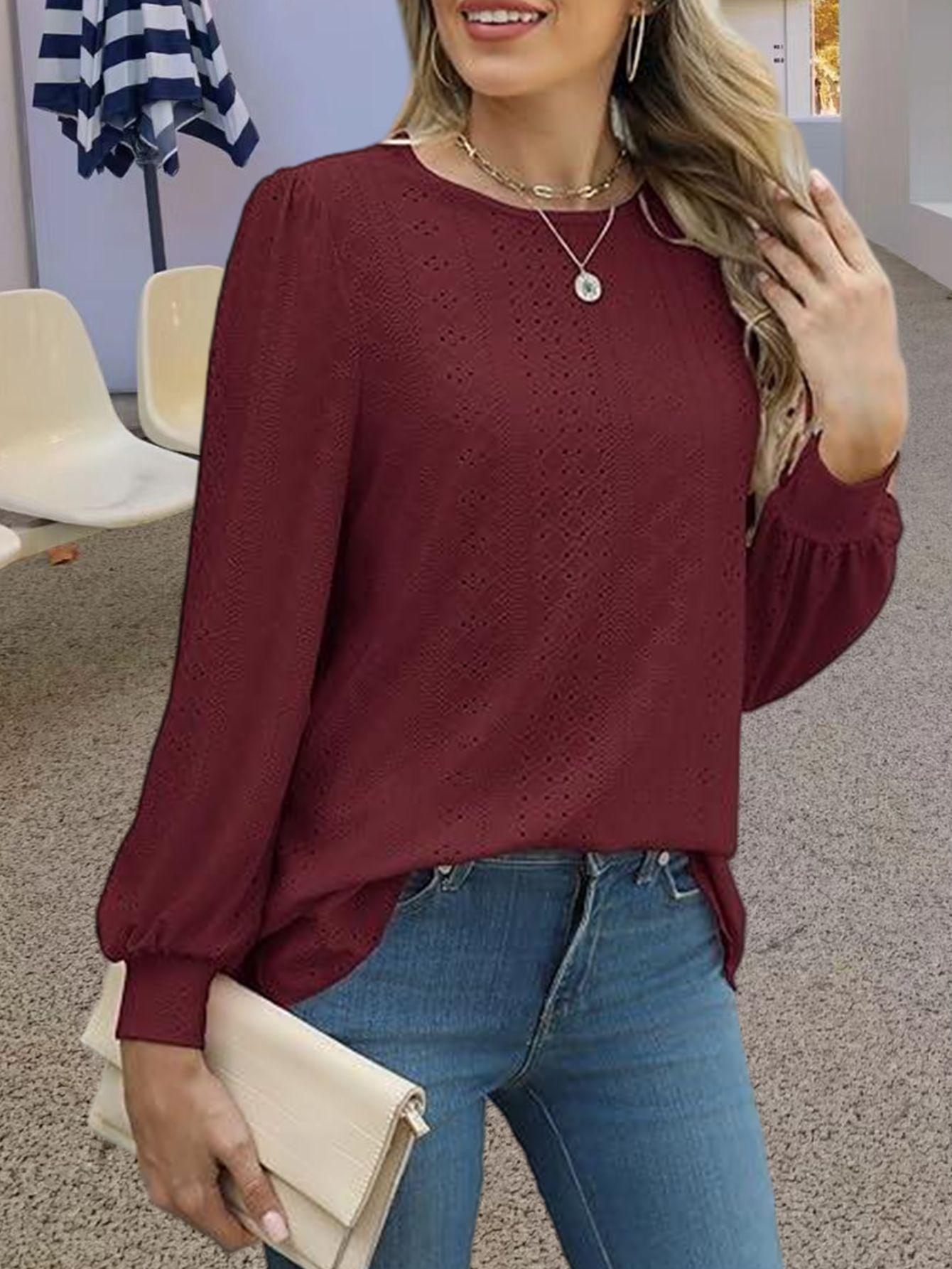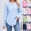 2025 Amazon Nuevo Sitio Independiente Europeo y Americano TikTok Transfronterizo Comercio Exterior Ropa de Mujer Camiseta Hueca de Manga Larga con Cuello Redondo