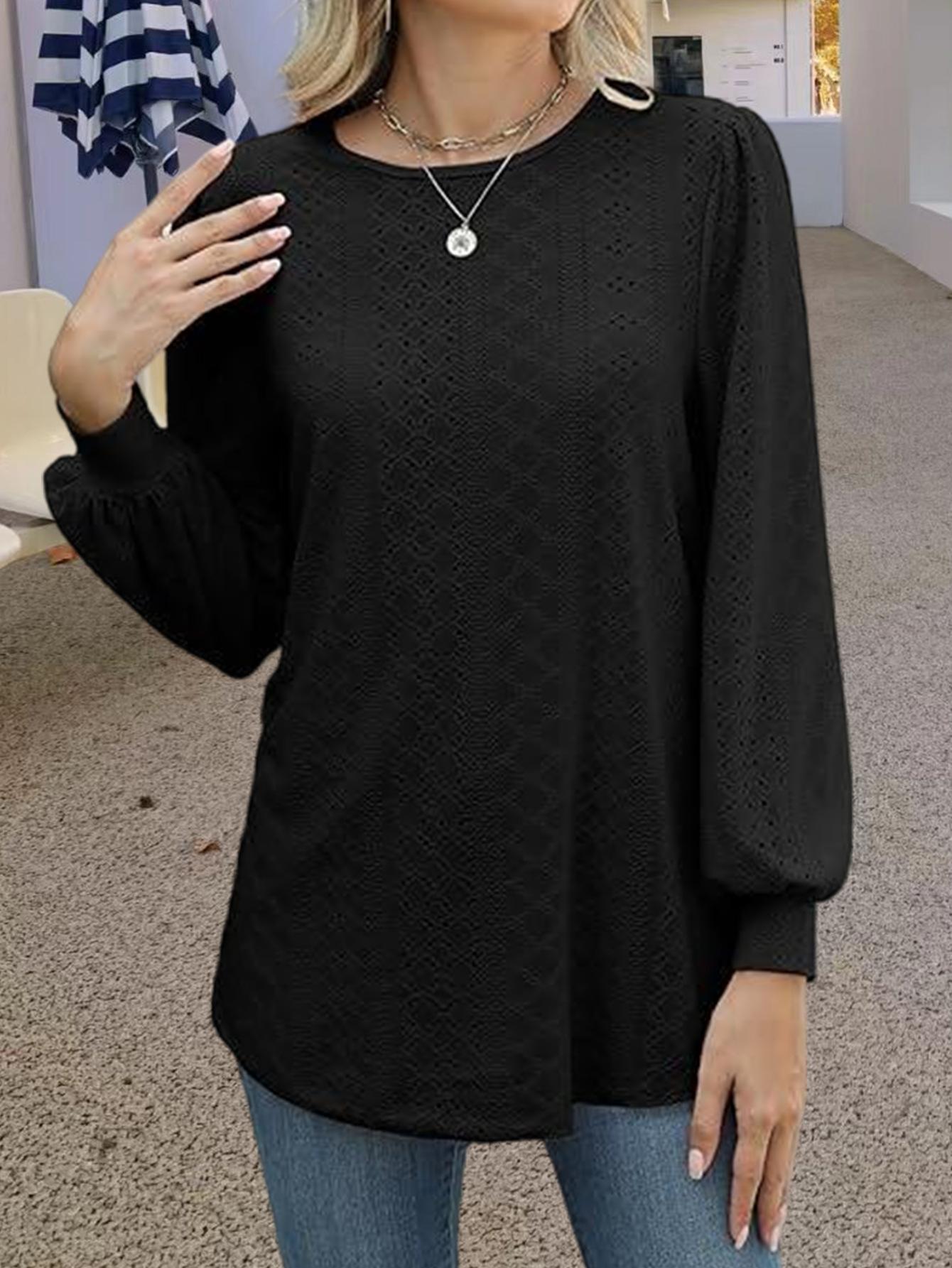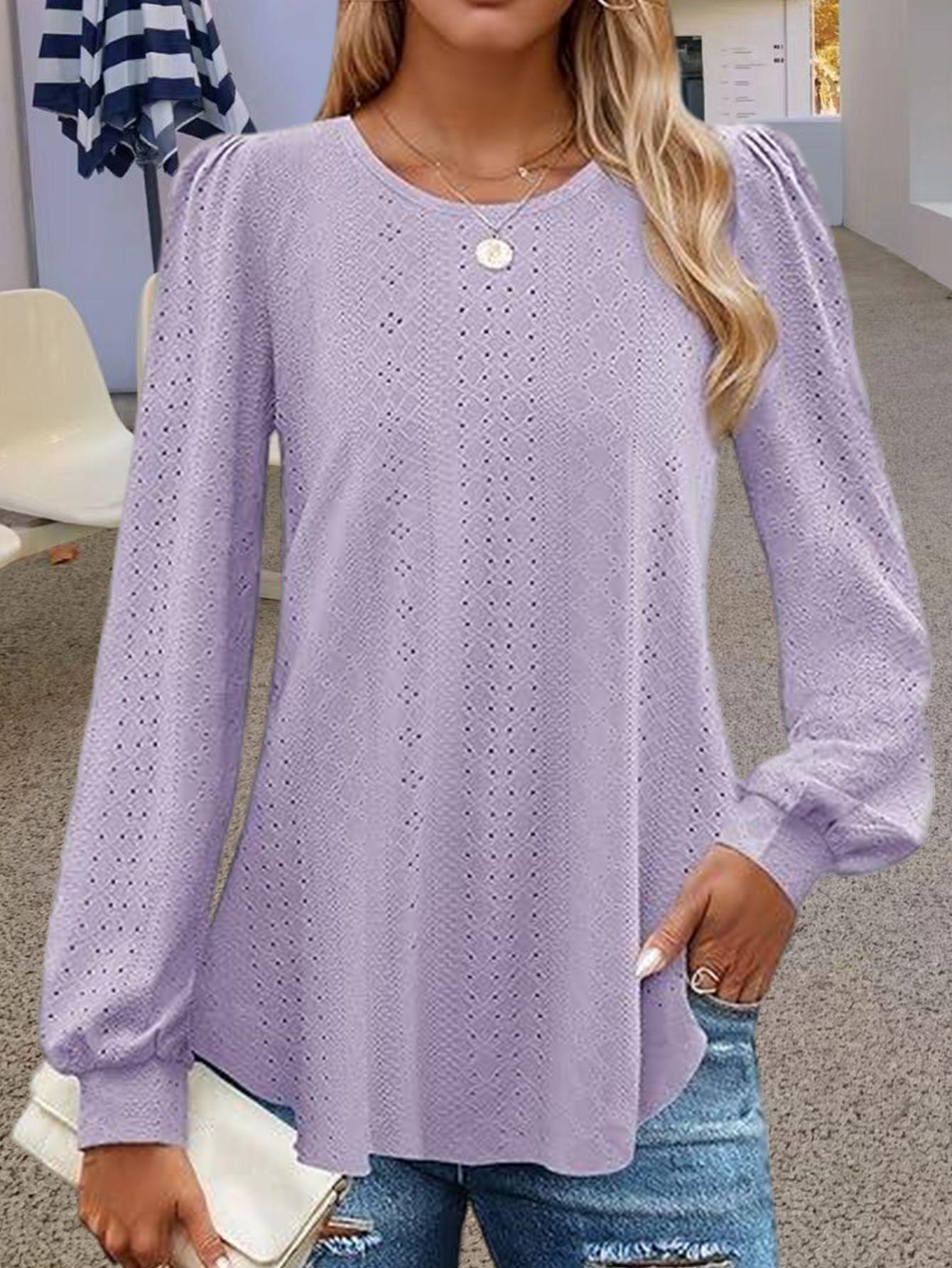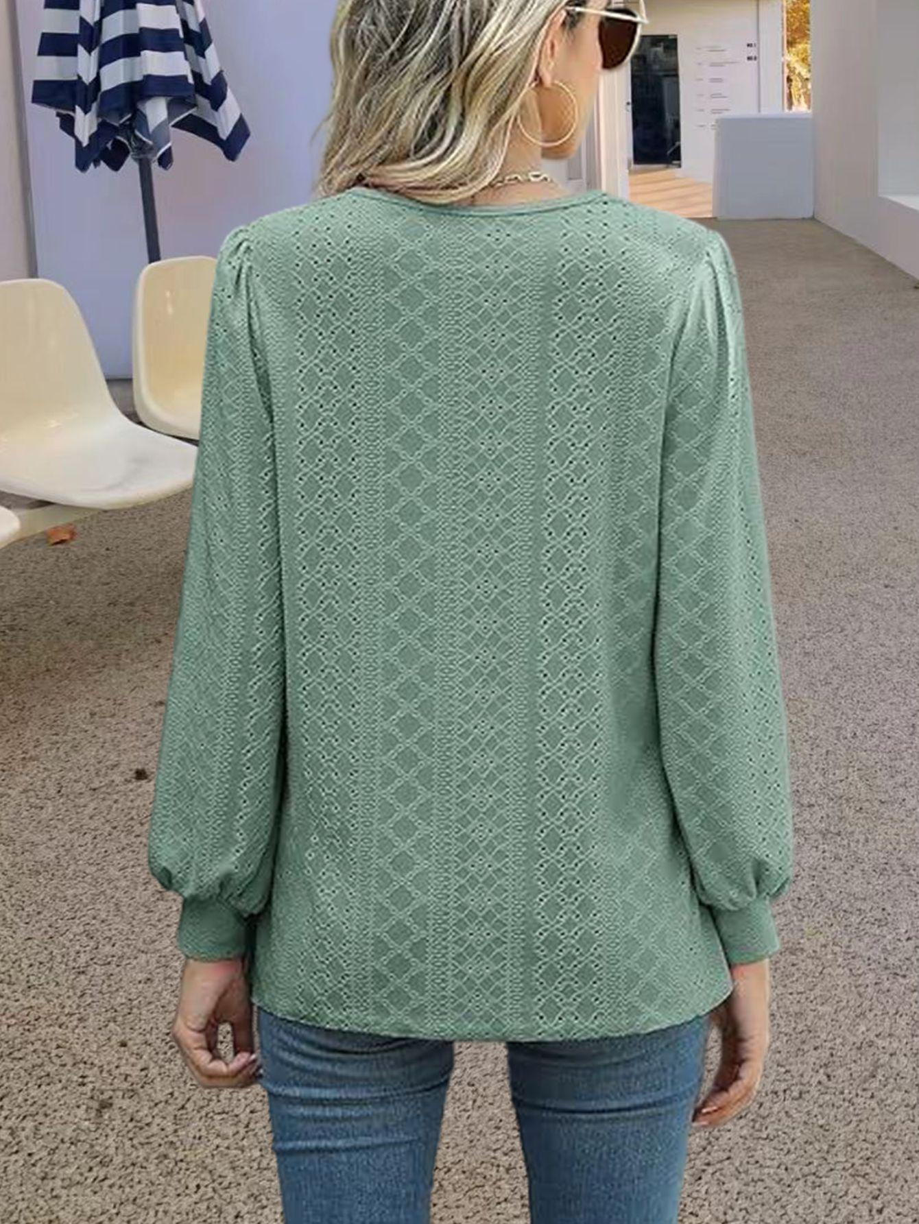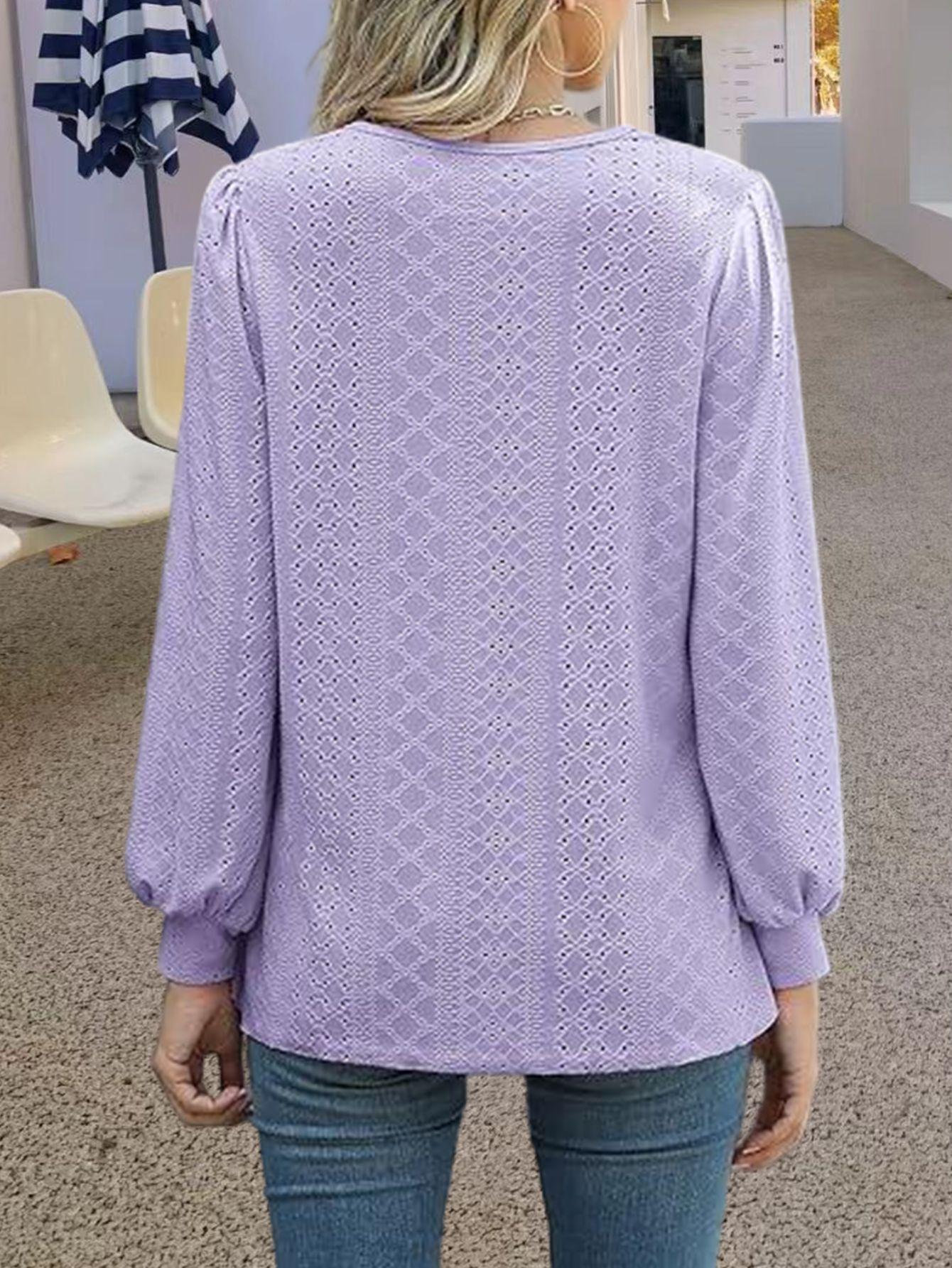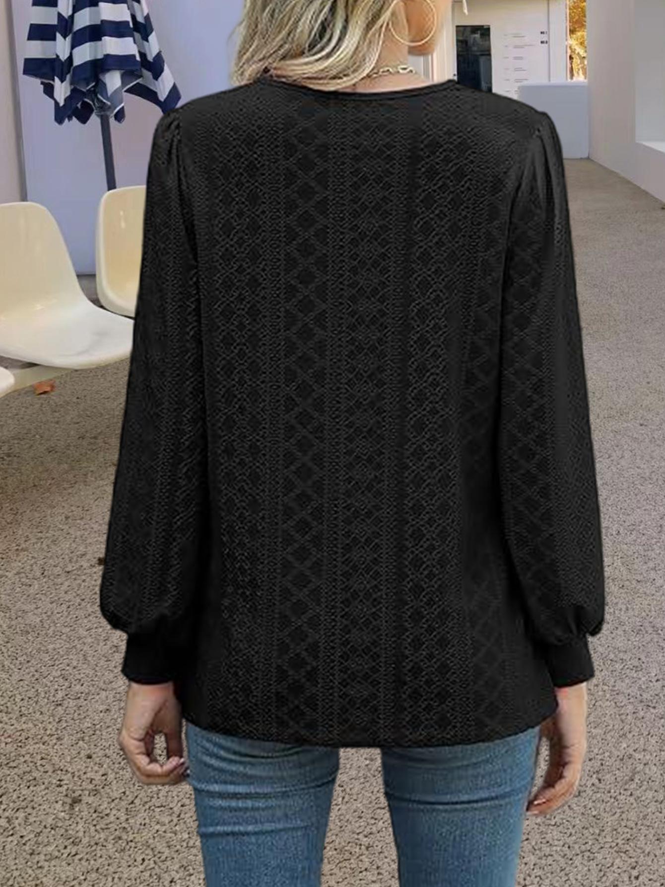 2025 Amazon Nuevo Sitio Independiente Europeo y Americano TikTok Transfronterizo Comercio Exterior Ropa de Mujer Camiseta Hueca de Manga Larga con Cuello Redondo