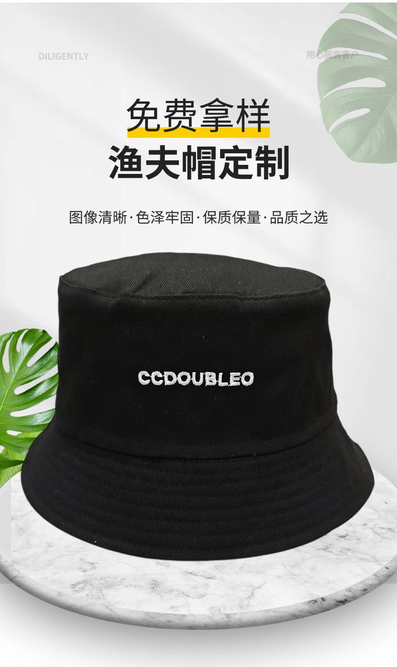 Sombrero de Cubo Negro de Algodón 100% Personalizado con Logo de Letras Bordado Ala Corta Protección Solar Sombrero de Pescador Personalizado