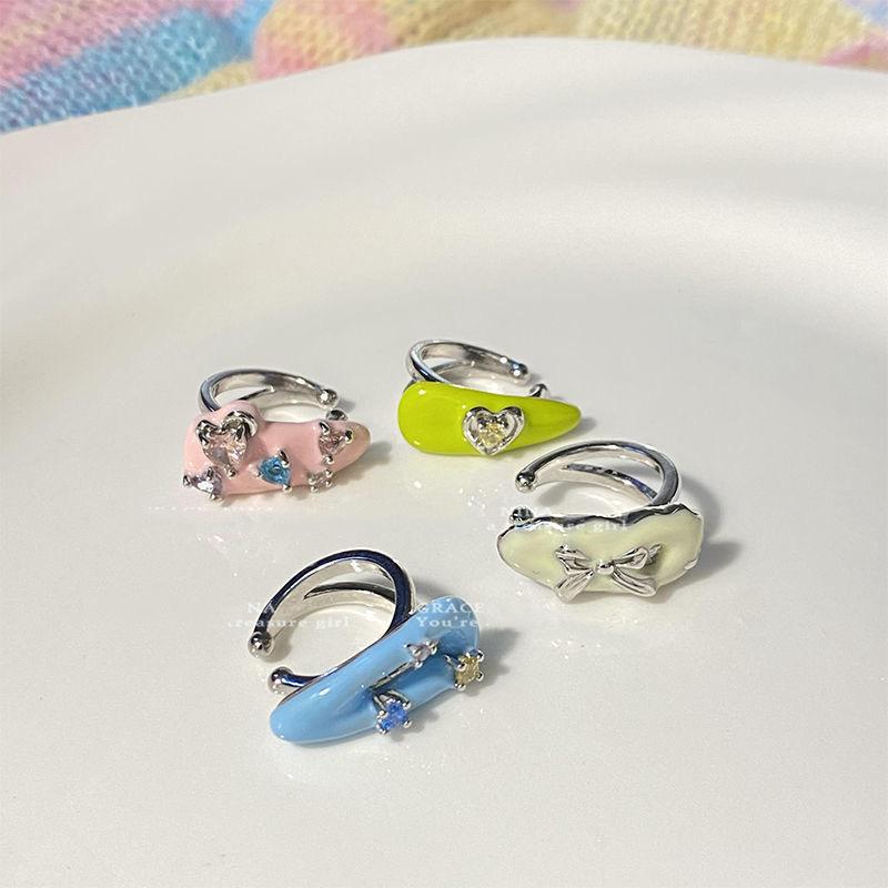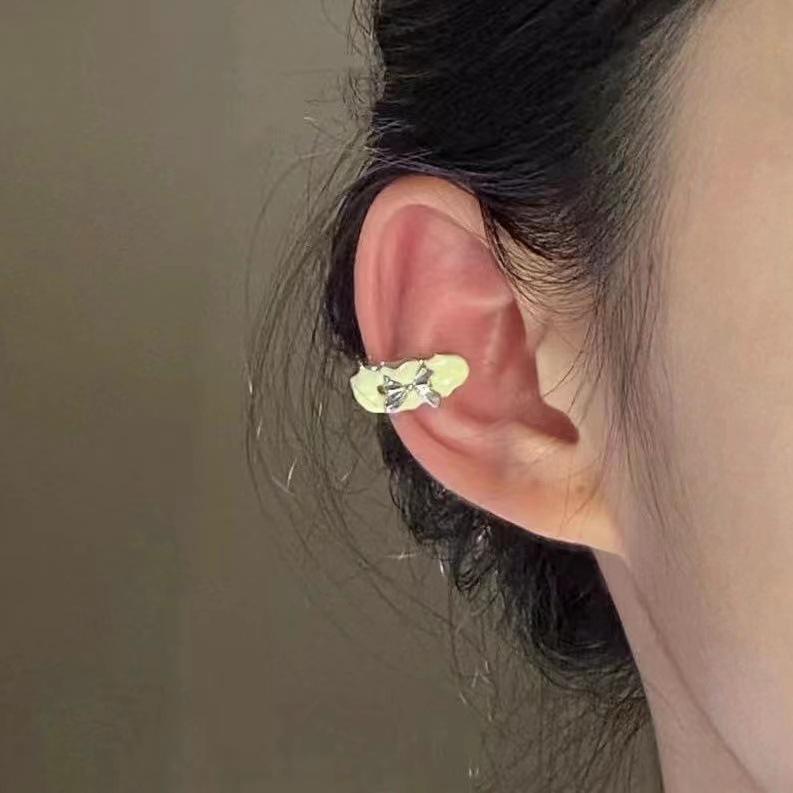 Nuevo Estilo Lindo Juventud Disco Púrpura Colorido Divertido Goteo de Aceite Clip para la Oreja Clip para el Hueso de la Oreja para Mujer Aretes para Mujer Sin Agujeros en la Oreja
