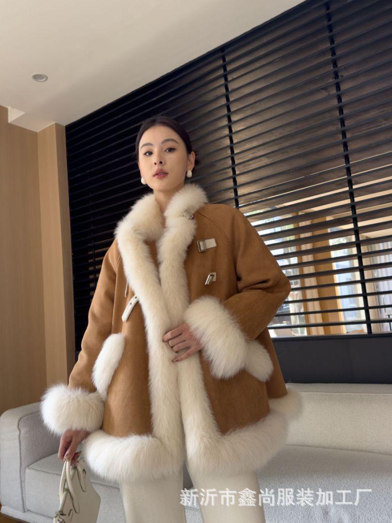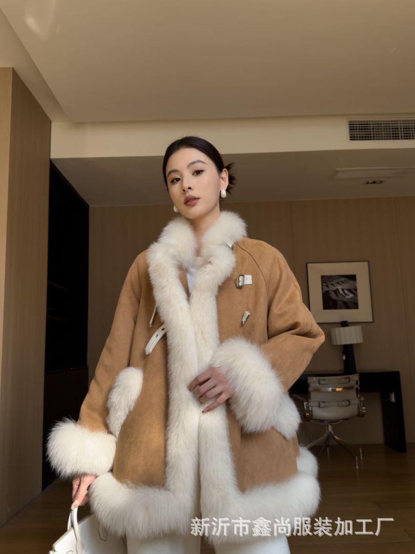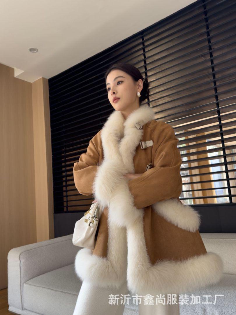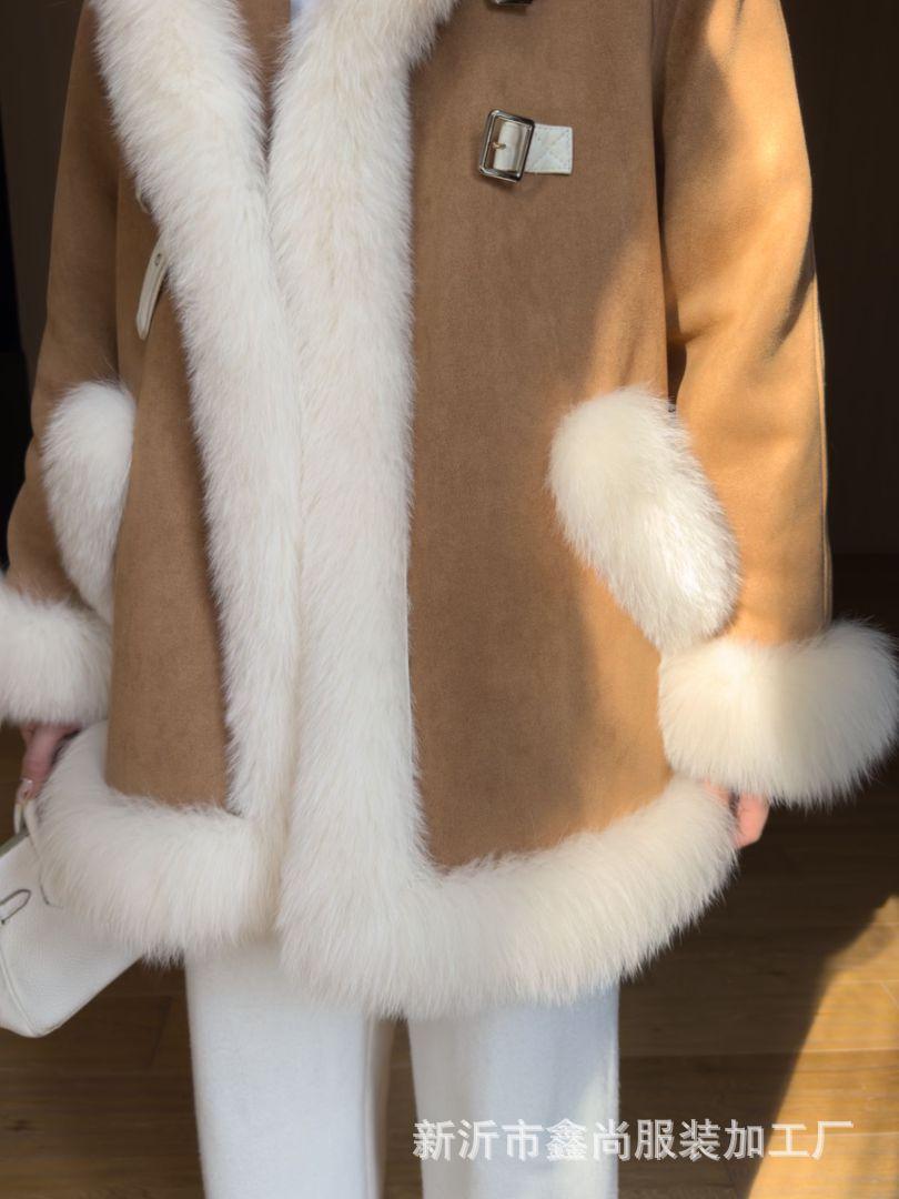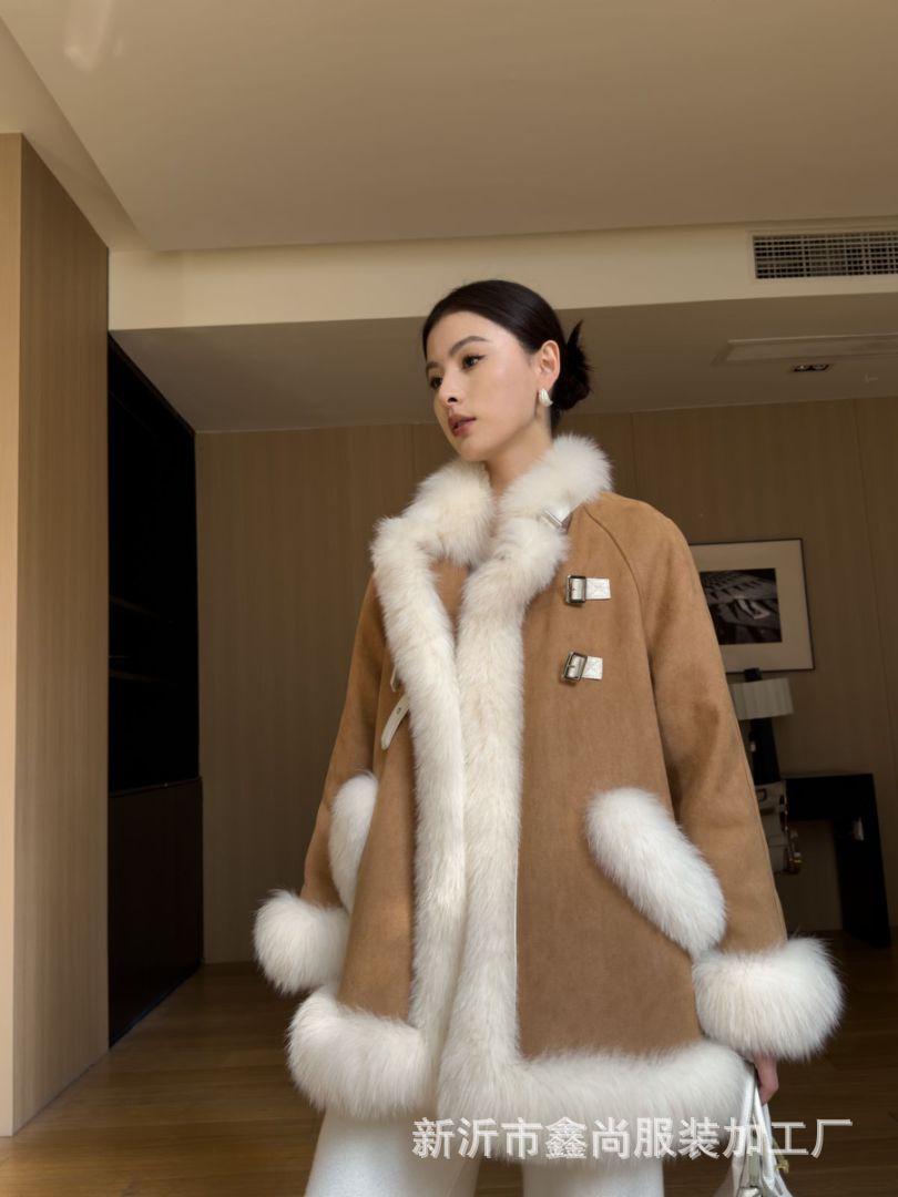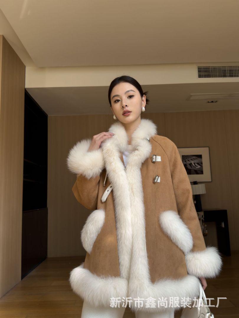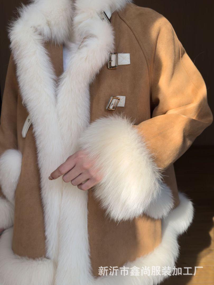 Invierno 2024 Nuevo Capa de Piel Sintética de Zorro para Mujer Estilo Coreano Chaqueta de Plumón de Pato Blanco Abrigo de Gamuza de Longitud Media