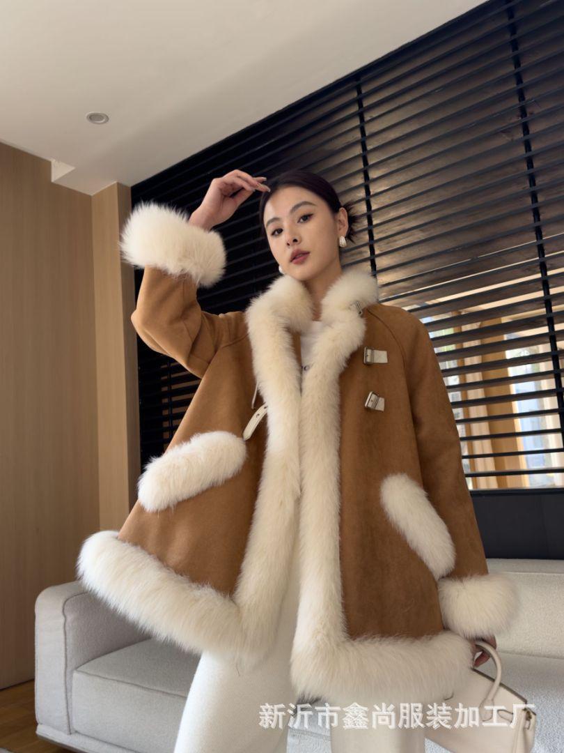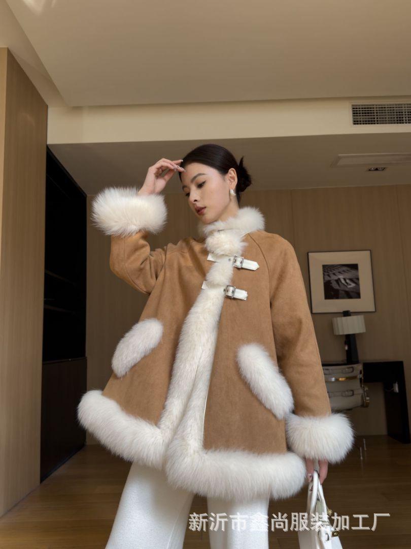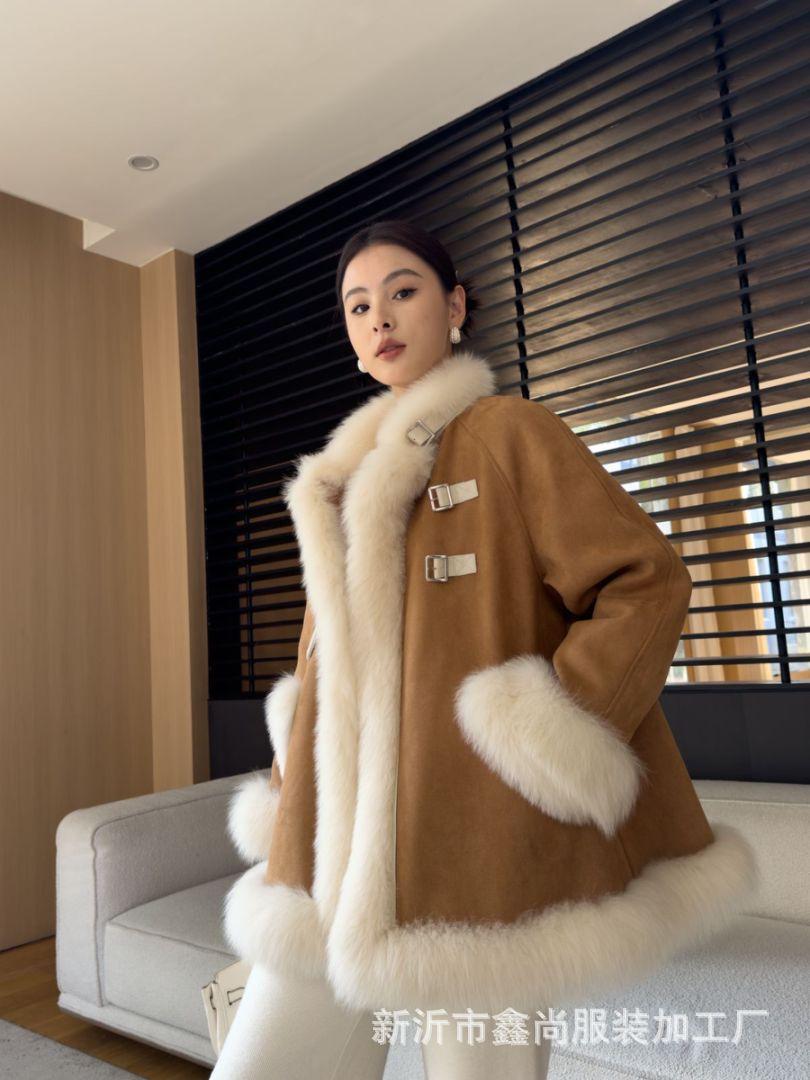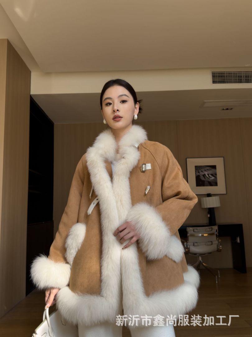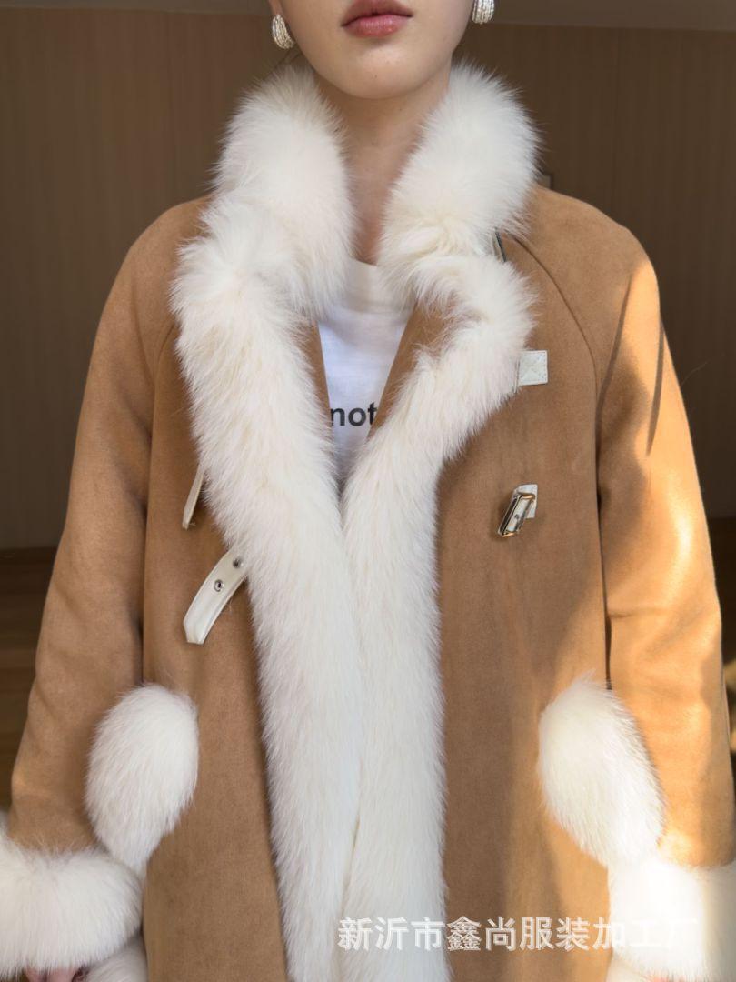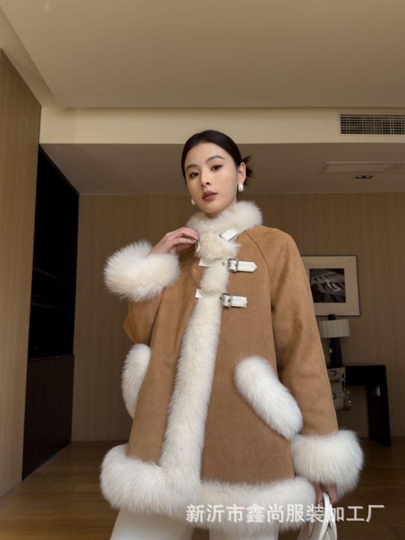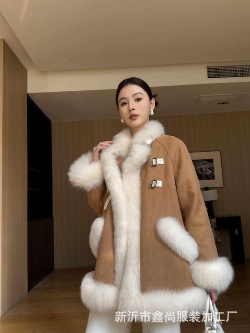 Invierno 2024 Nuevo Capa de Piel Sintética de Zorro para Mujer Estilo Coreano Chaqueta de Plumón de Pato Blanco Abrigo de Gamuza de Longitud Media
