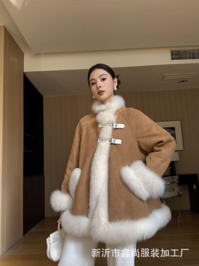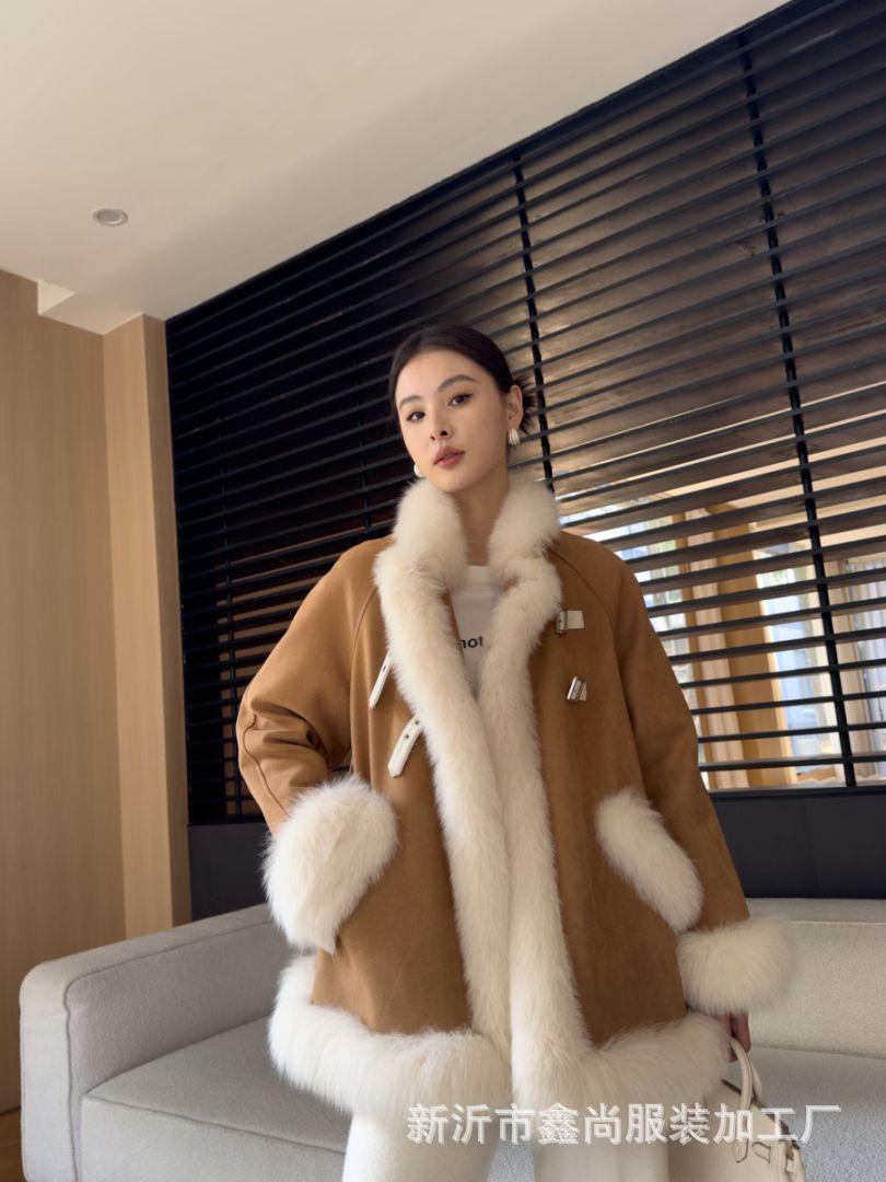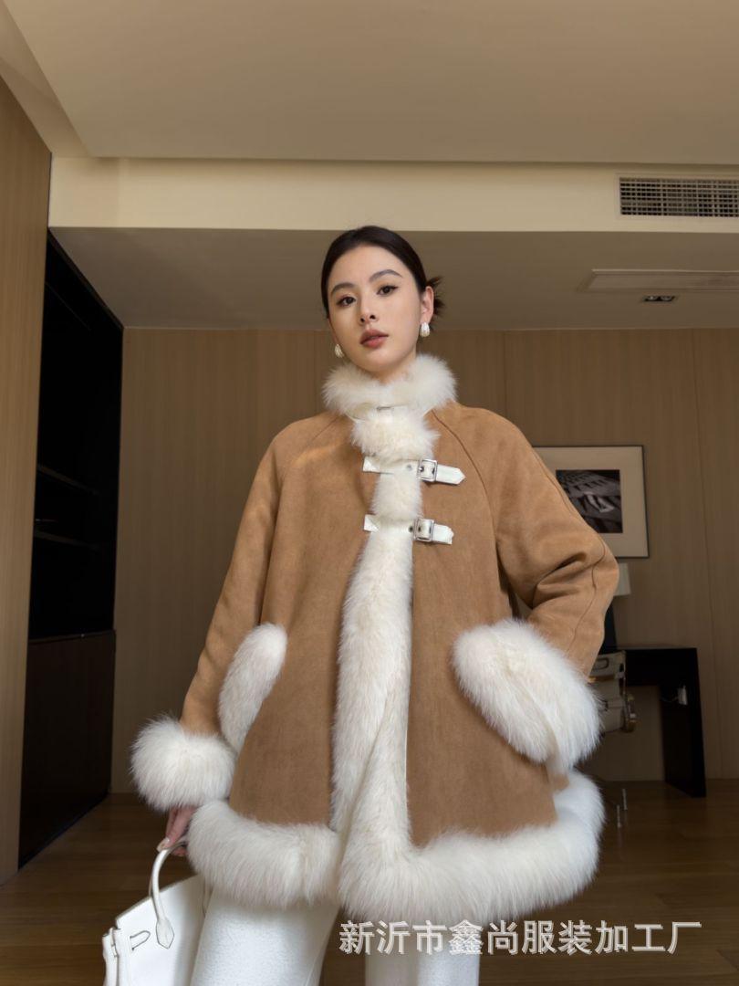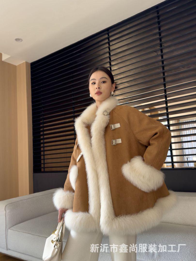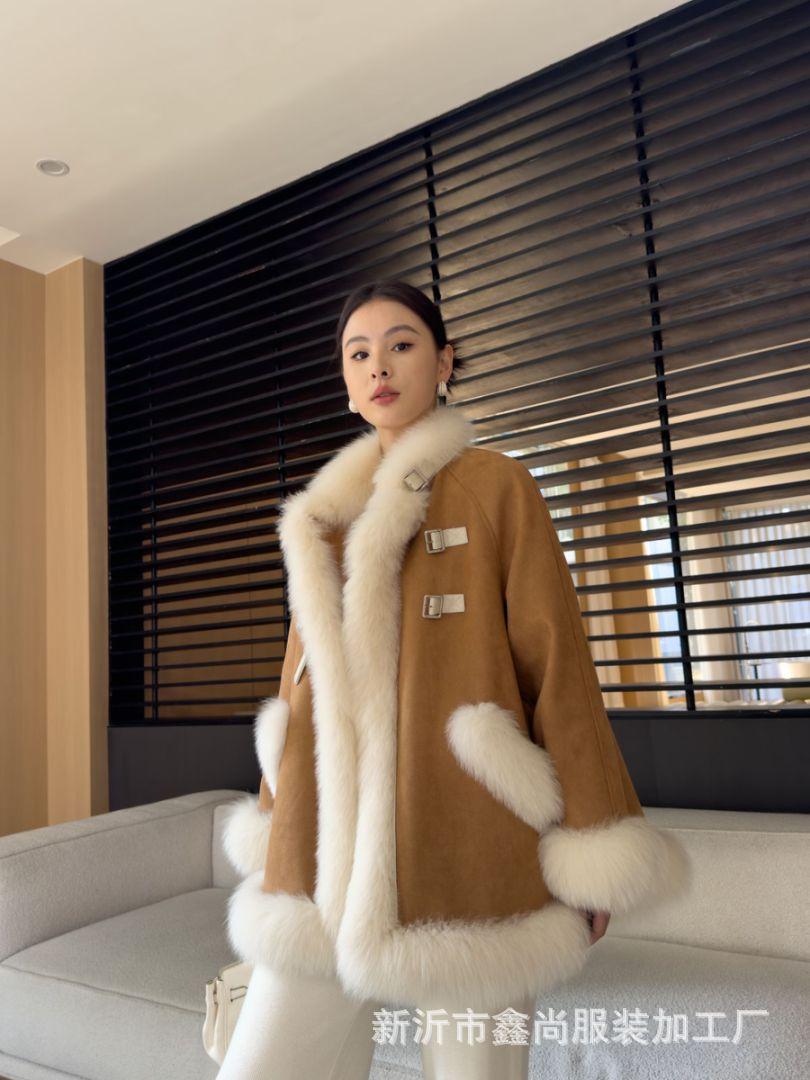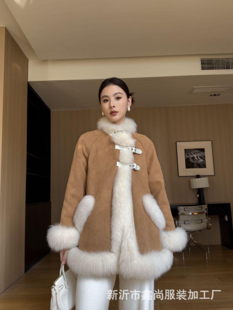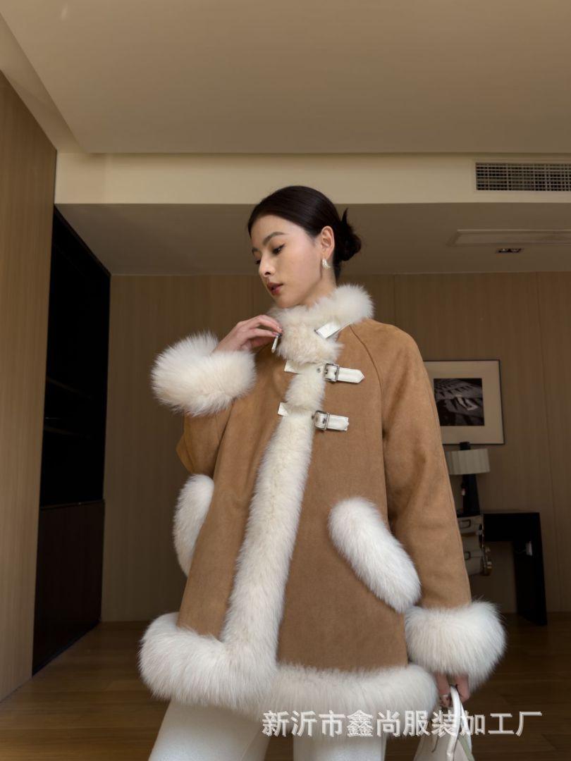 Invierno 2024 Nuevo Capa de Piel Sintética de Zorro para Mujer Estilo Coreano Chaqueta de Plumón de Pato Blanco Abrigo de Gamuza de Longitud Media