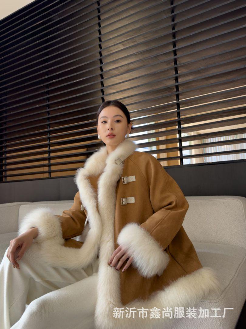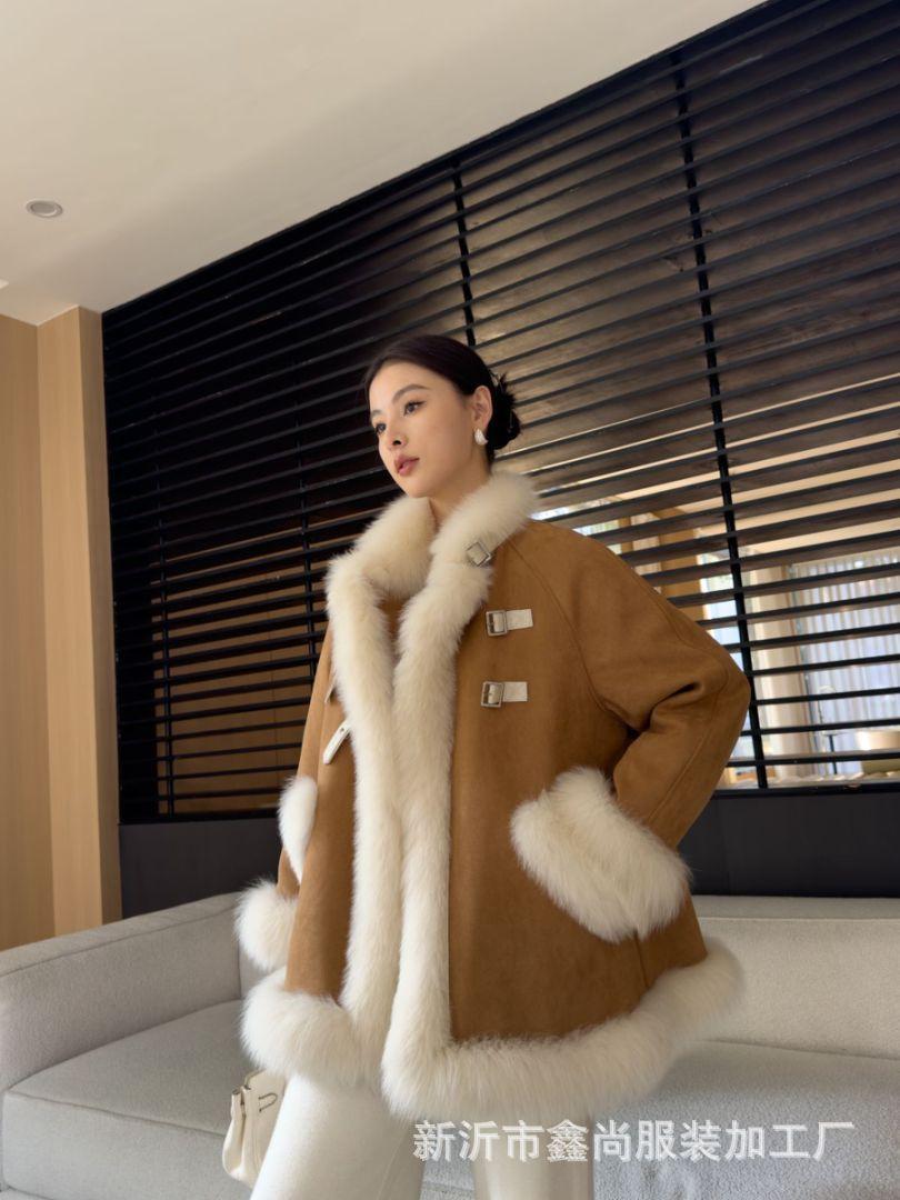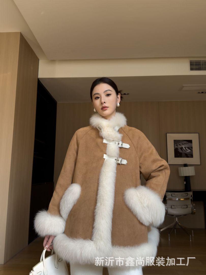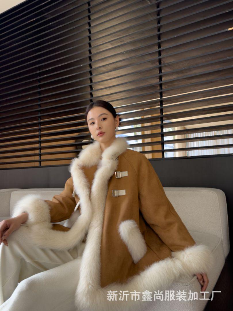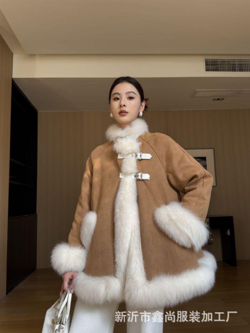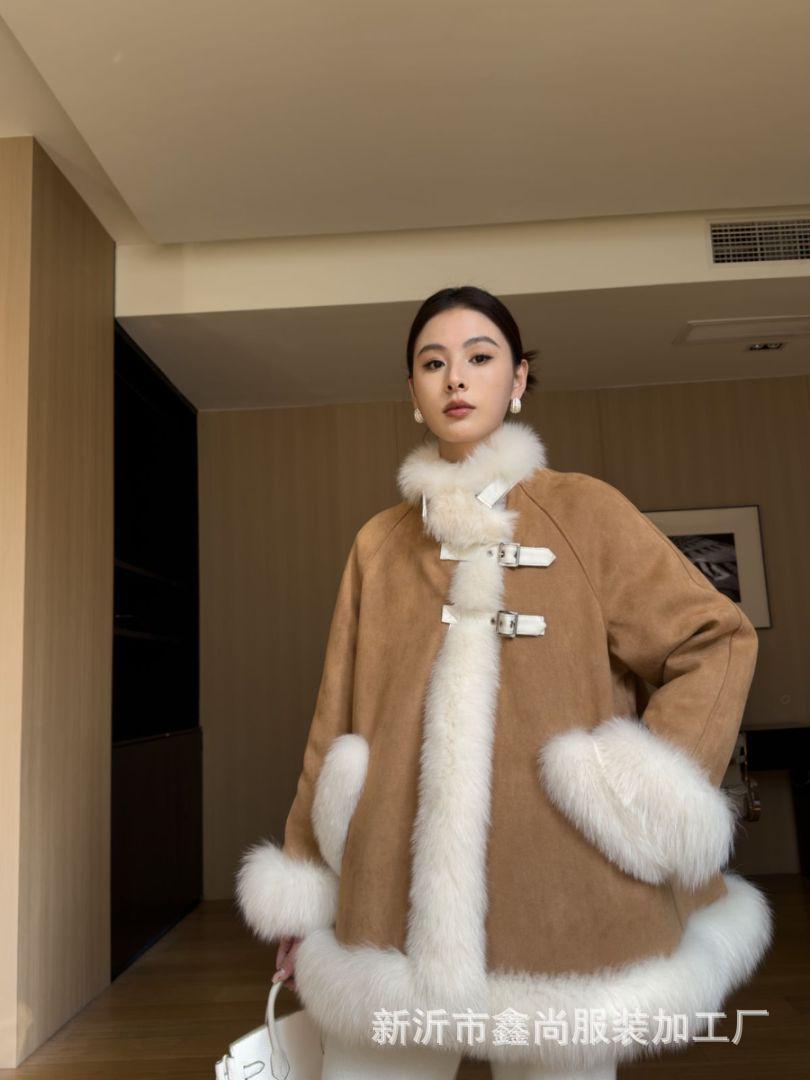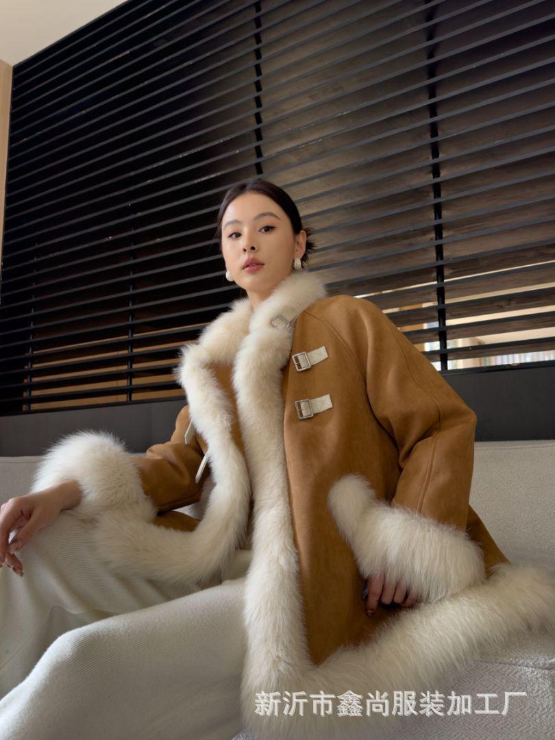 Invierno 2024 Nuevo Capa de Piel Sintética de Zorro para Mujer Estilo Coreano Chaqueta de Plumón de Pato Blanco Abrigo de Gamuza de Longitud Media