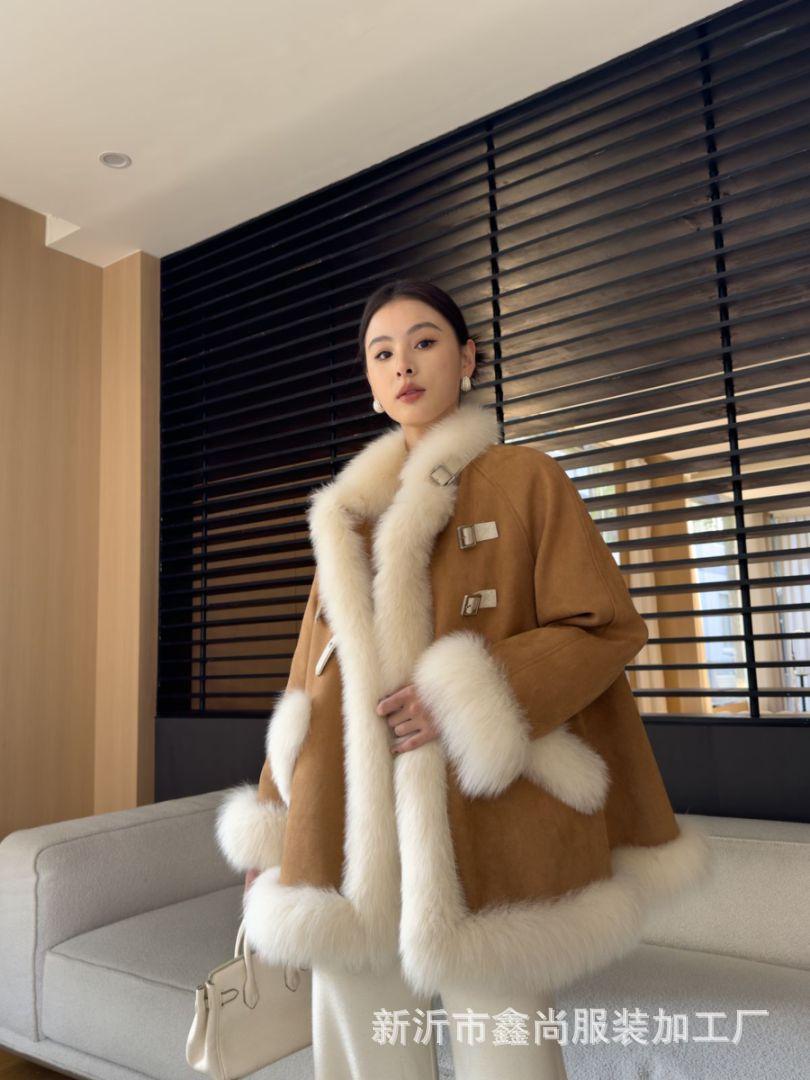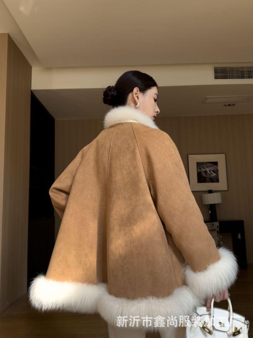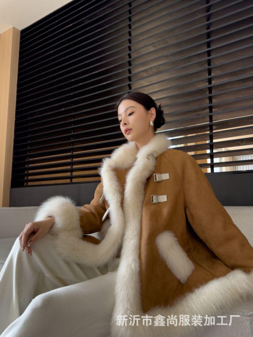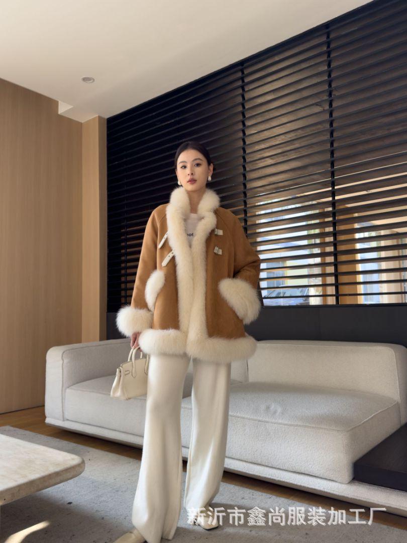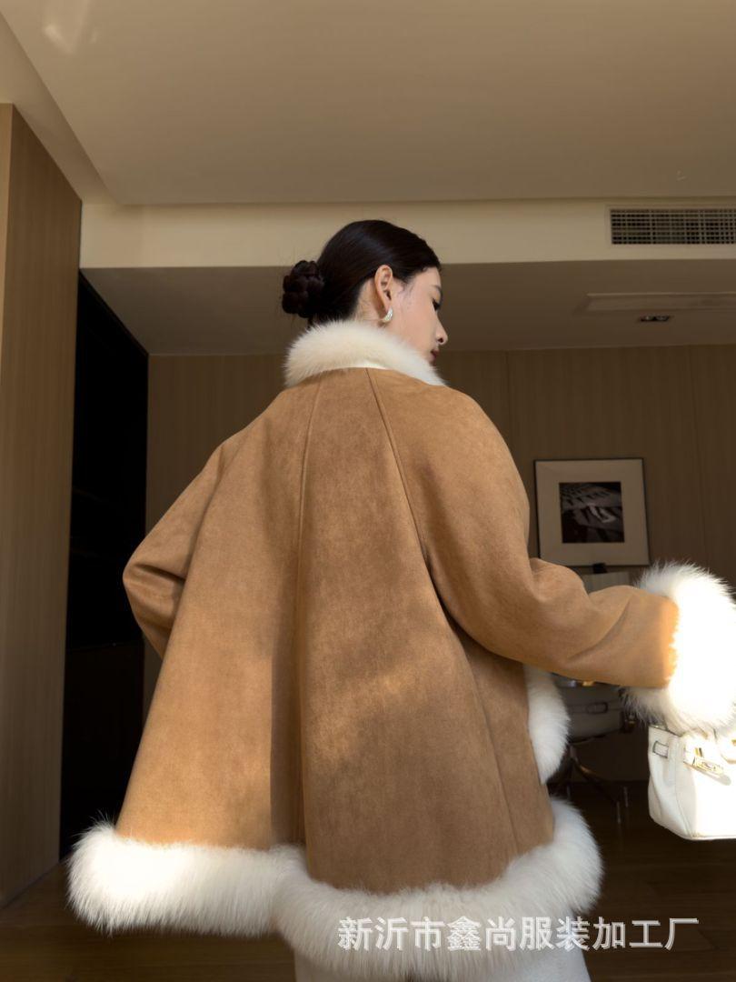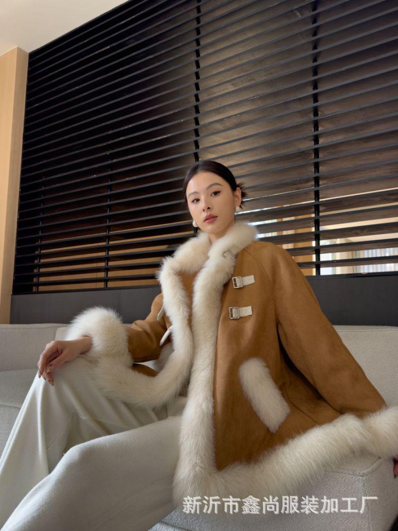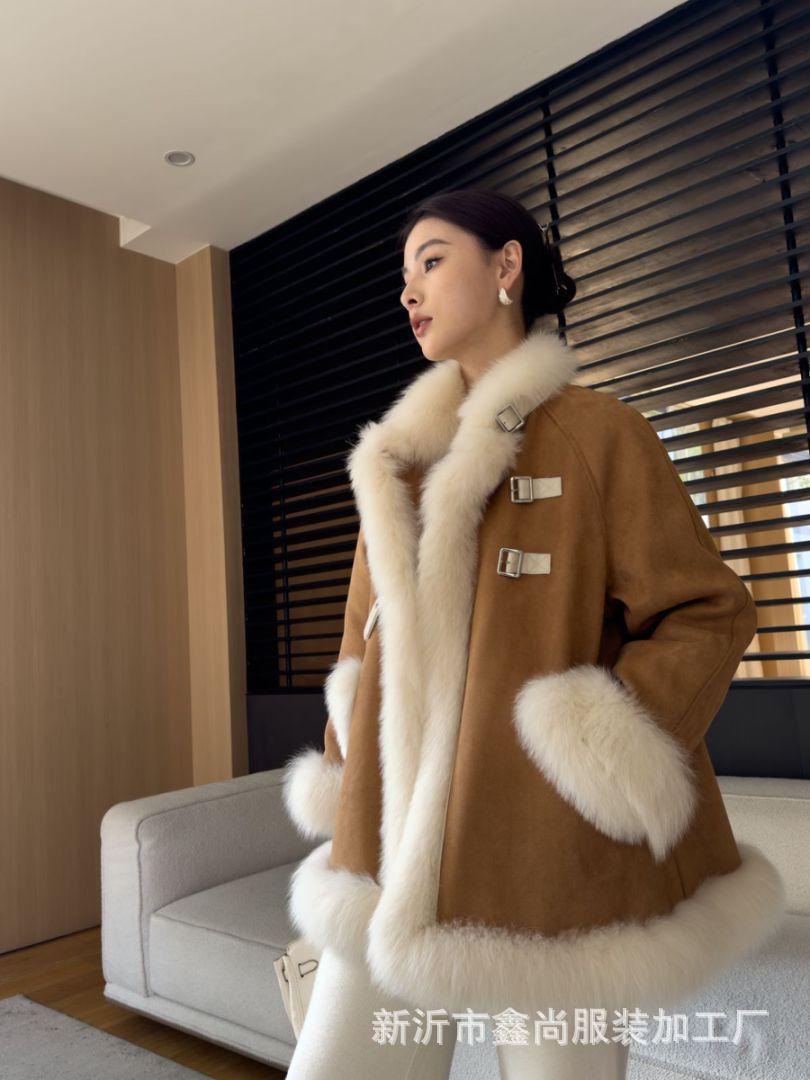 Invierno 2024 Nuevo Capa de Piel Sintética de Zorro para Mujer Estilo Coreano Chaqueta de Plumón de Pato Blanco Abrigo de Gamuza de Longitud Media