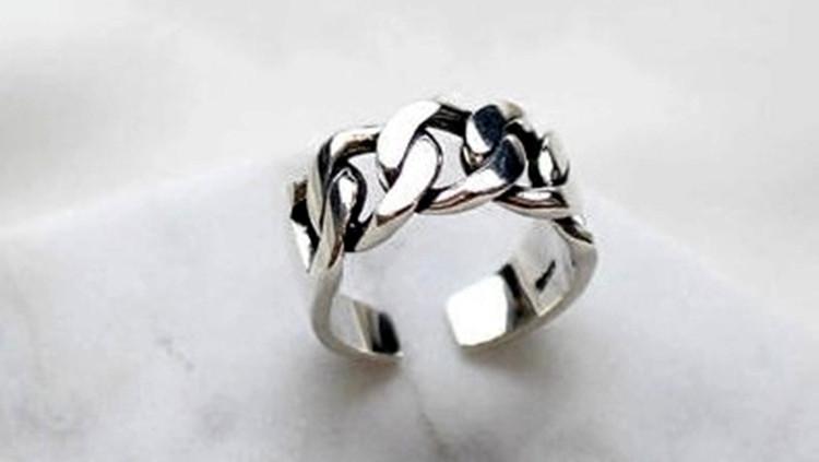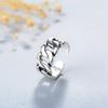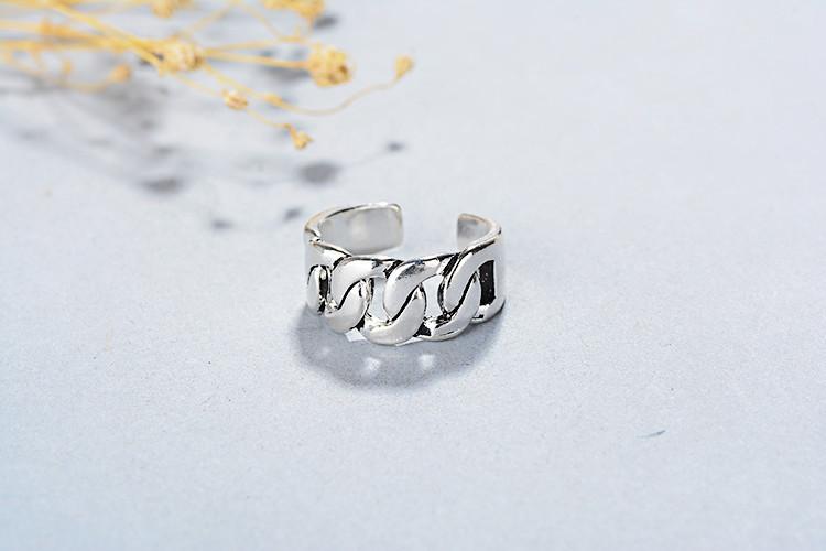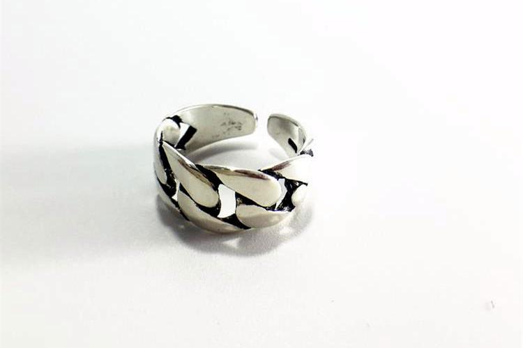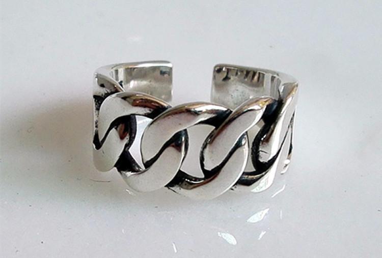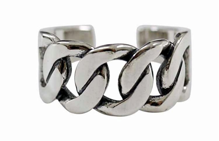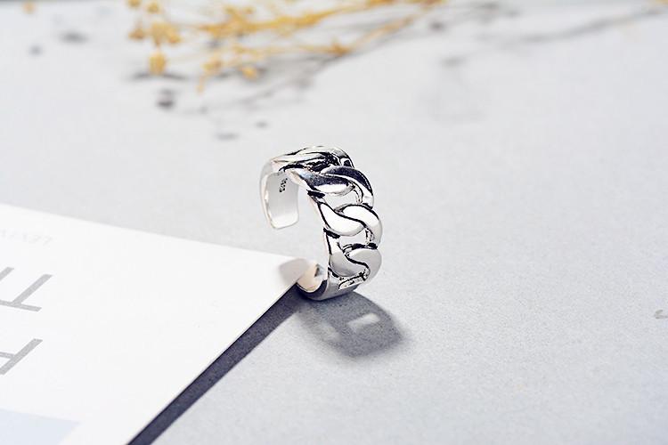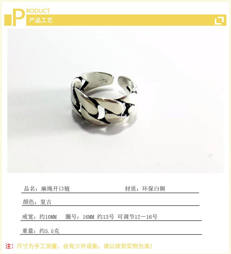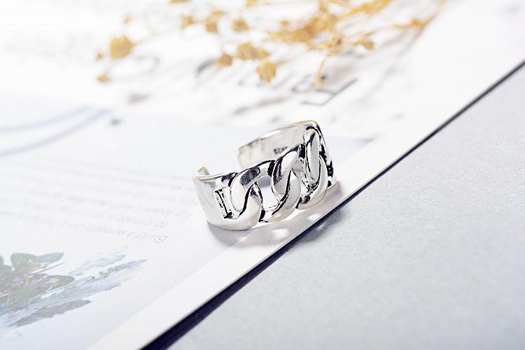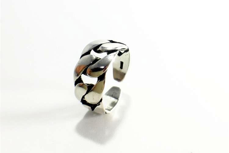 Anillo de Cadena Retro de Personalidad de Moda Anillo Simple Envejecido de Cara Ancha Anillo de Cadena Gruesa Abierto Joyería Plateada para Mujer