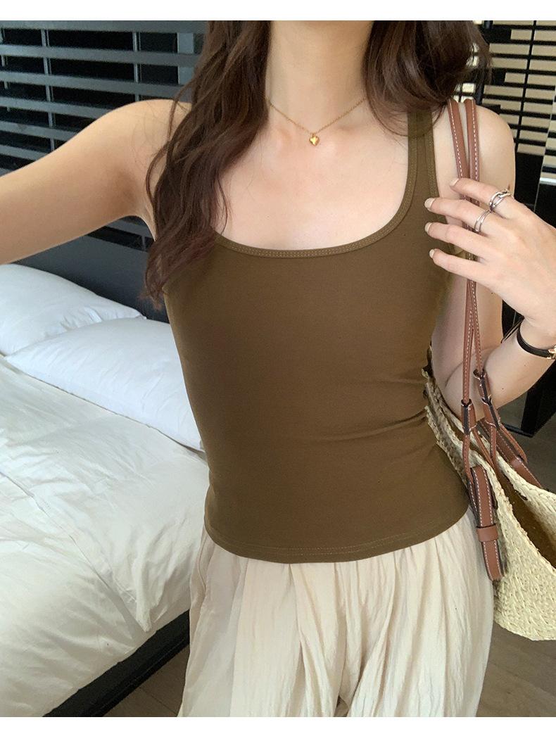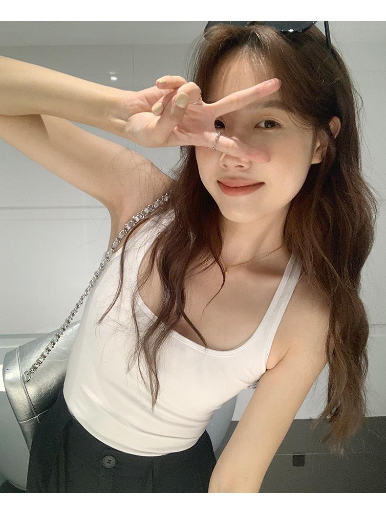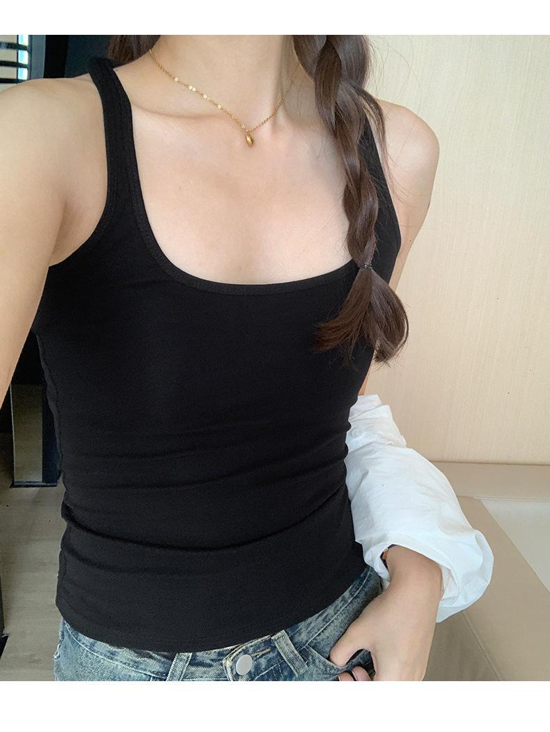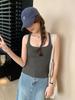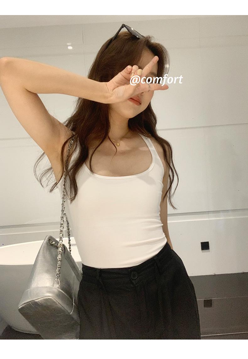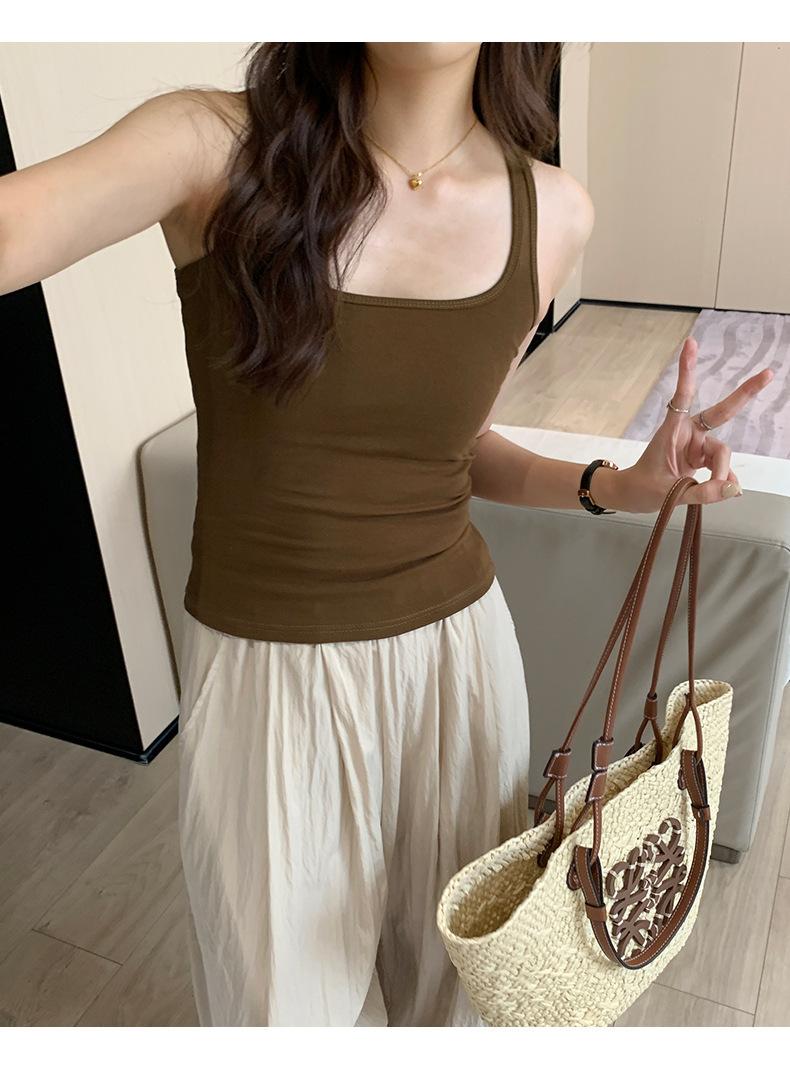 Camisola Colorida de Cuello Cuadrado Ropa Interior para Mujer Verano Nueva Ajustada Exterior Top sin Mangas Corto Chica Sexy Espalda Hermosa