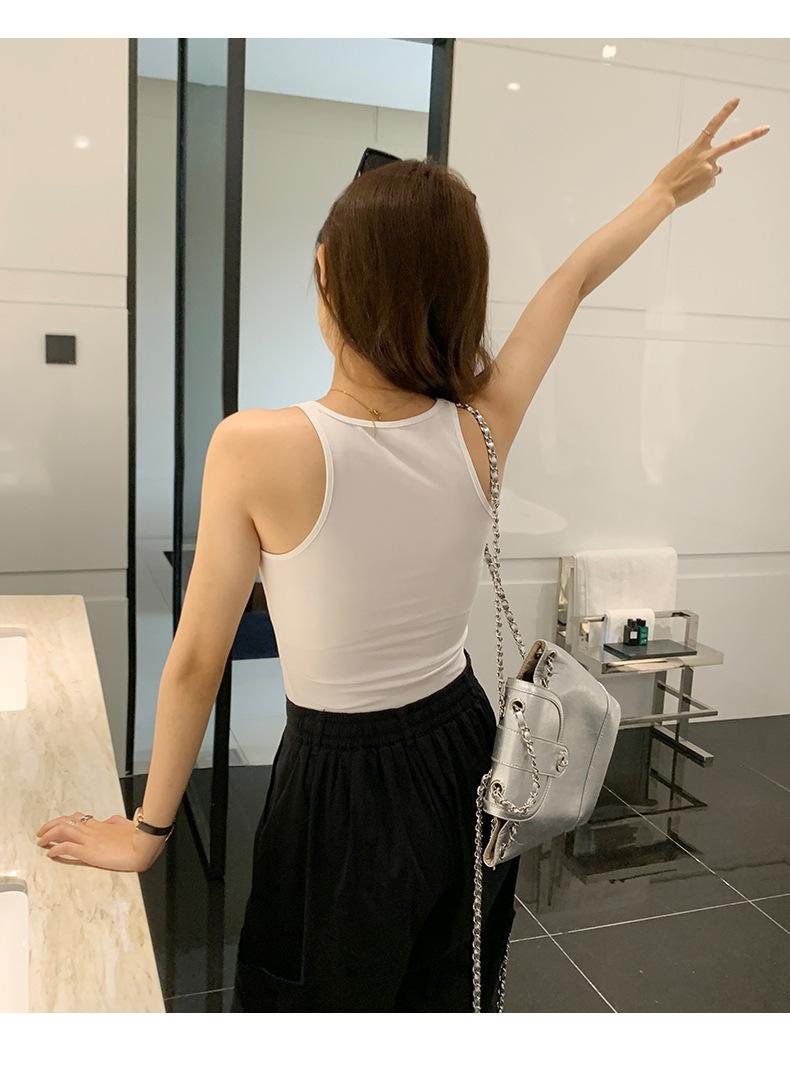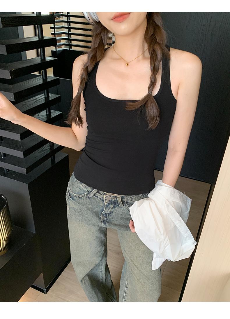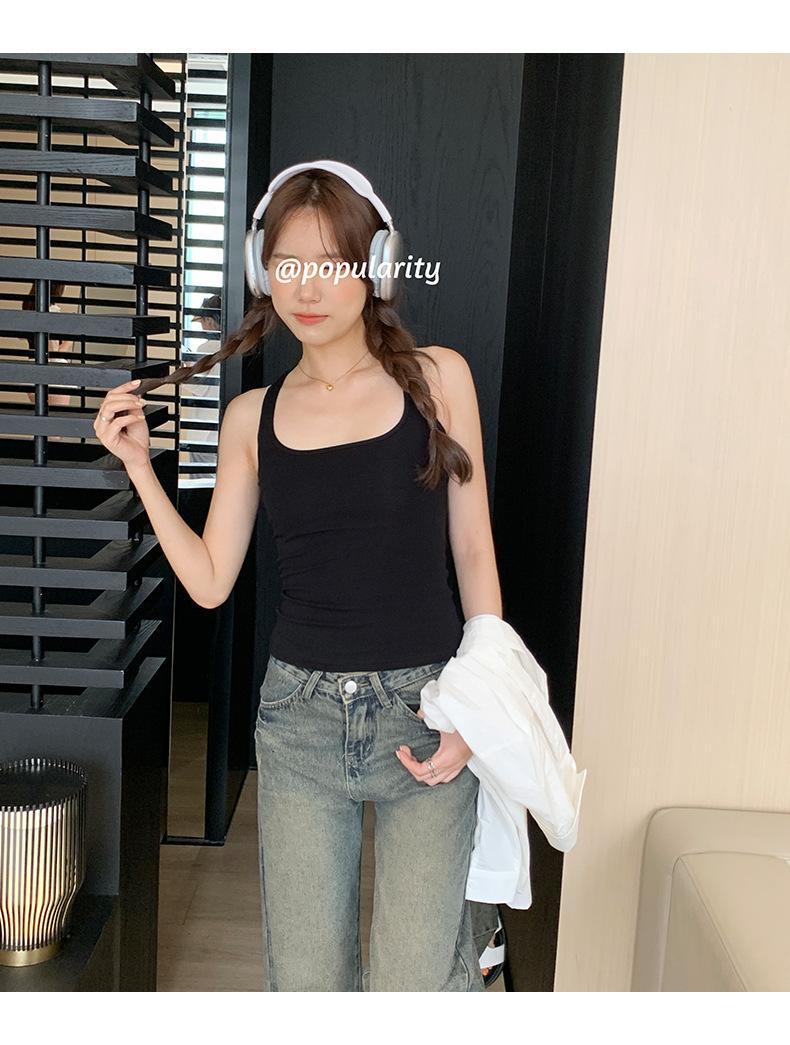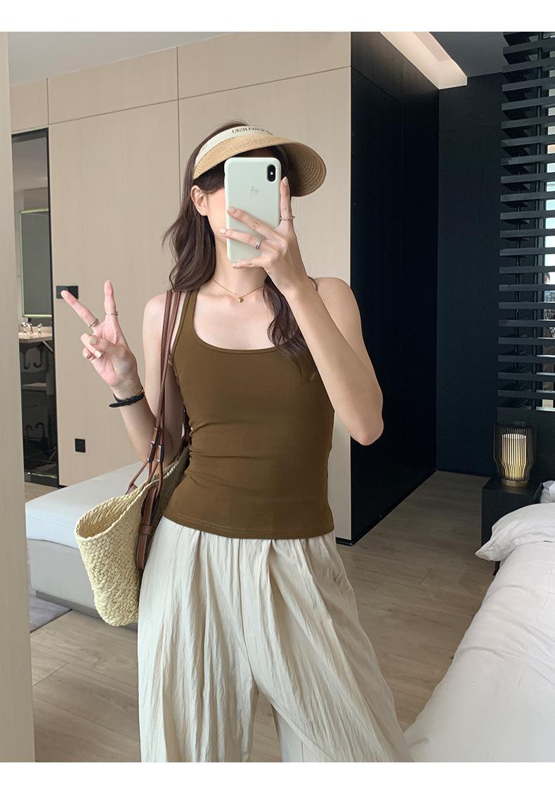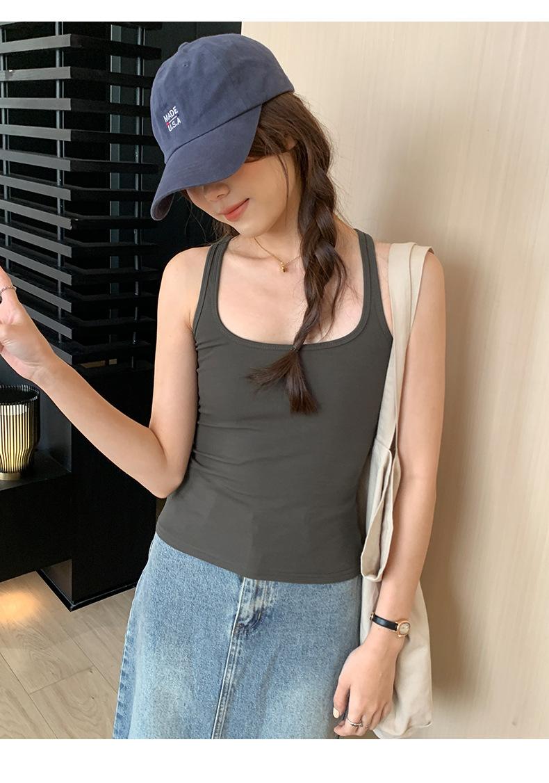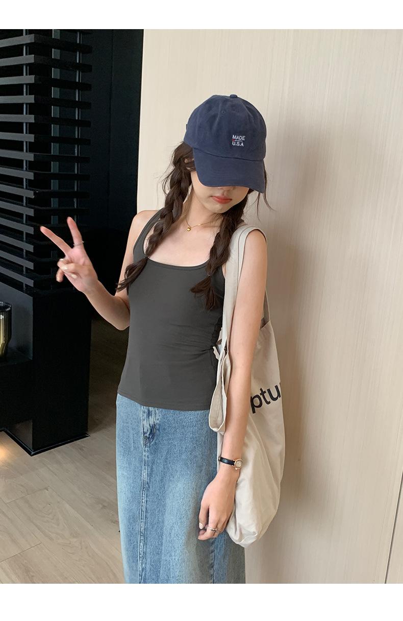 Camisola Colorida de Cuello Cuadrado Ropa Interior para Mujer Verano Nueva Ajustada Exterior Top sin Mangas Corto Chica Sexy Espalda Hermosa