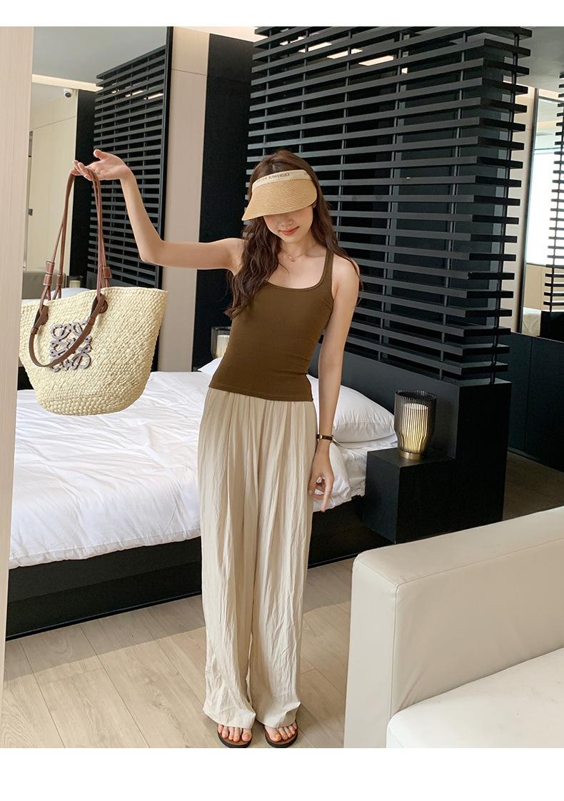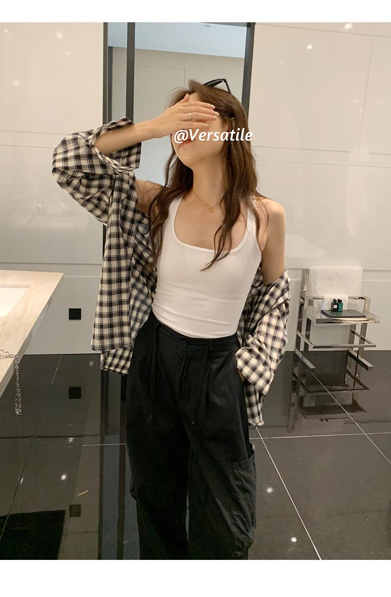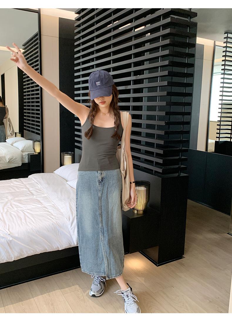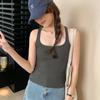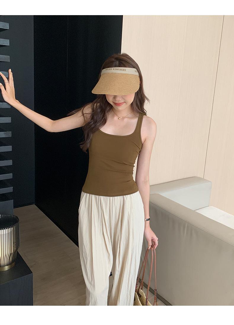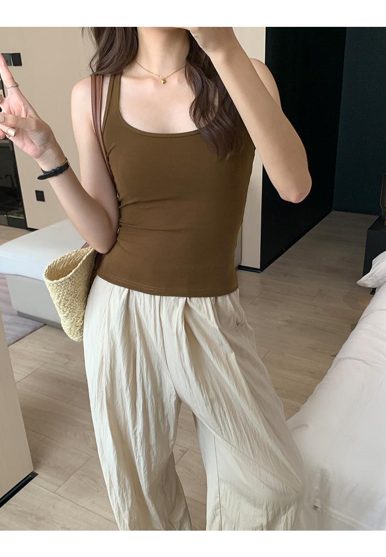Camisola Colorida de Cuello Cuadrado Ropa Interior para Mujer Verano Nueva Ajustada Exterior Top sin Mangas Corto Chica Sexy Espalda Hermosa
