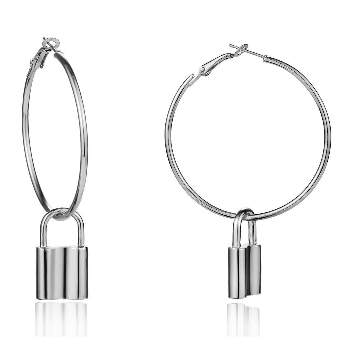 Gold lock earrings, White K lock earrings, Lock necklace gold, Lock necklace White K