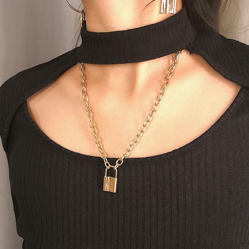 Europa y Estados Unidos joyería transfronteriza personalizada collar con colgante de candado para fotos callejeras retro simple viento frío cadena para clavícula mujeres