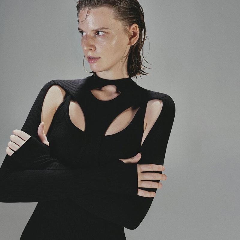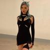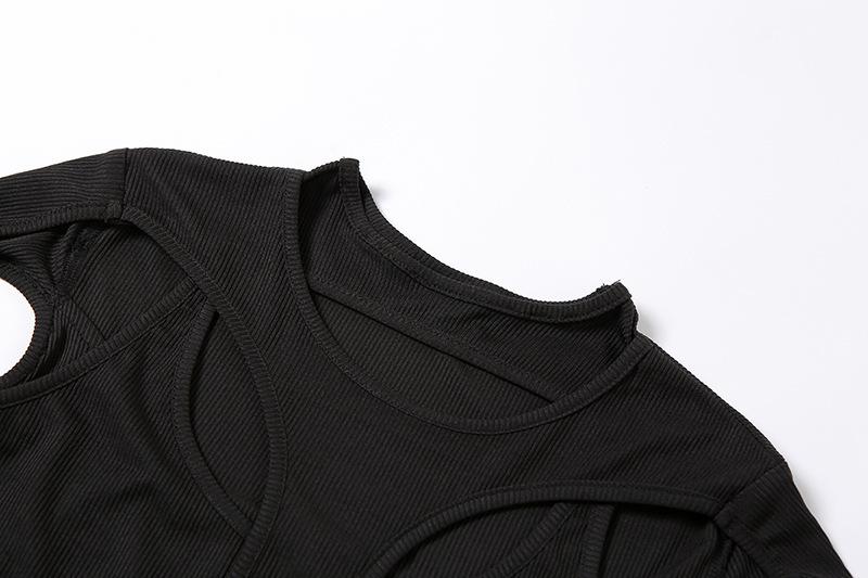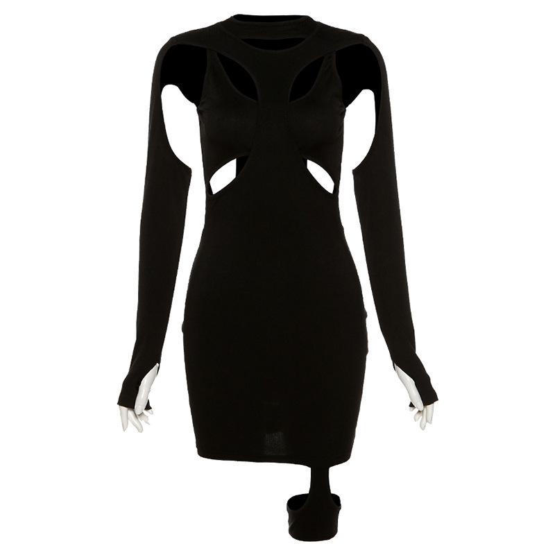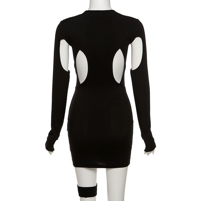 2024 Verano Nuevo Ropa de Mujer Estilo Europeo y Americano Sexy Calado Ajustado Cuello Redondo Manga Larga Diseño con Cadera Vestido Mujer