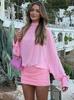 Ropa de Mujer Europea y Americana 2025 Principios de Otoño Nueva Moda Sexy Gasa Transparente Empalmado Fruncido Vestido de Manga Larga Tendencia Mayoreo