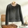 Otoño e Invierno 2025 Abrigo Pequeño de Lana Estilo Pequeño Fragante Abrigo de Lana Color Puro Bolsillo con Solapa Pantalones Top Corto de Un Solo Botón para Mujer