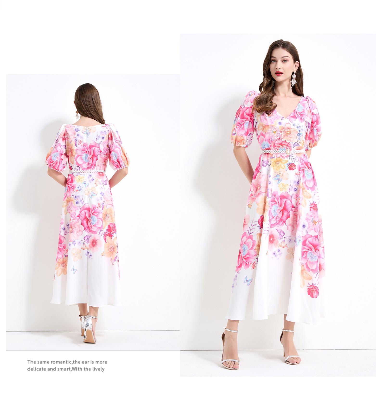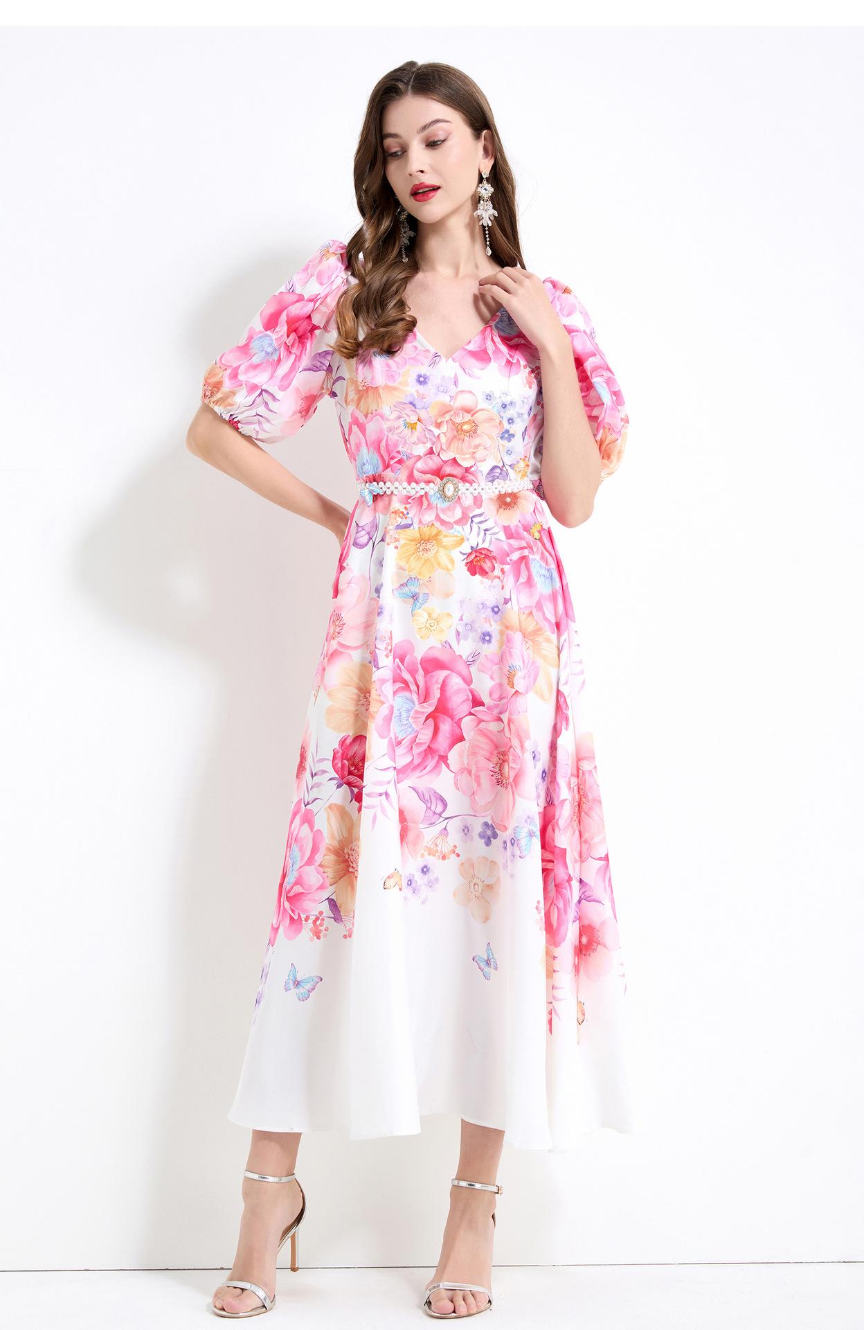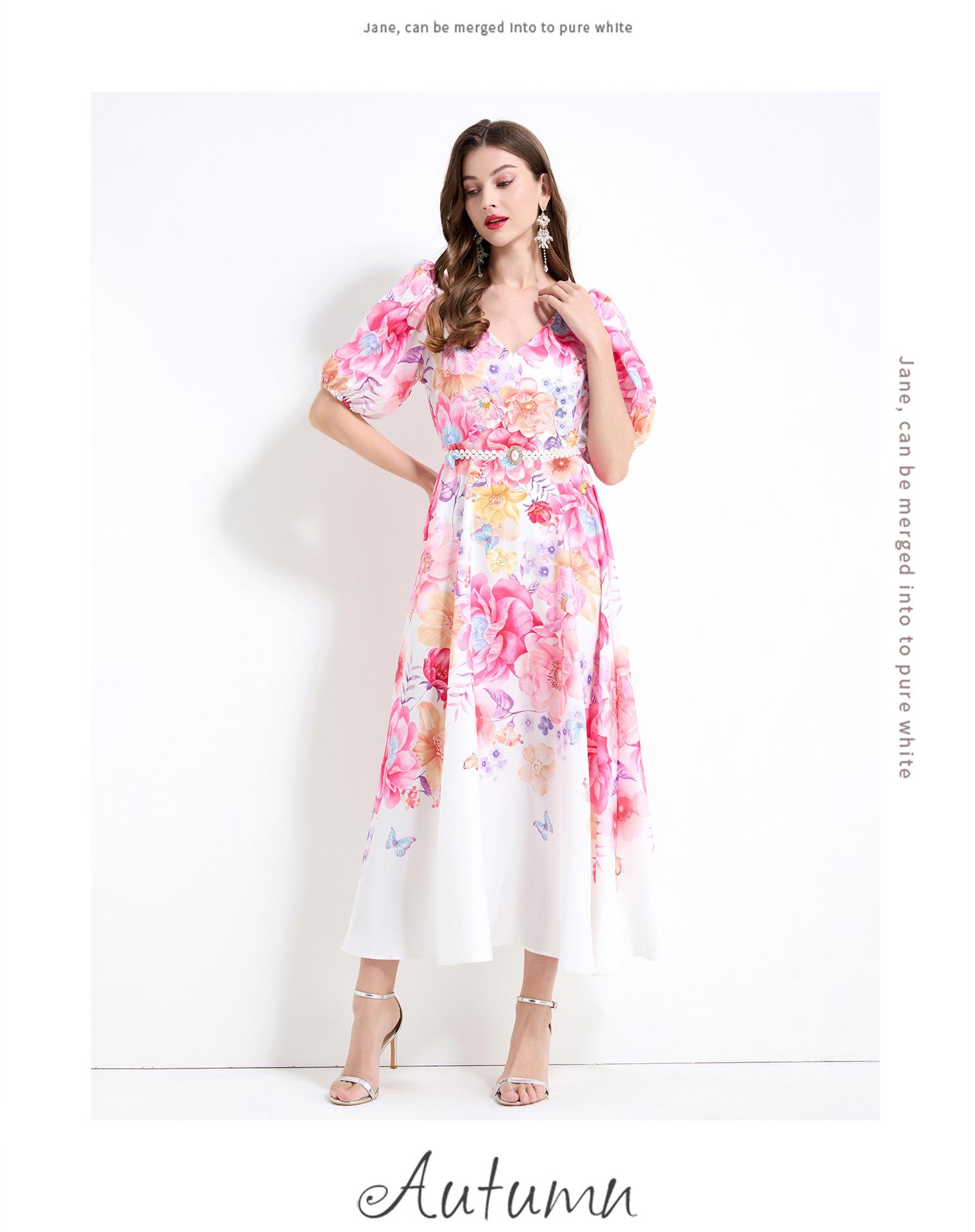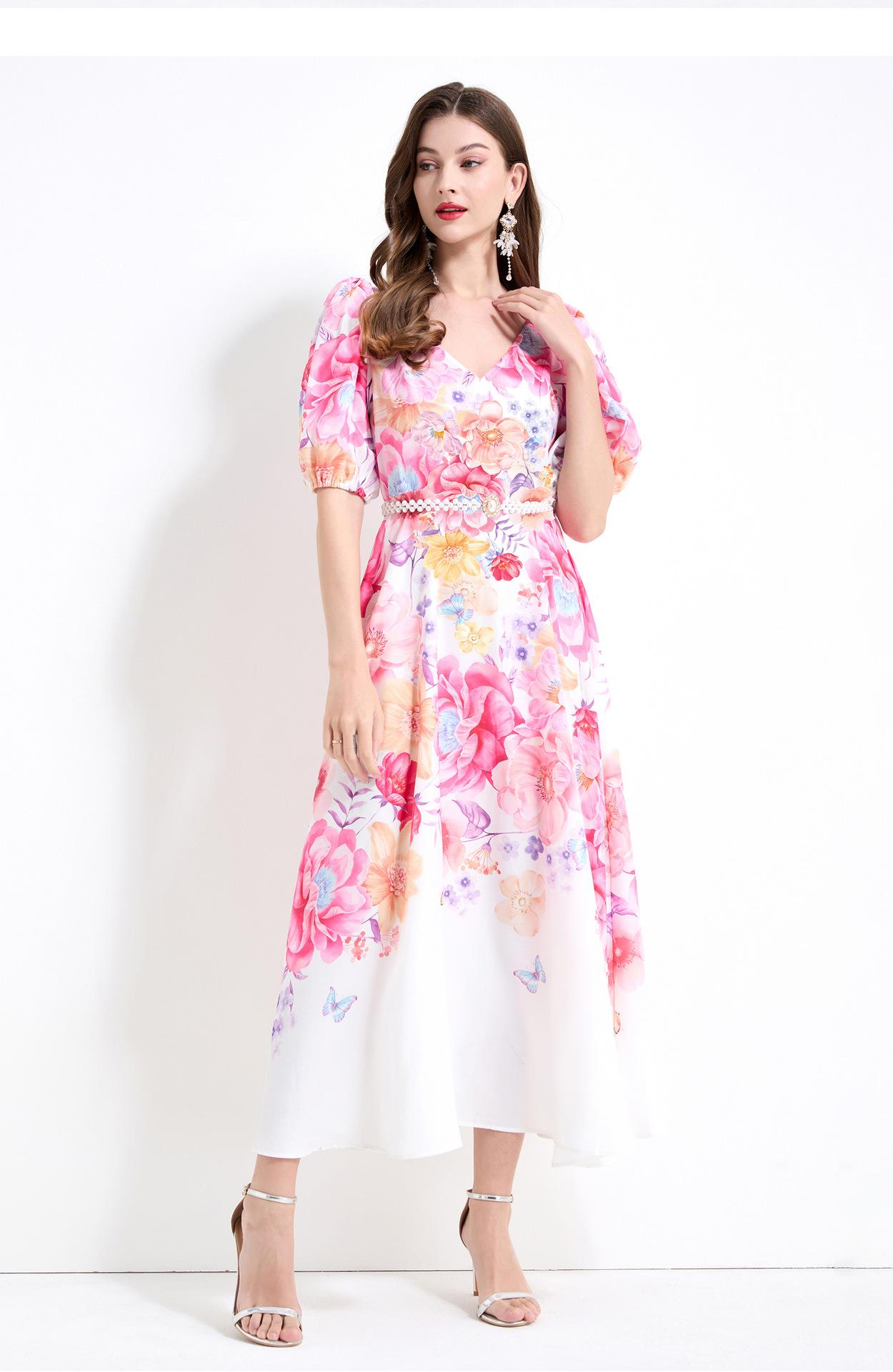 Comercio Exterior Ropa Europea y Americana 2025 Amazon Primavera Nueva Moda Estampado Estilo Resort Costero Falda con Volantes en la Cintura