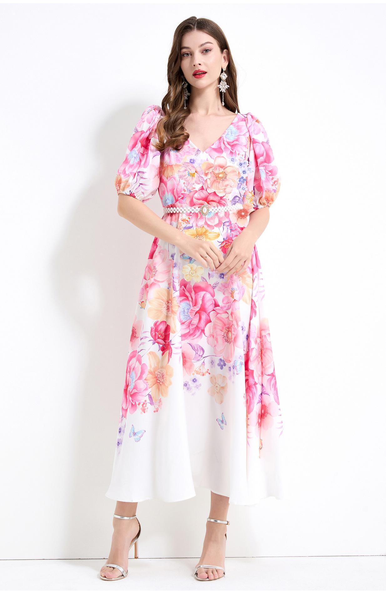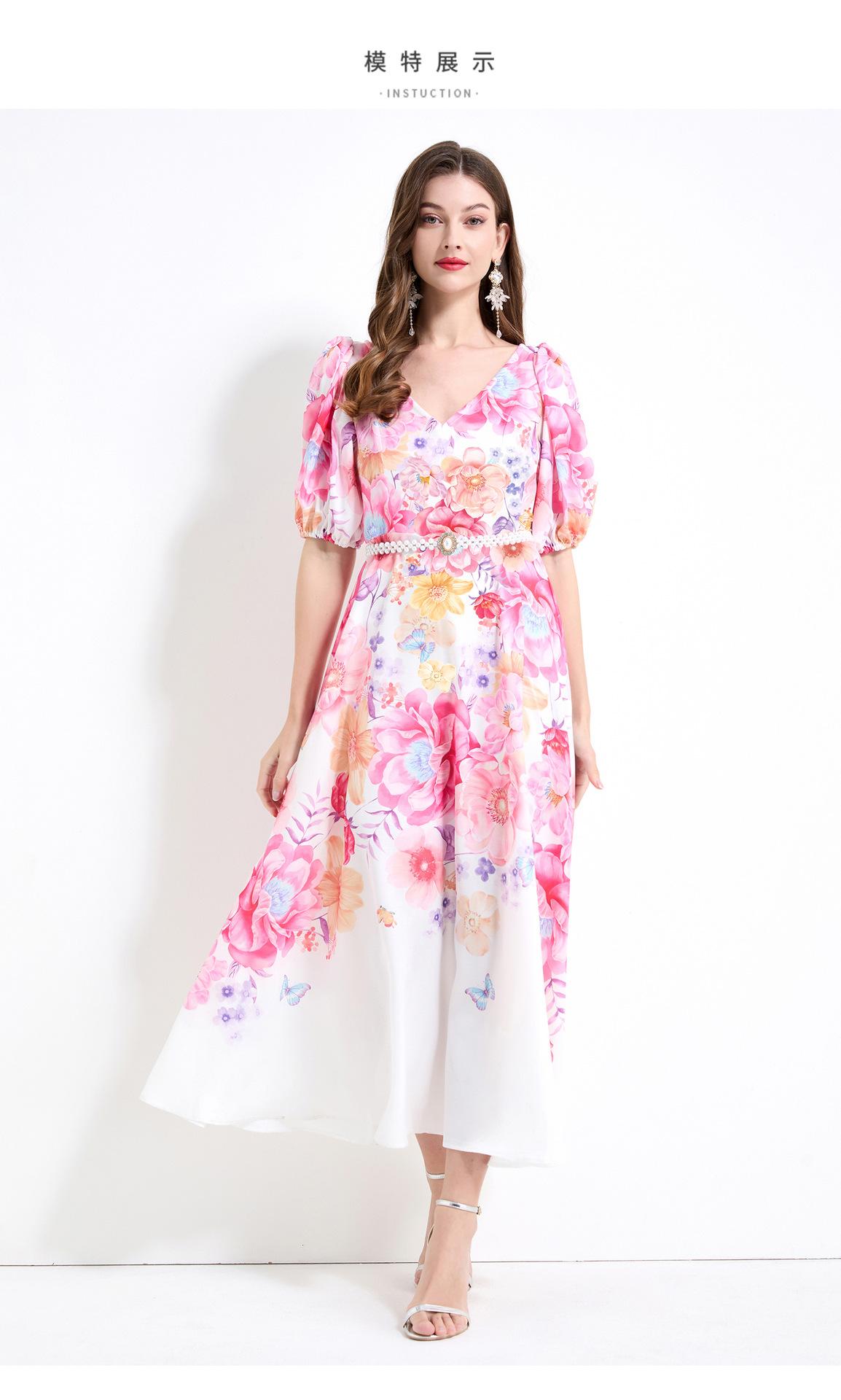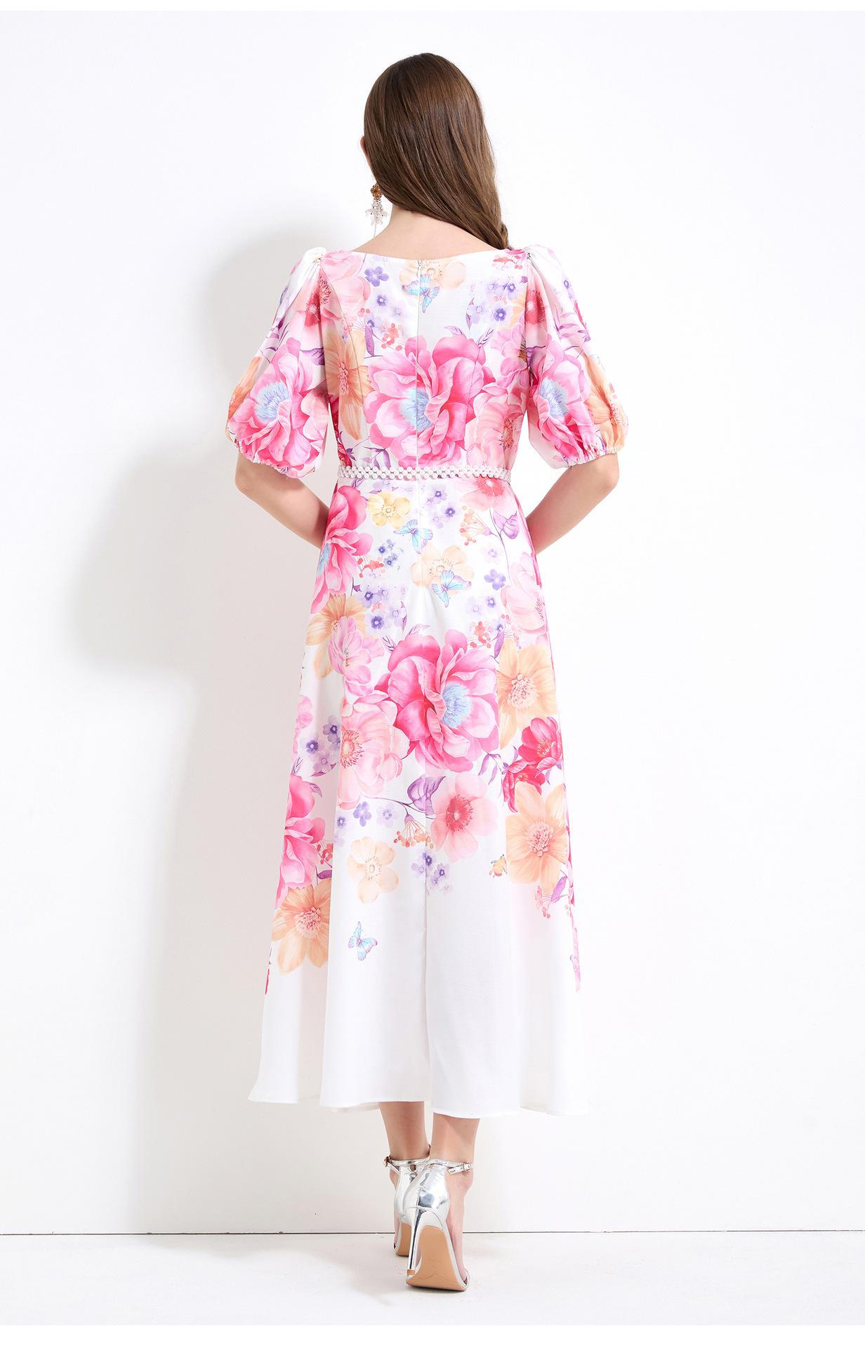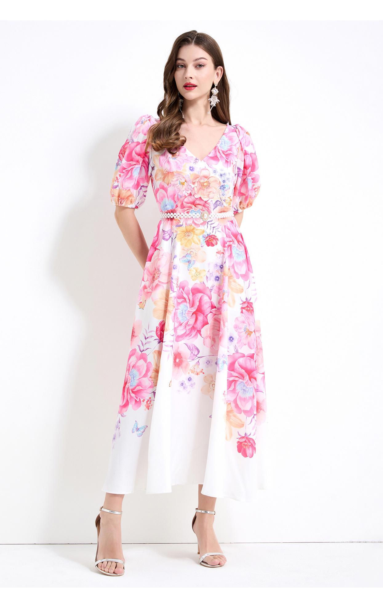 Comercio Exterior Ropa Europea y Americana 2025 Amazon Primavera Nueva Moda Estampado Estilo Resort Costero Falda con Volantes en la Cintura