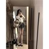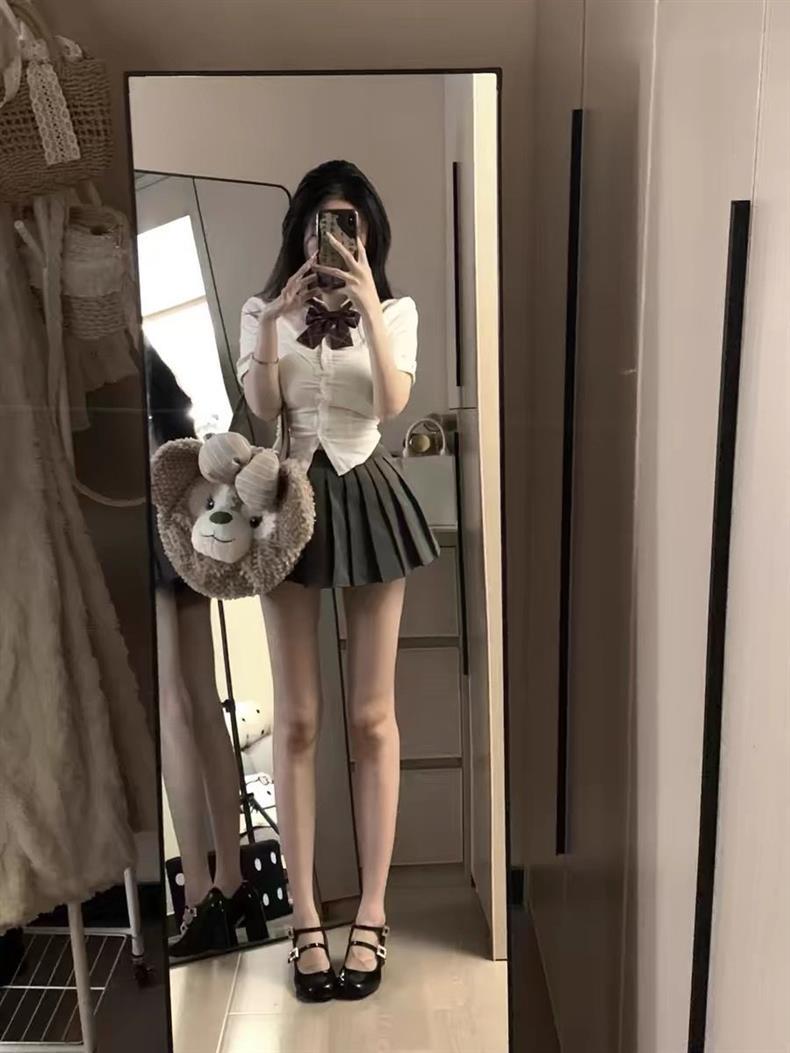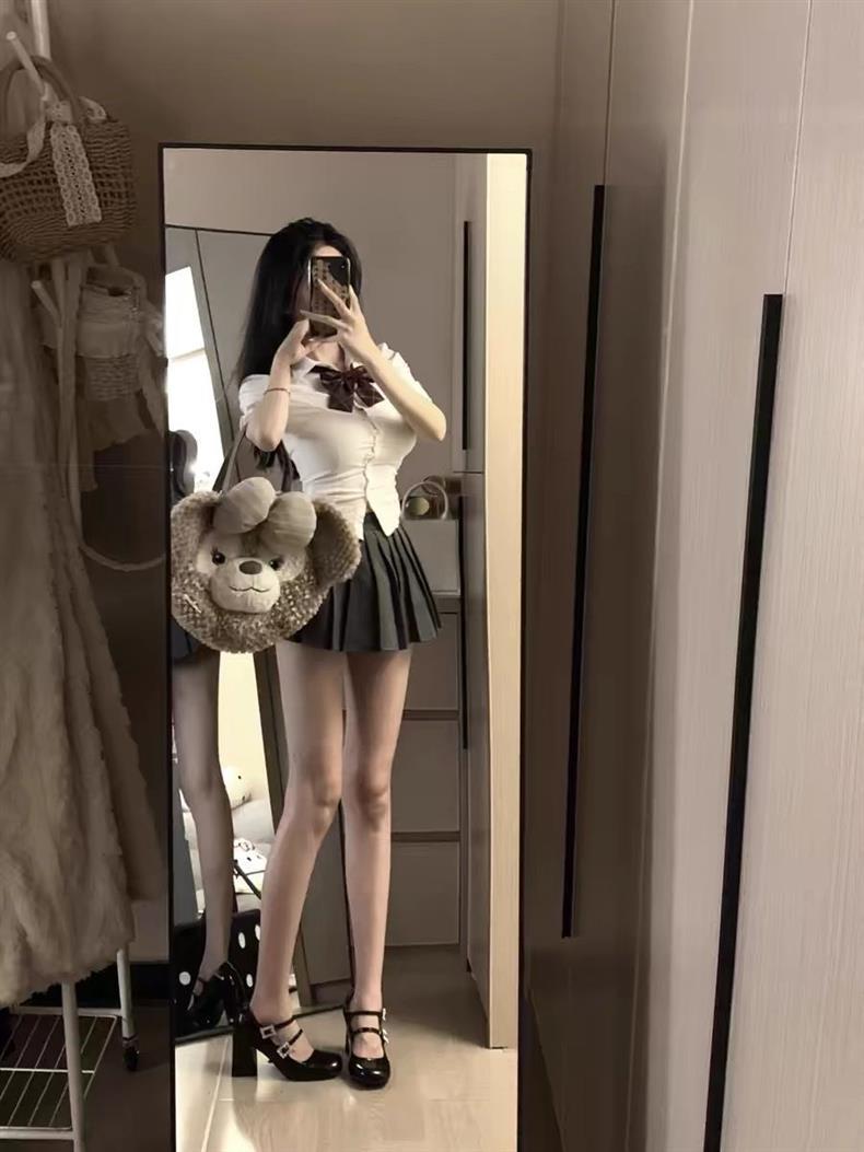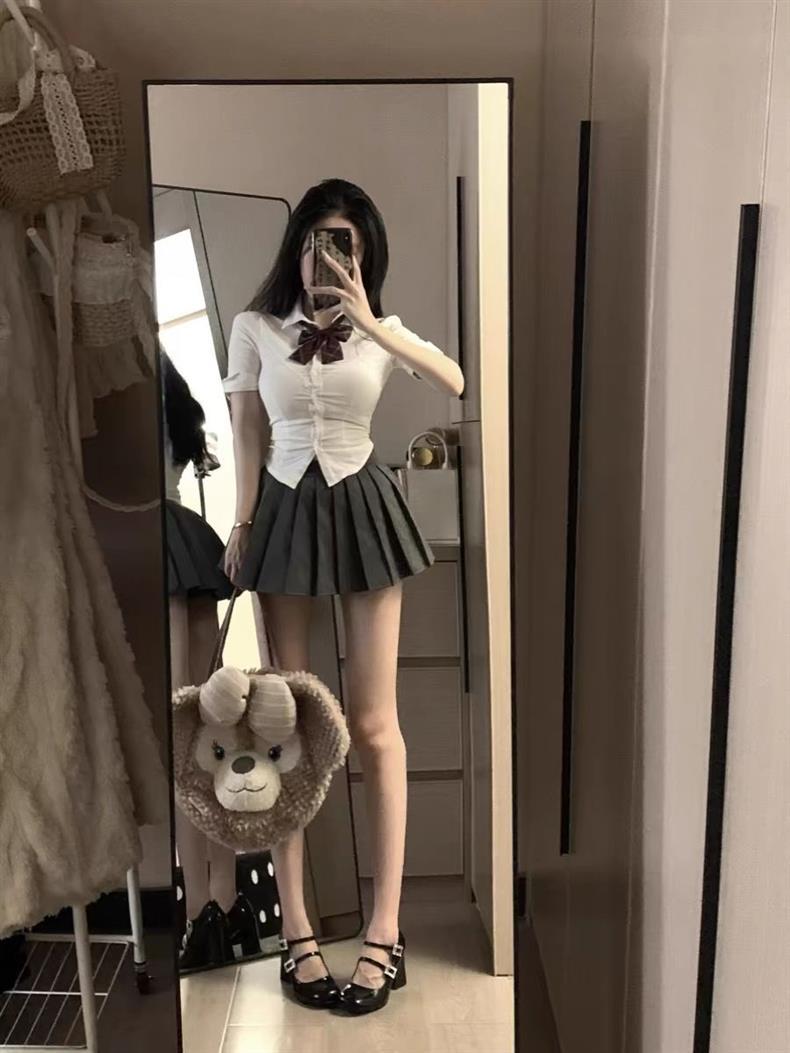 3-piece set/small v shirt + gray skirt + shahua bow tie