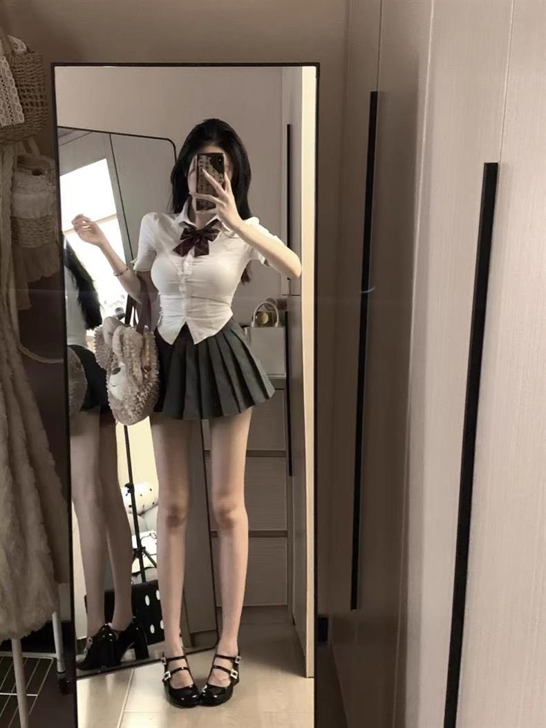 Uniforme JK Camisa Entallada Falda Plisada Traje Verano Mujer Deseo Puro Top Manga Corta Estilo Universitario Ropa Spice Girl