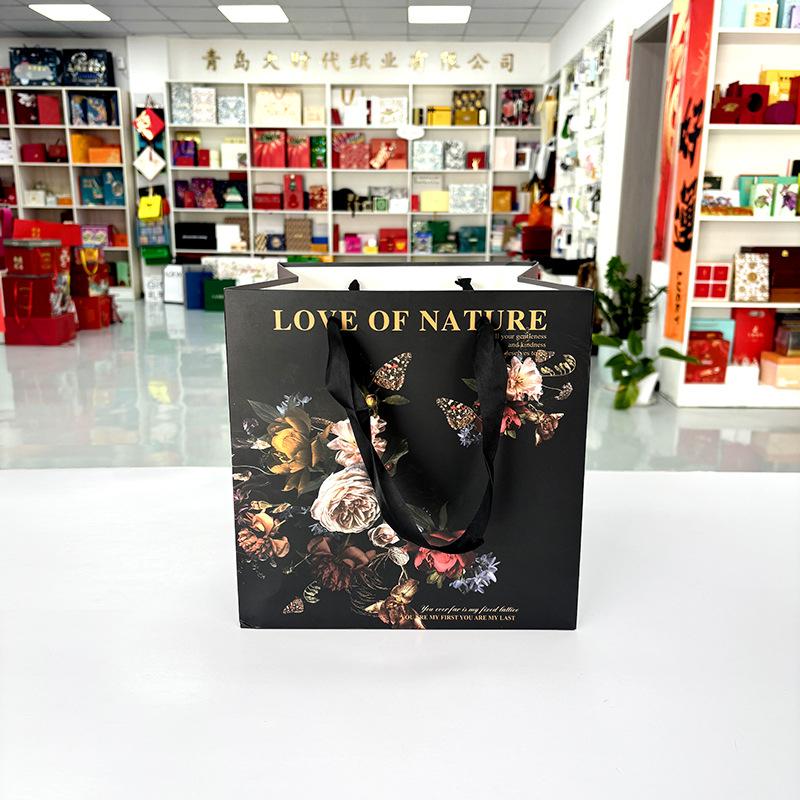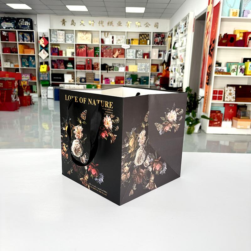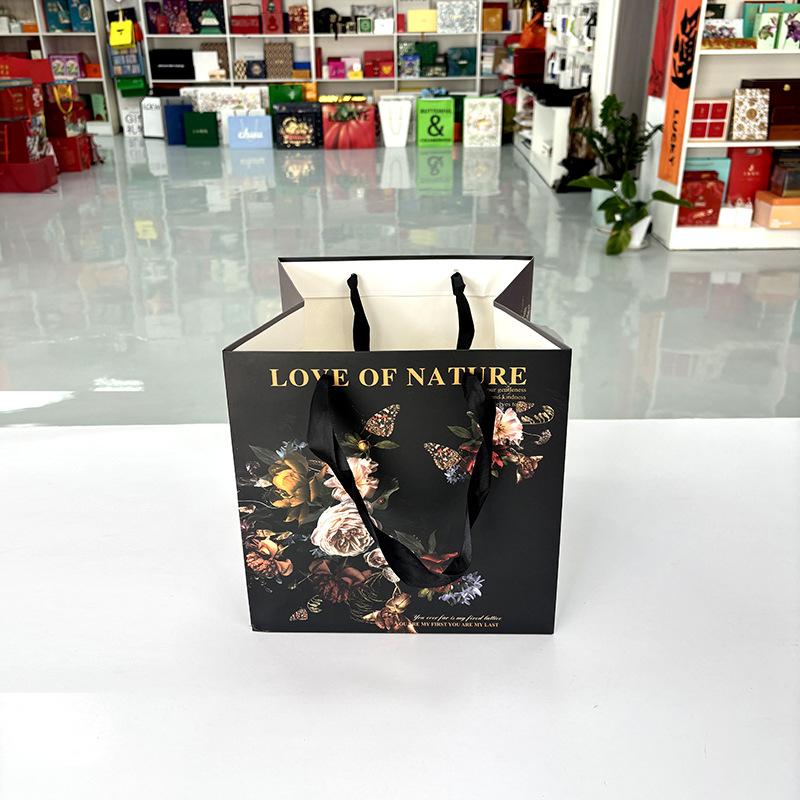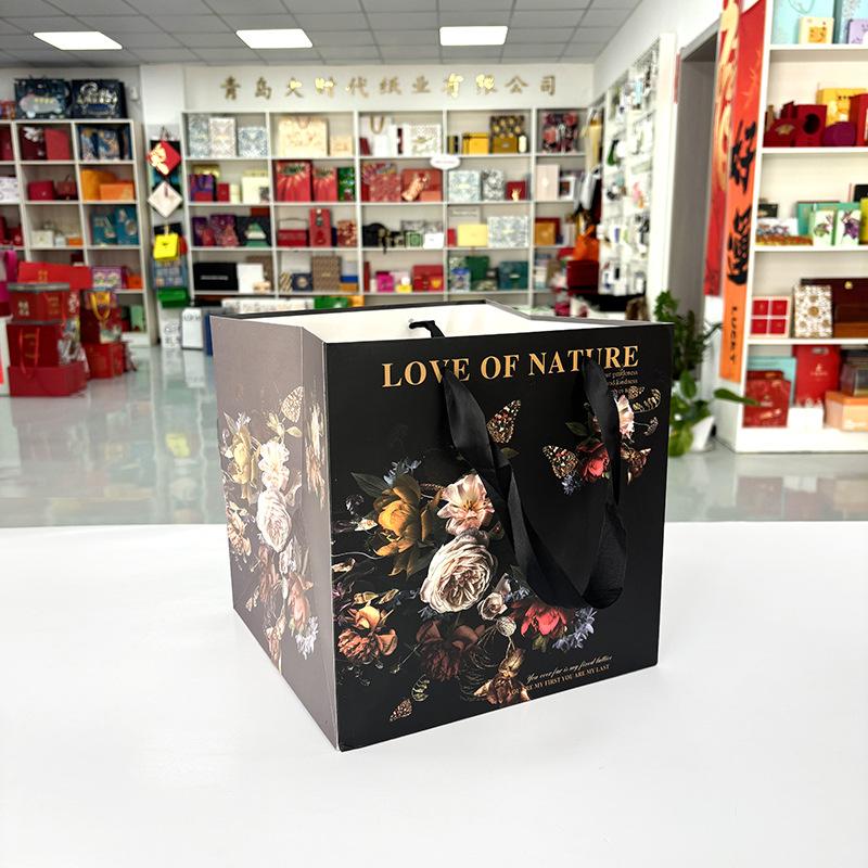Black portable paper bag; 20*20*18; white cardboard, Paper bag;20*20*18;white cardboard