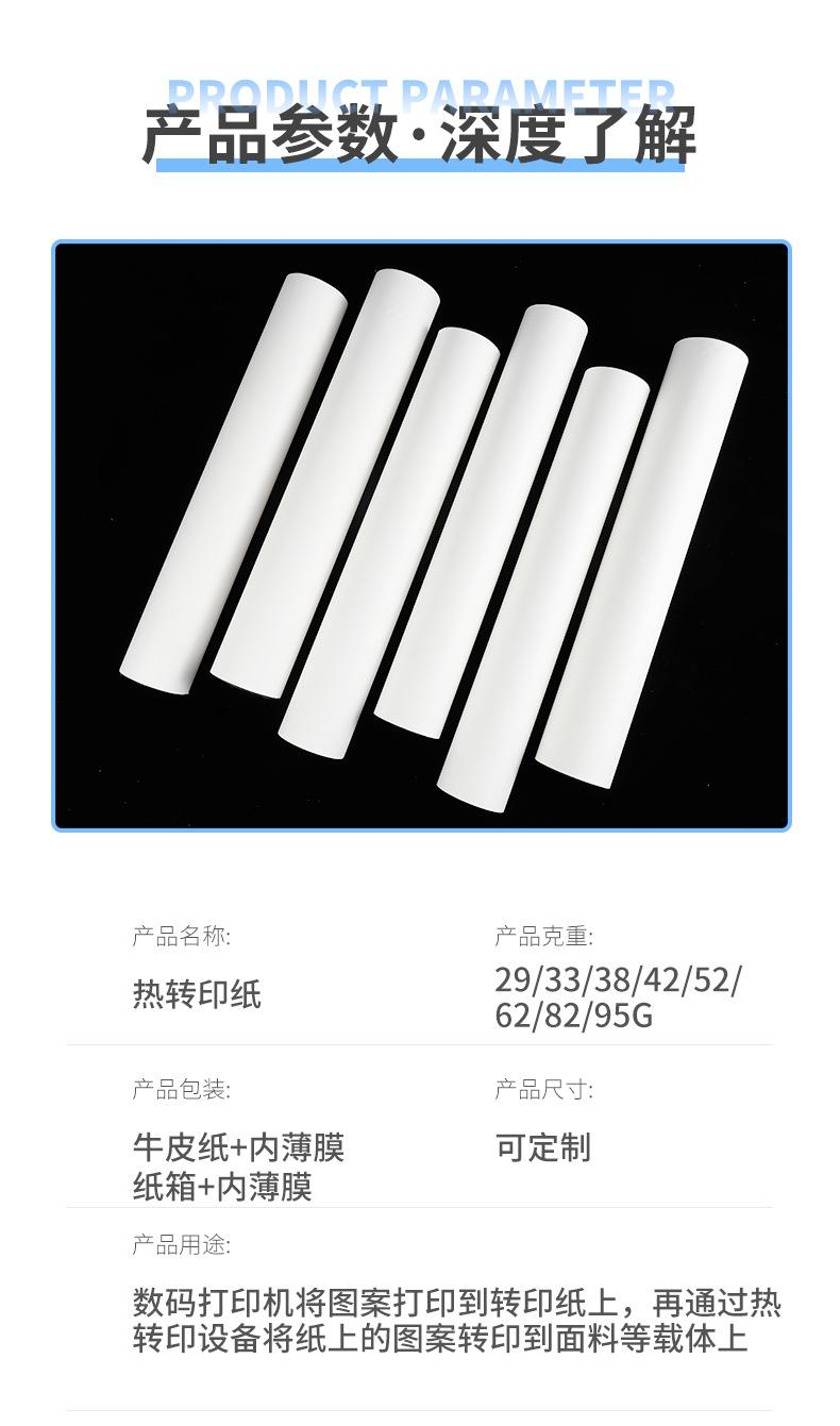 Papel de transferencia de calor en caliente de muestra puerta 29-100g papel de sublimación