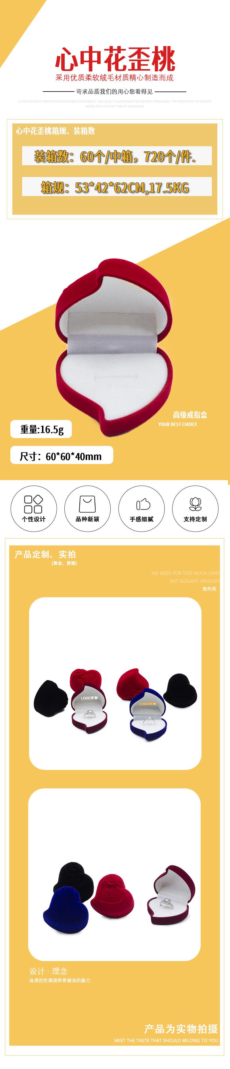 Caja de Anillo de Flor Corazón de Durazno Torcido Caja de Anillo de Par Corazón de Durazno Caja Flocking Caja para Aretes de Boda Caja para Joyas Caja para Almacenar Joyas