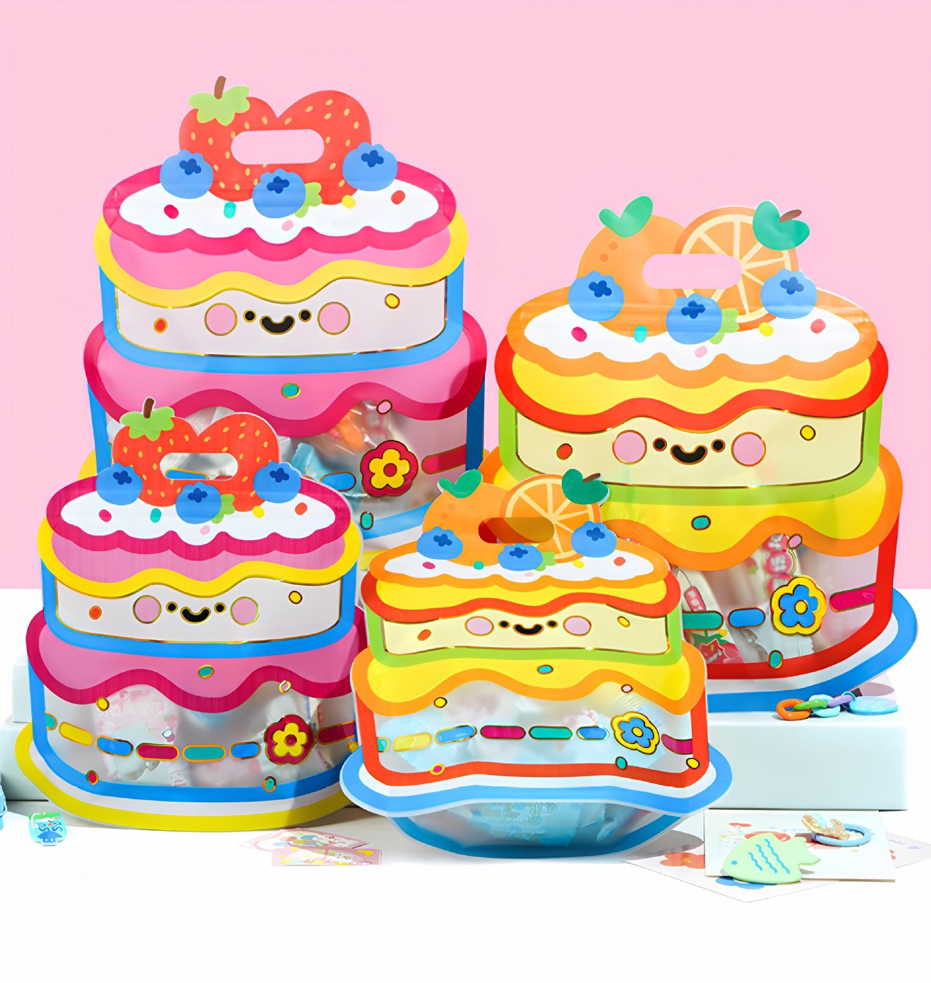 Linda Bolsa de Regalo para Pastel de Cumpleaños de Dibujos Animados Dulces Galletas Merienda Bolsa de Empaque Regalo de Jardín de Niños Bolsa de Mano Autosellable