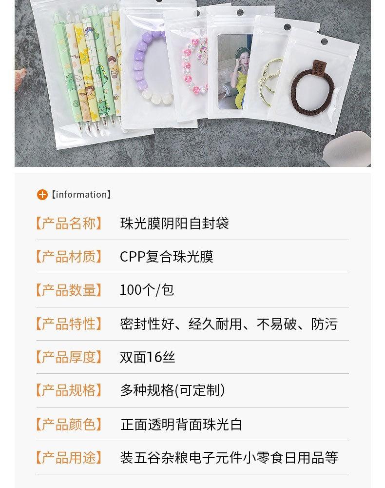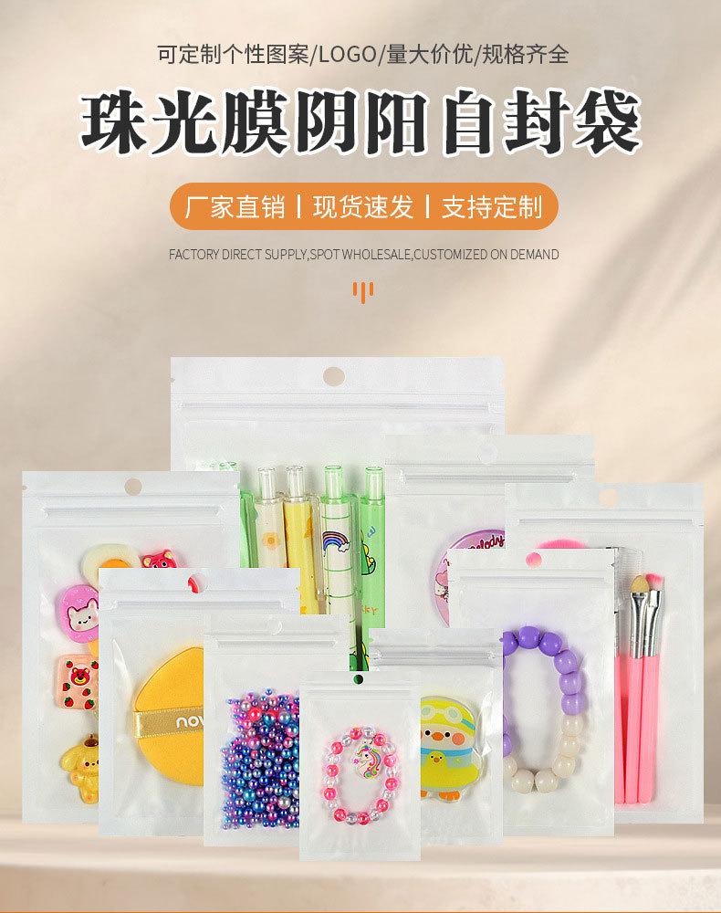 Película Perlada Yin y Yang Bolsa de Huesos Translúcida Funda para Teléfono Móvil Cable de Datos Bolsa de Plástico con Cierre Ziplock Pequeña Bolsa al Por Mayor para Empaque de Joyería