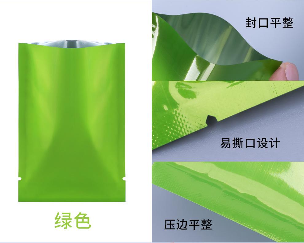 Bolsa de aluminio plana de bolsillo, gruesa, verde, para envasado de alimentos, polvo, cosméticos, sellado térmico, pequeña, oferta al por mayor