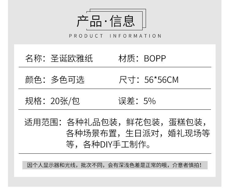 1. green [christmas deer-20 sheets/pack]; 56*56cm, 2. red [christmas deer-20 sheets/pack]; 56*56cm, 3. green [...