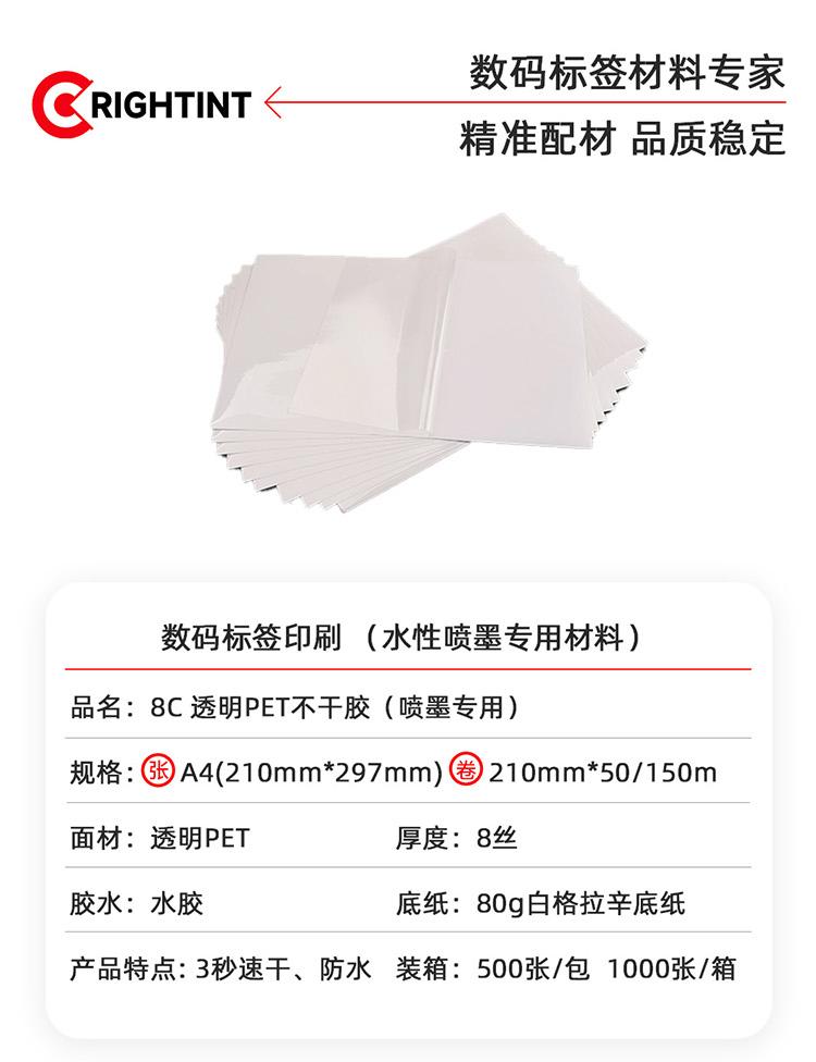 Embalaje Personalizable Transfronterizo Inyección de Tinta Transparente Autoadhesivo Impresión Digital por Inyección de Tinta A4 Material de Etiqueta de PET Transparente