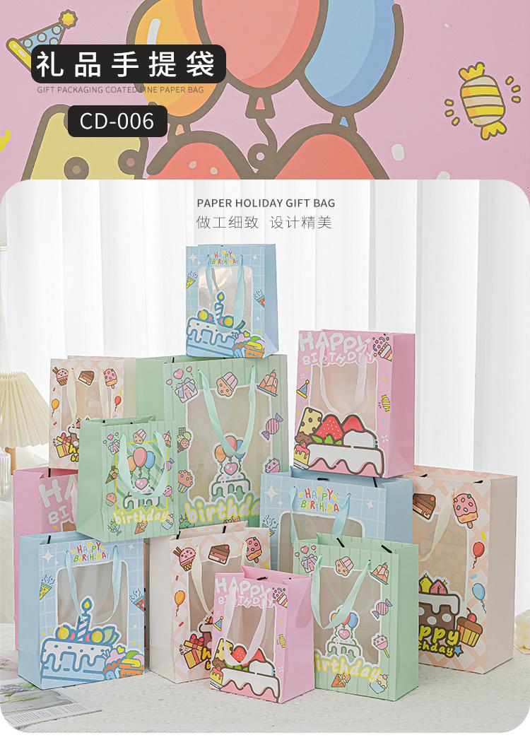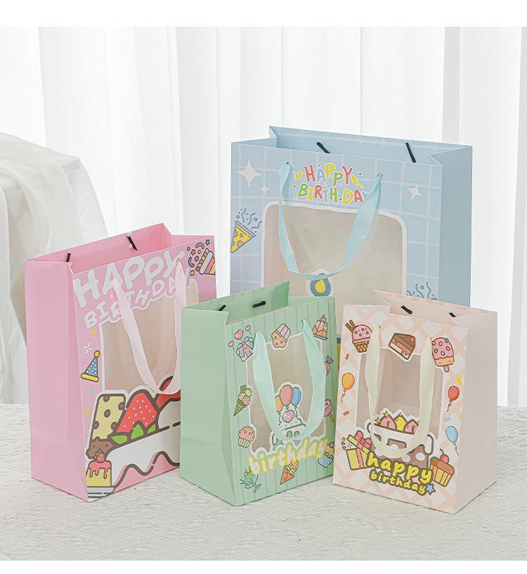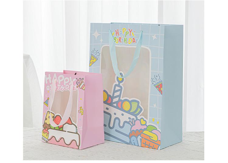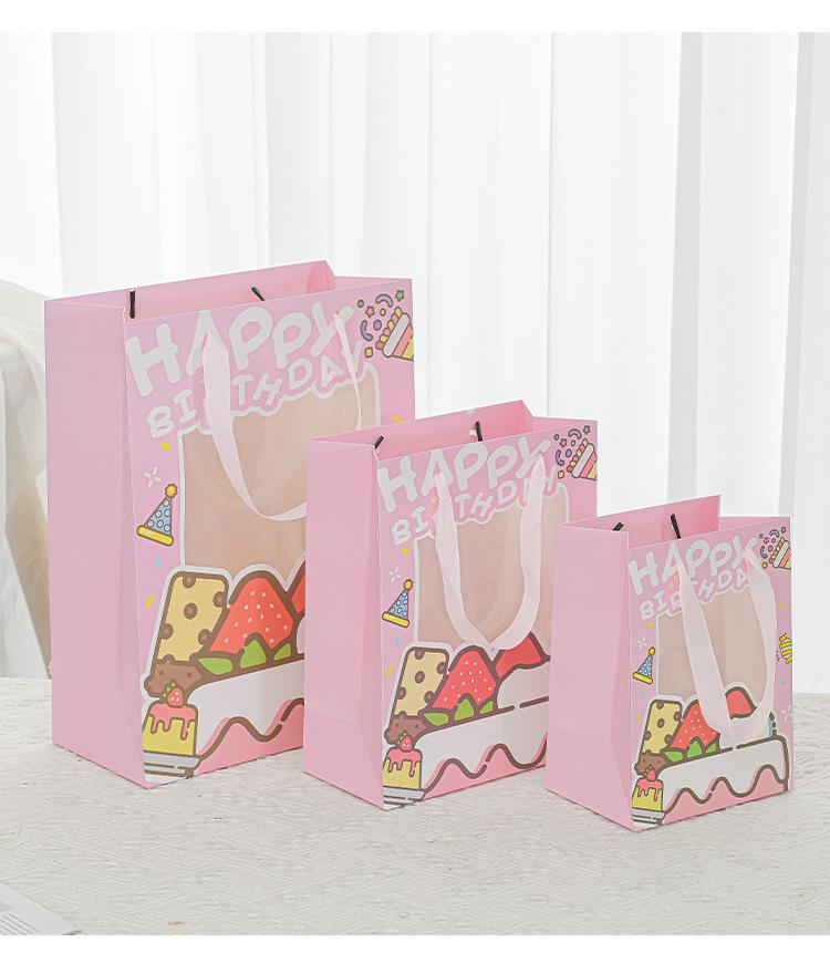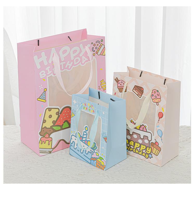 Nueva Bolsa de Regalo de Cumpleaños con Ventana Bolsa de Papel Portátil Regalo de Vacaciones Bolsa de Regalo Gruesa para Pastel de Cumpleaños Regalo de Acompañamiento