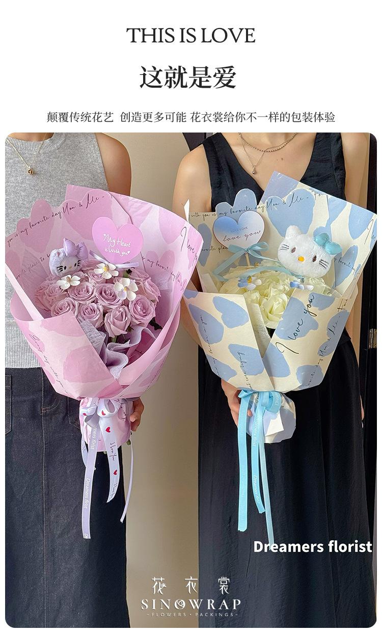 Ropa de Flores Día de San Valentín Chino Papel de Envoltura de Flores Nuevo Papel Kapok con Estampado de Corazón Materiales de Embalaje Floral en Stock