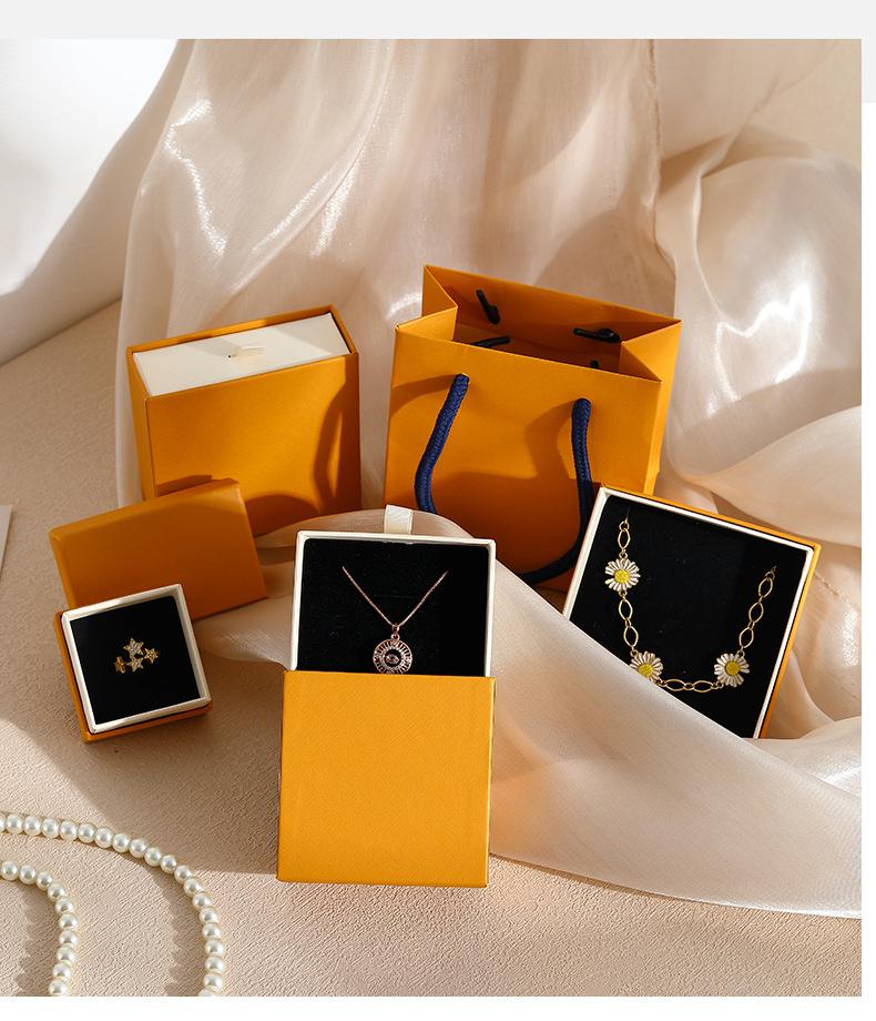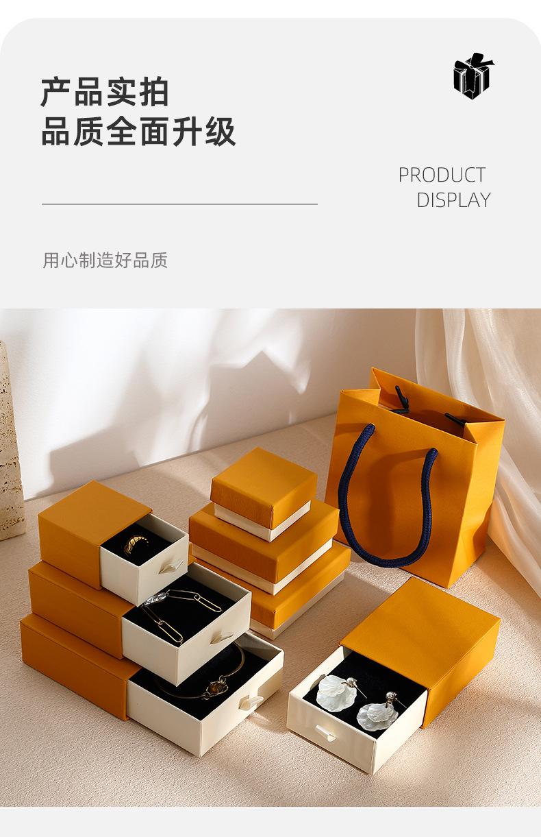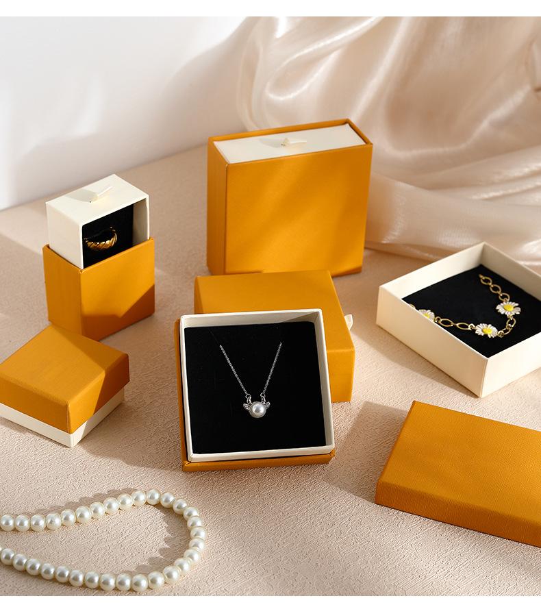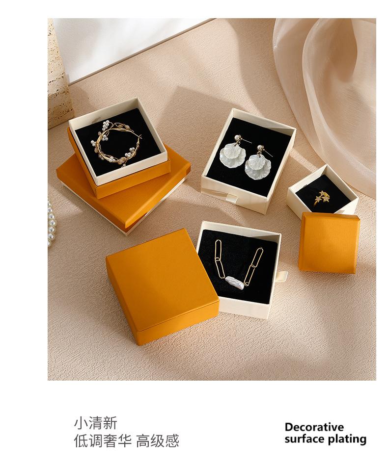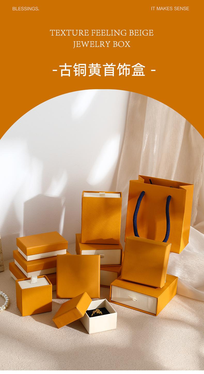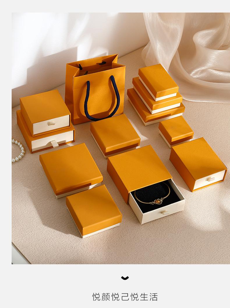 Caja de Almacenamiento de Joyería Vacía Amarilla Bronce con Tapa, Caja Neutra para Anillos y Aretes, Caja con Cajón, Caja de Embalaje para Joyería