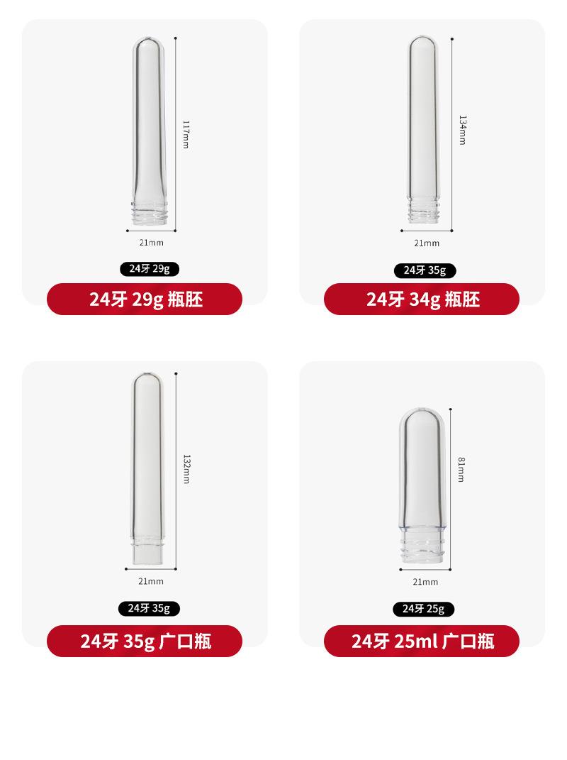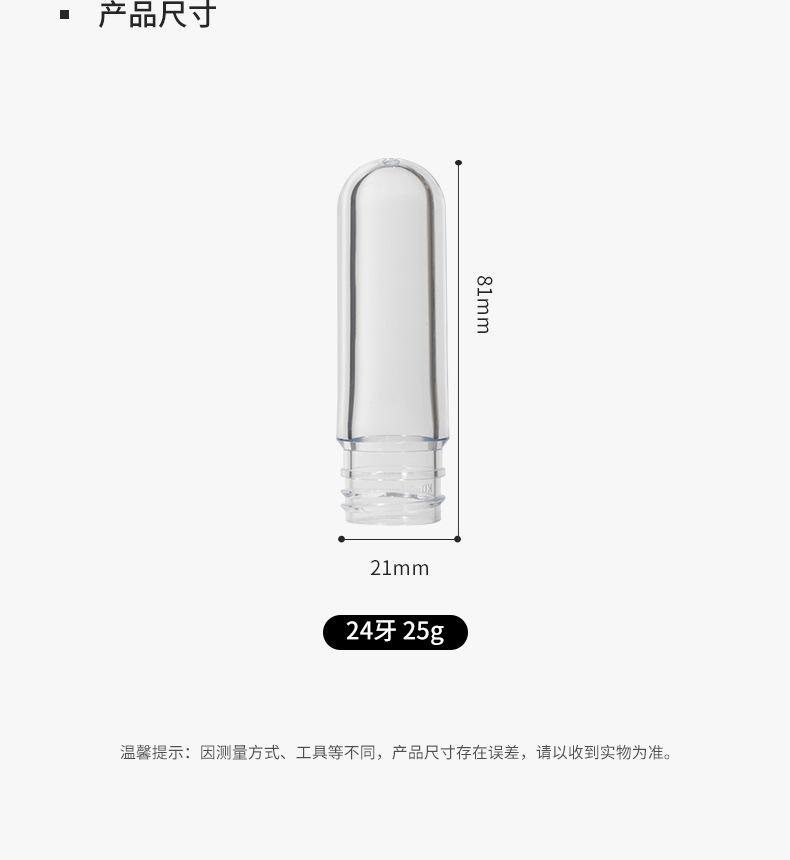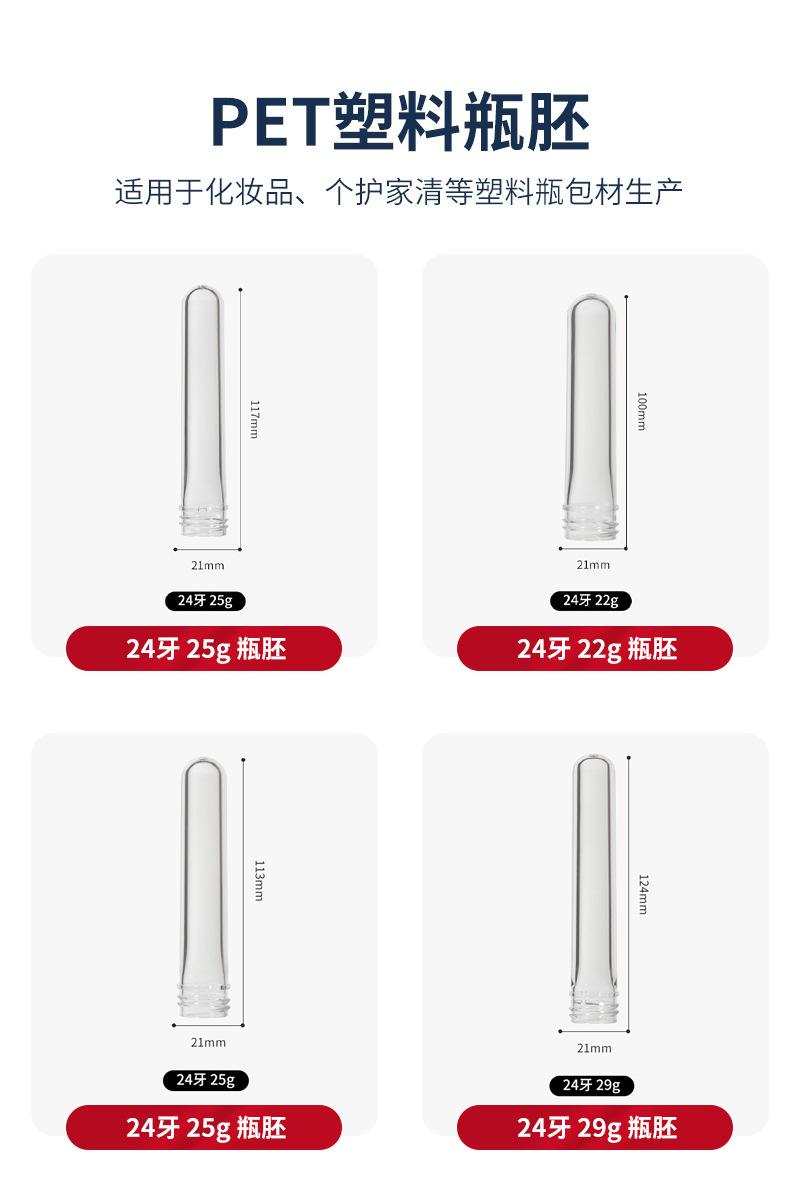 Tubo transparente de 24 bocas en blanco para mascotas, botella para clase de lavado y cuidado, tubo en blanco para moldeo por inyección, botella para crema cosmética, botella para gel de ducha, botella para desinfectante de manos